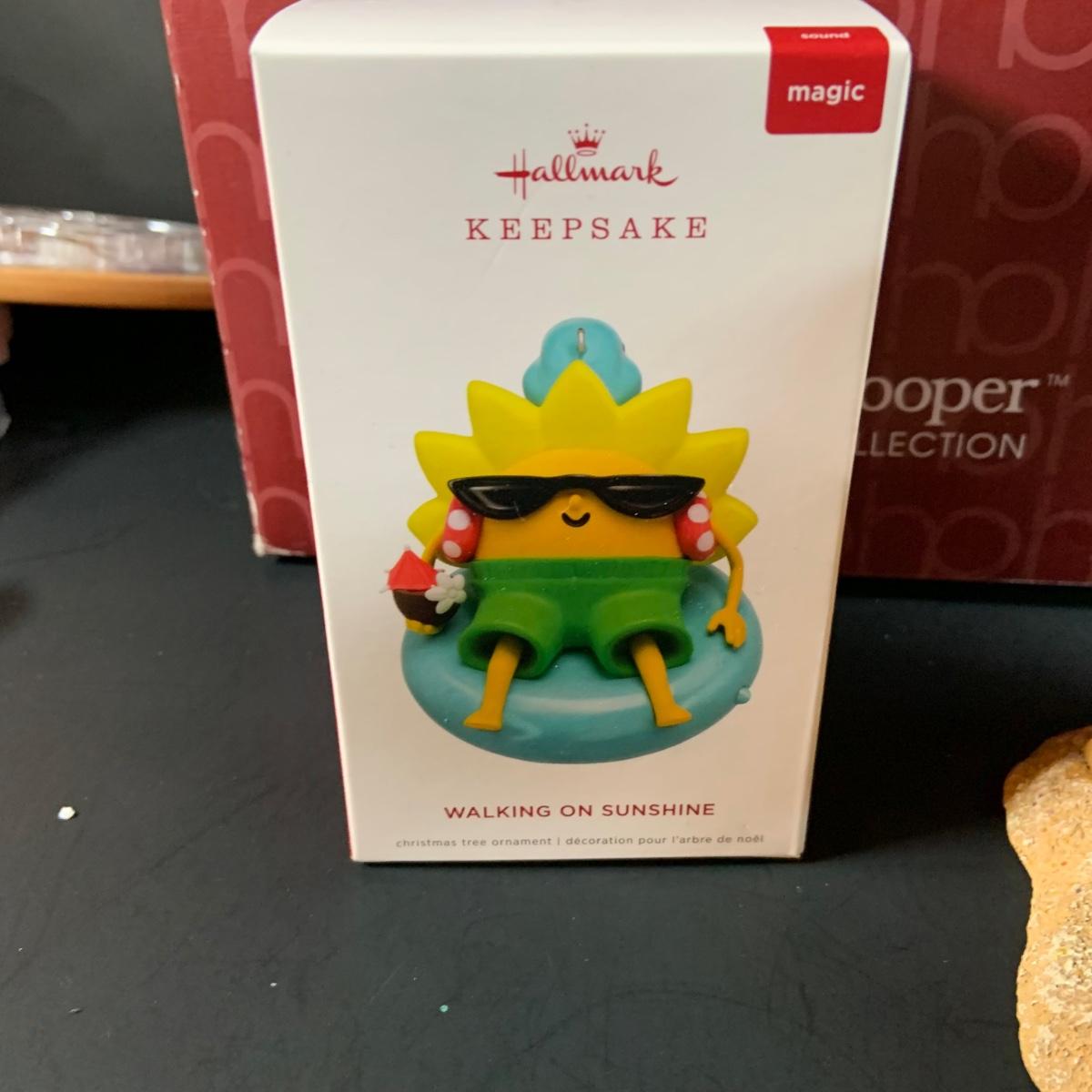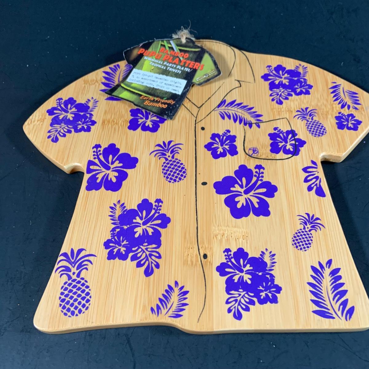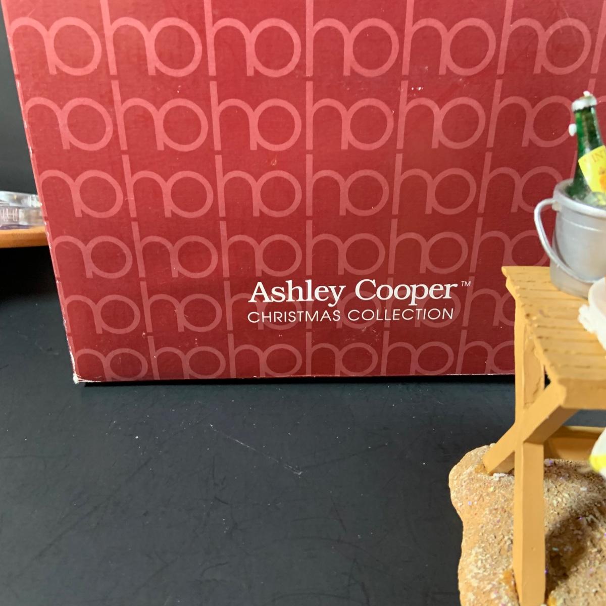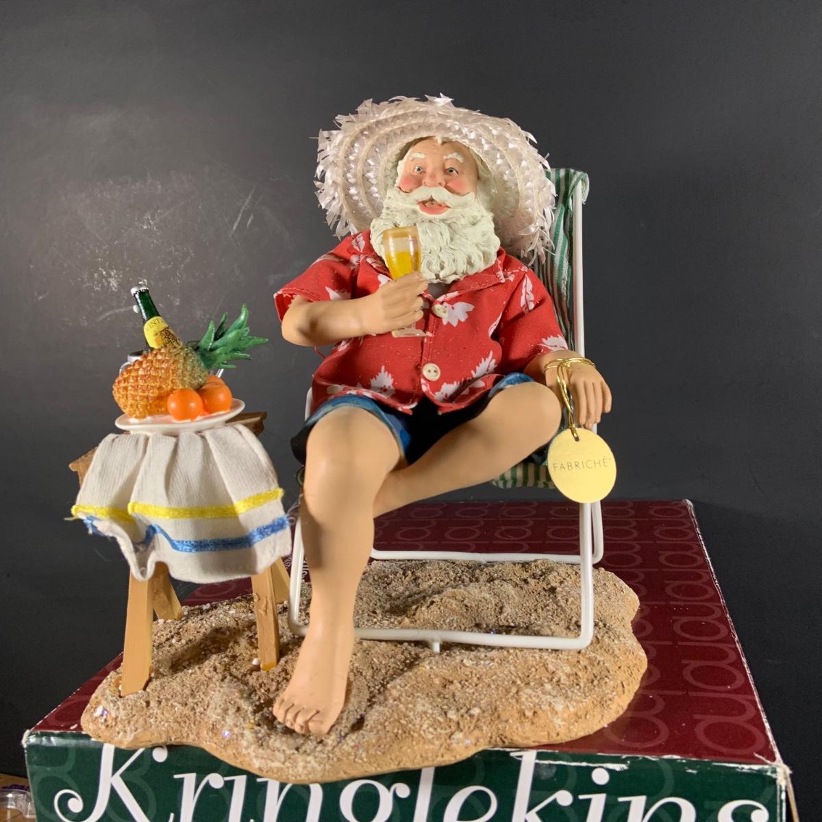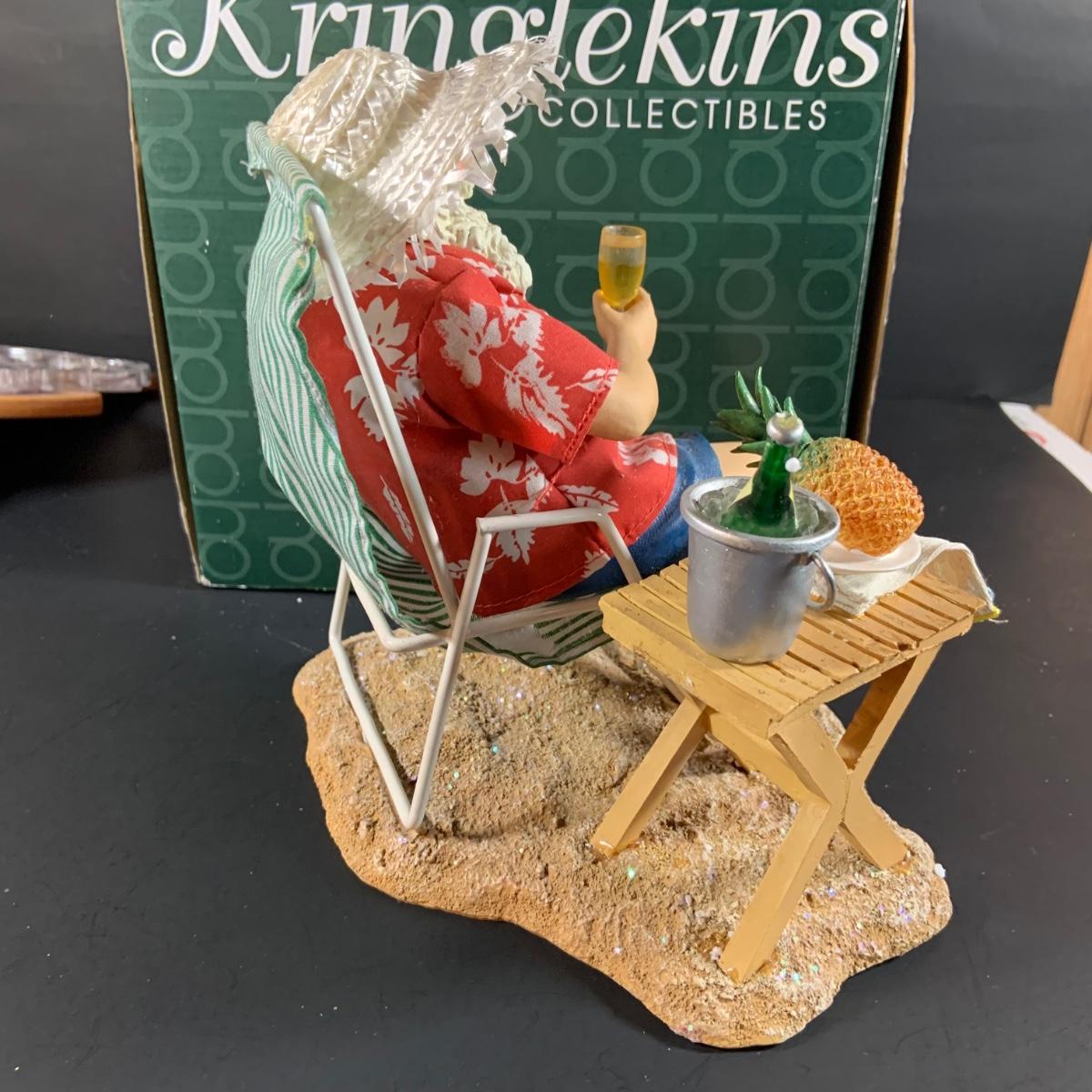 LOT:50: Santa on Vacation Statue by Ashley Cooper, Hallmark Ornament Bamboo Cutting Board and More
