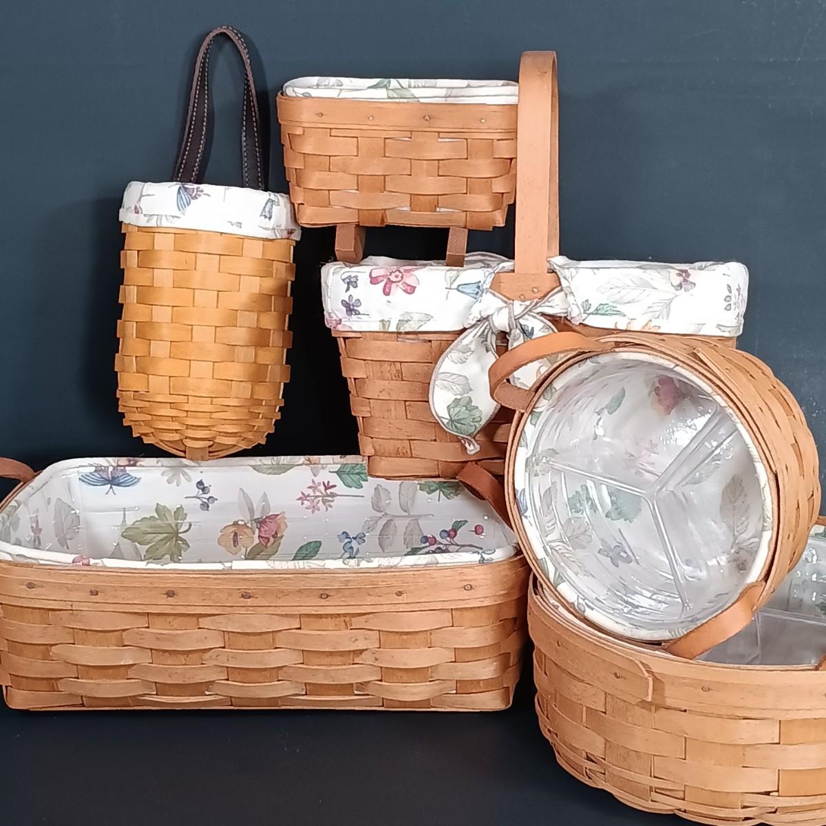 LOT 74: Longaberger Set of 6 - Cradle Basket, Gatehouse Basket, Bread Basket & More