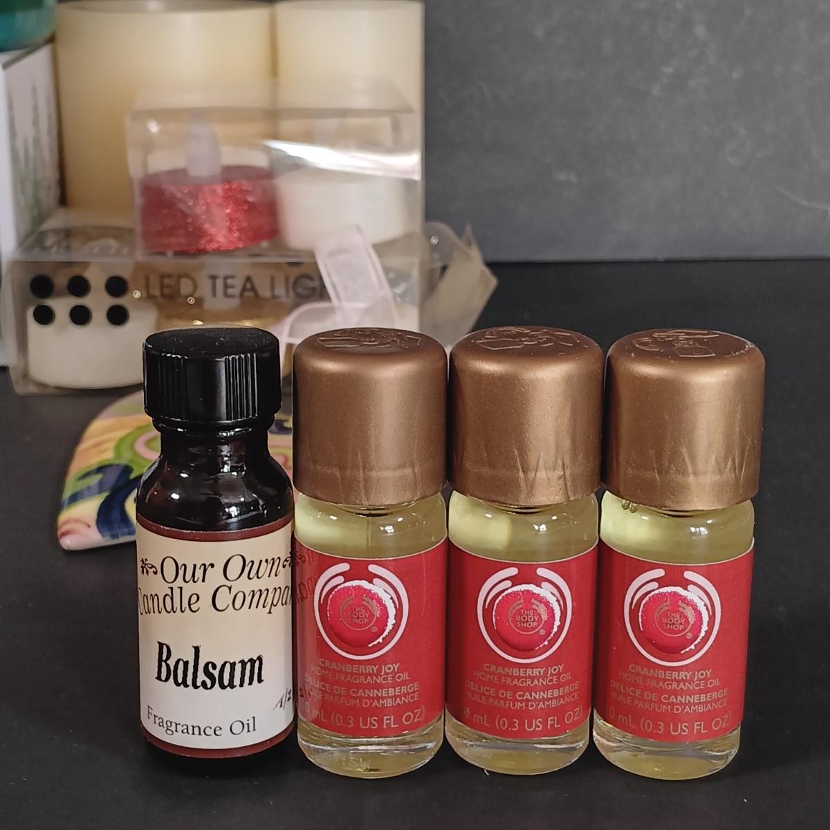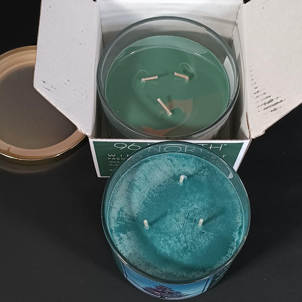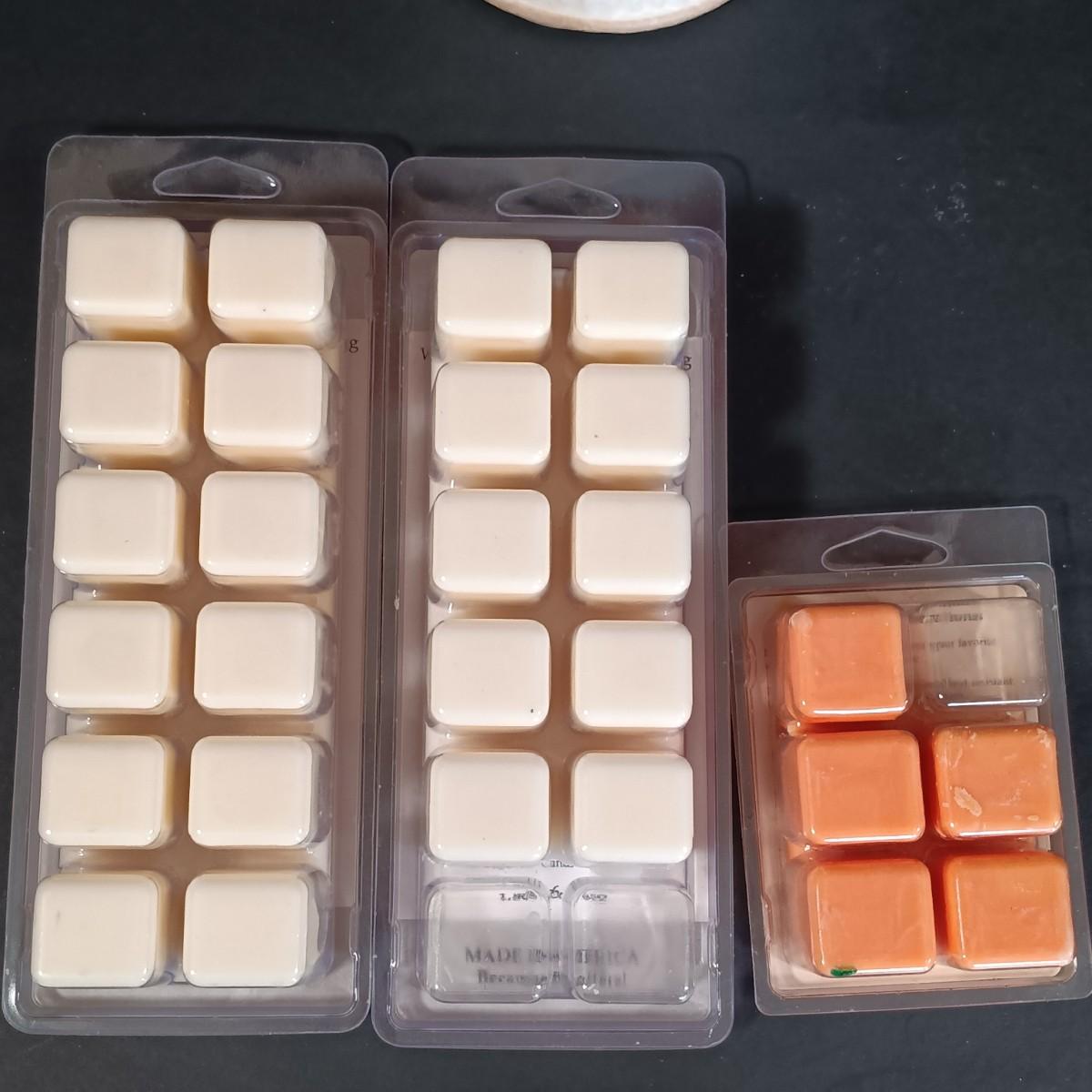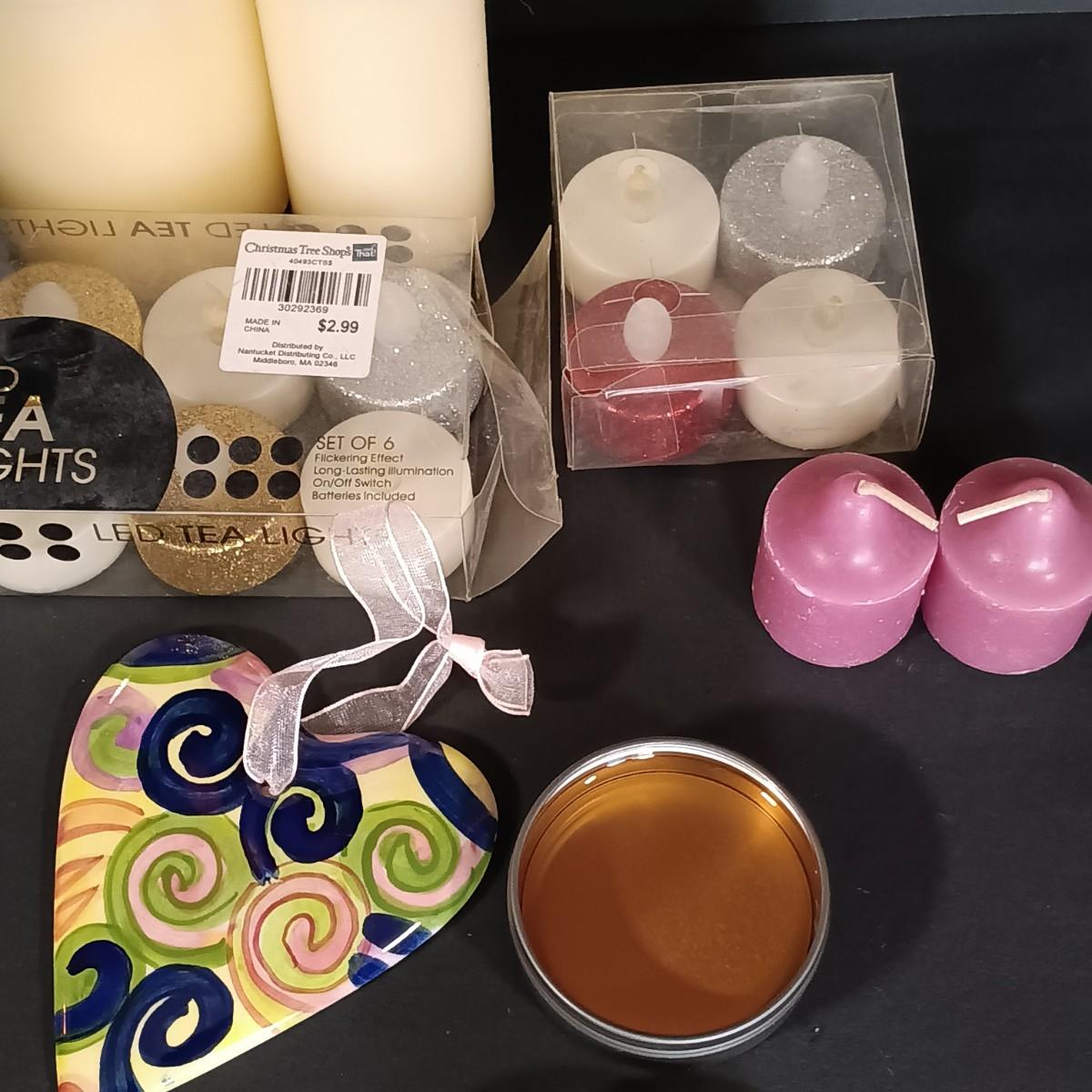 One of the Yankee candles is used, and some of the wax melts are missing.