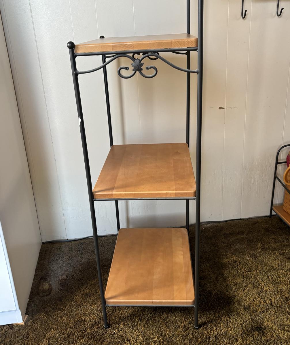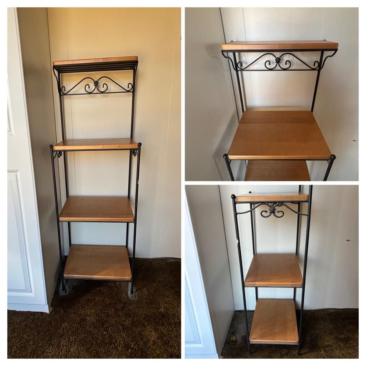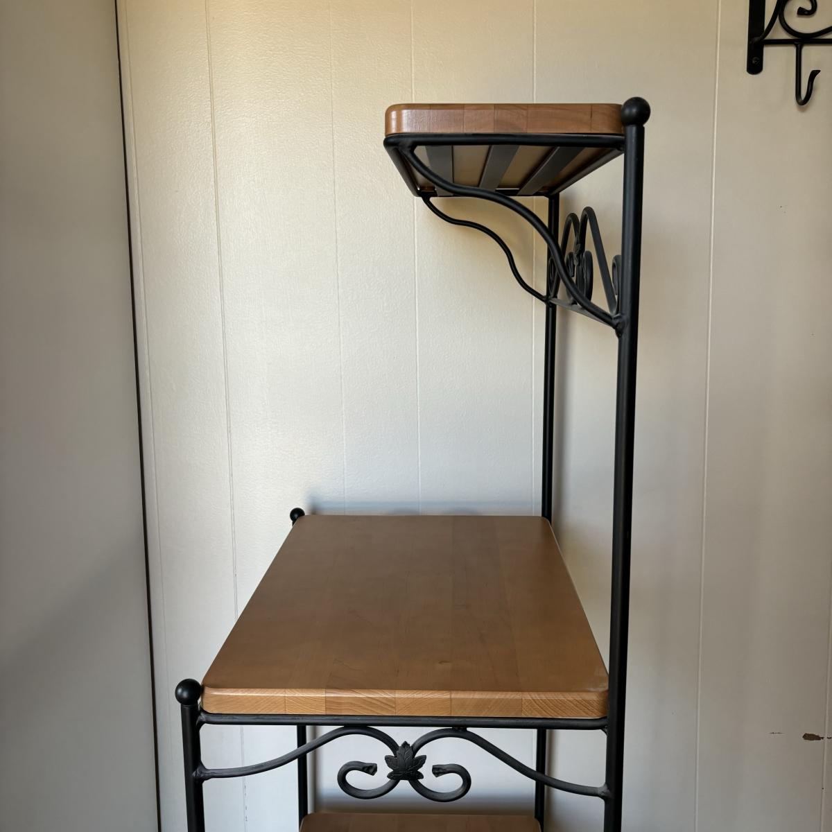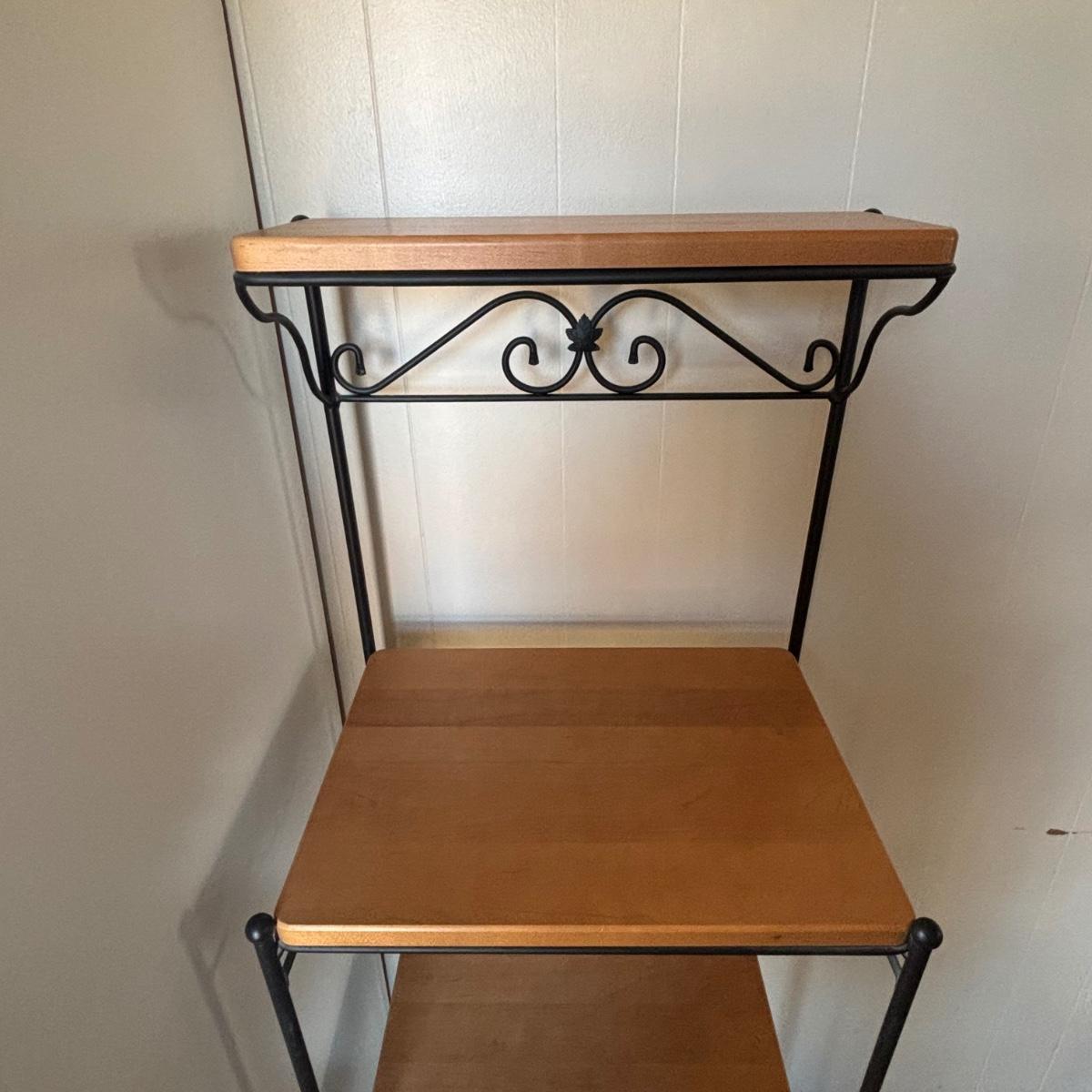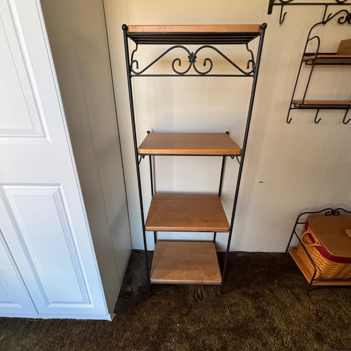 LOT 84: Longaberger Wrought Iron Bakers Rack w/Wooden Shelves