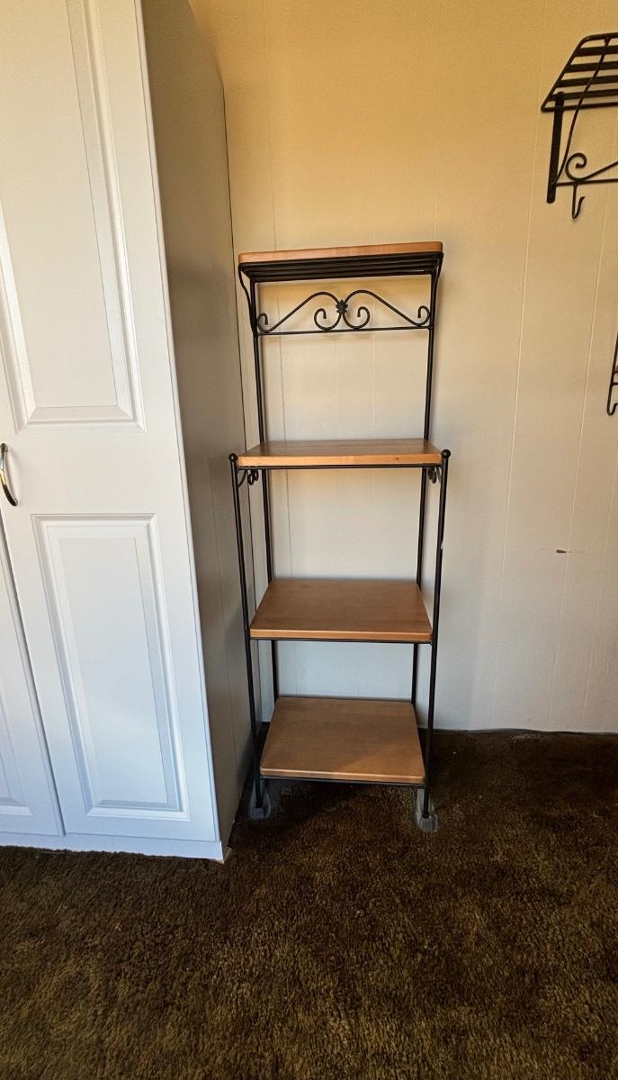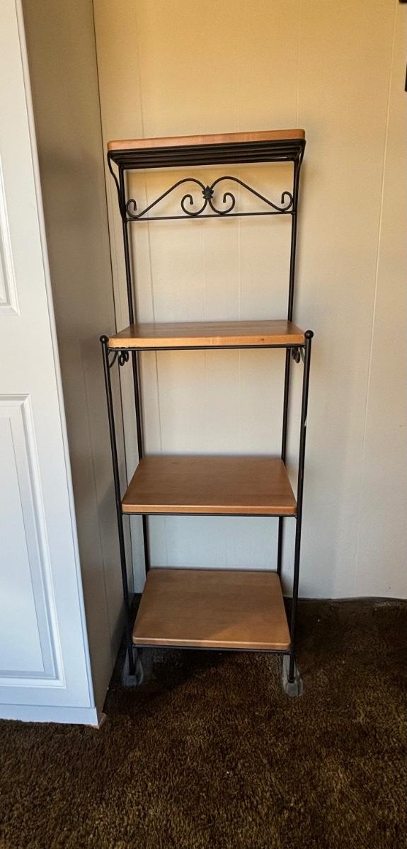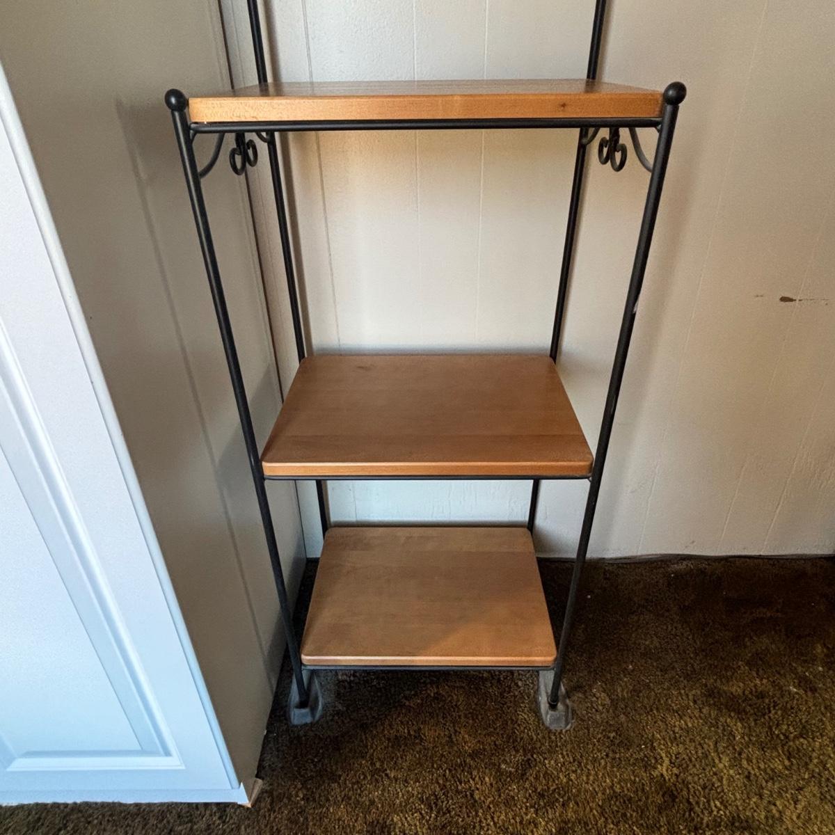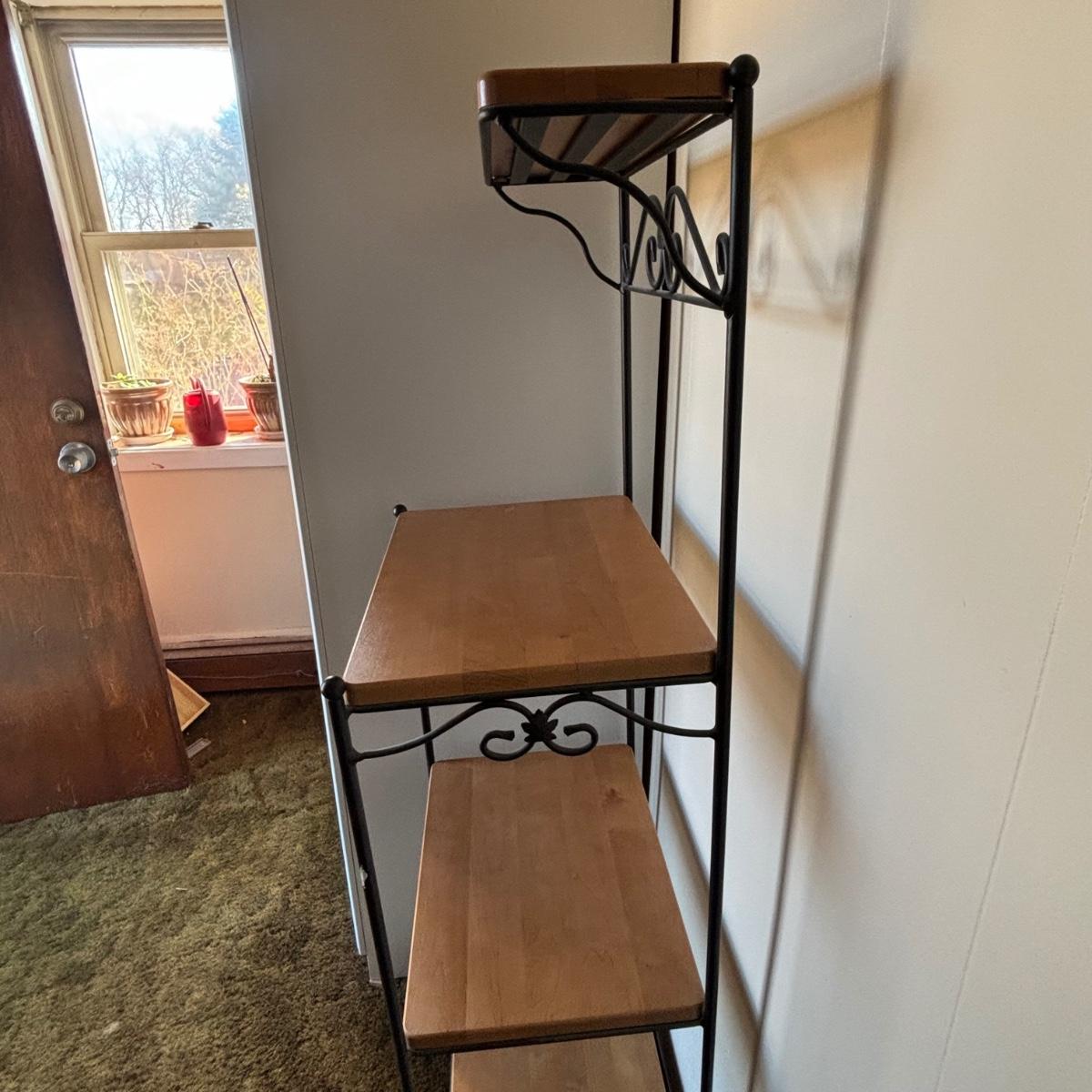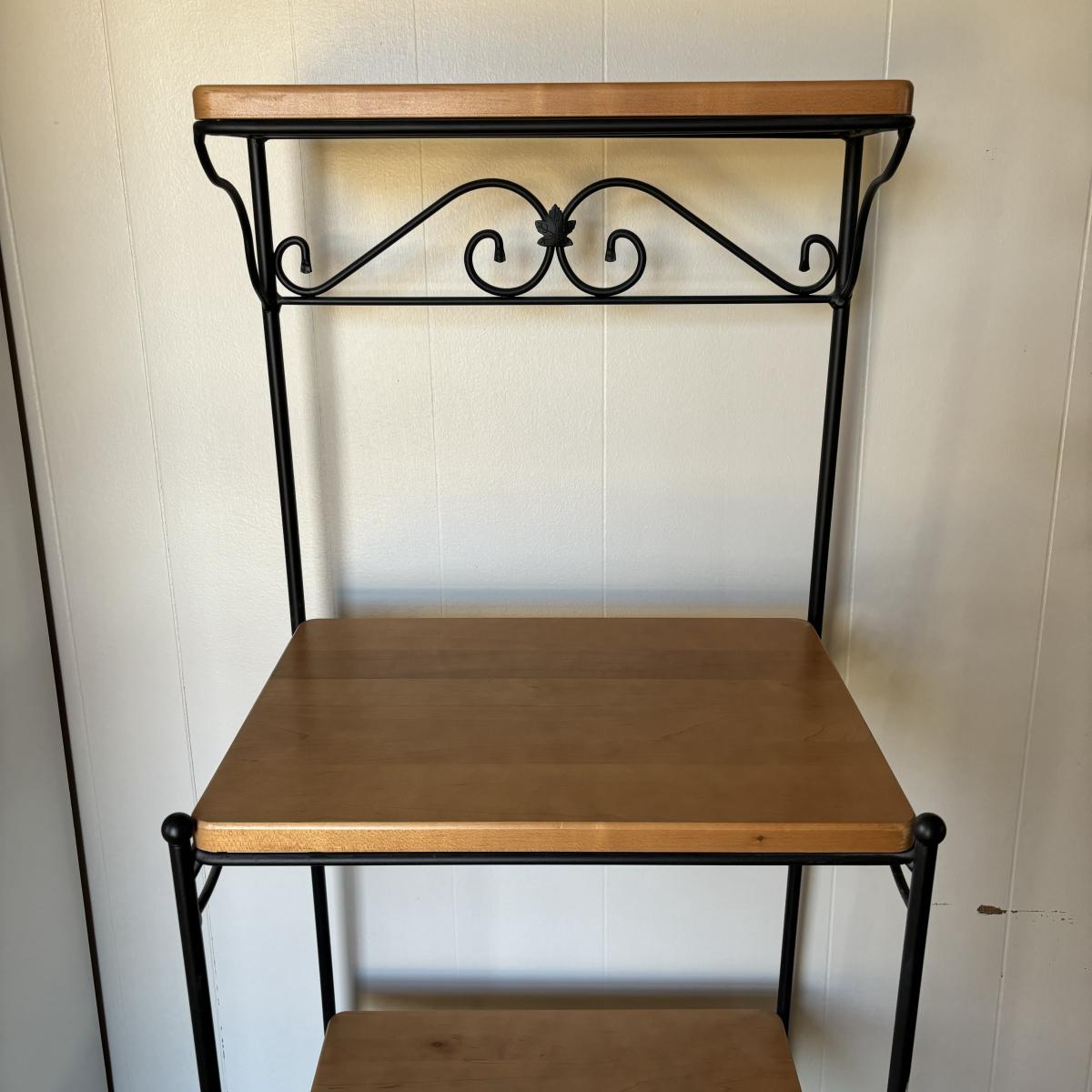 LOT 84: Longaberger Wrought Iron Bakers Rack w/Wooden Shelves