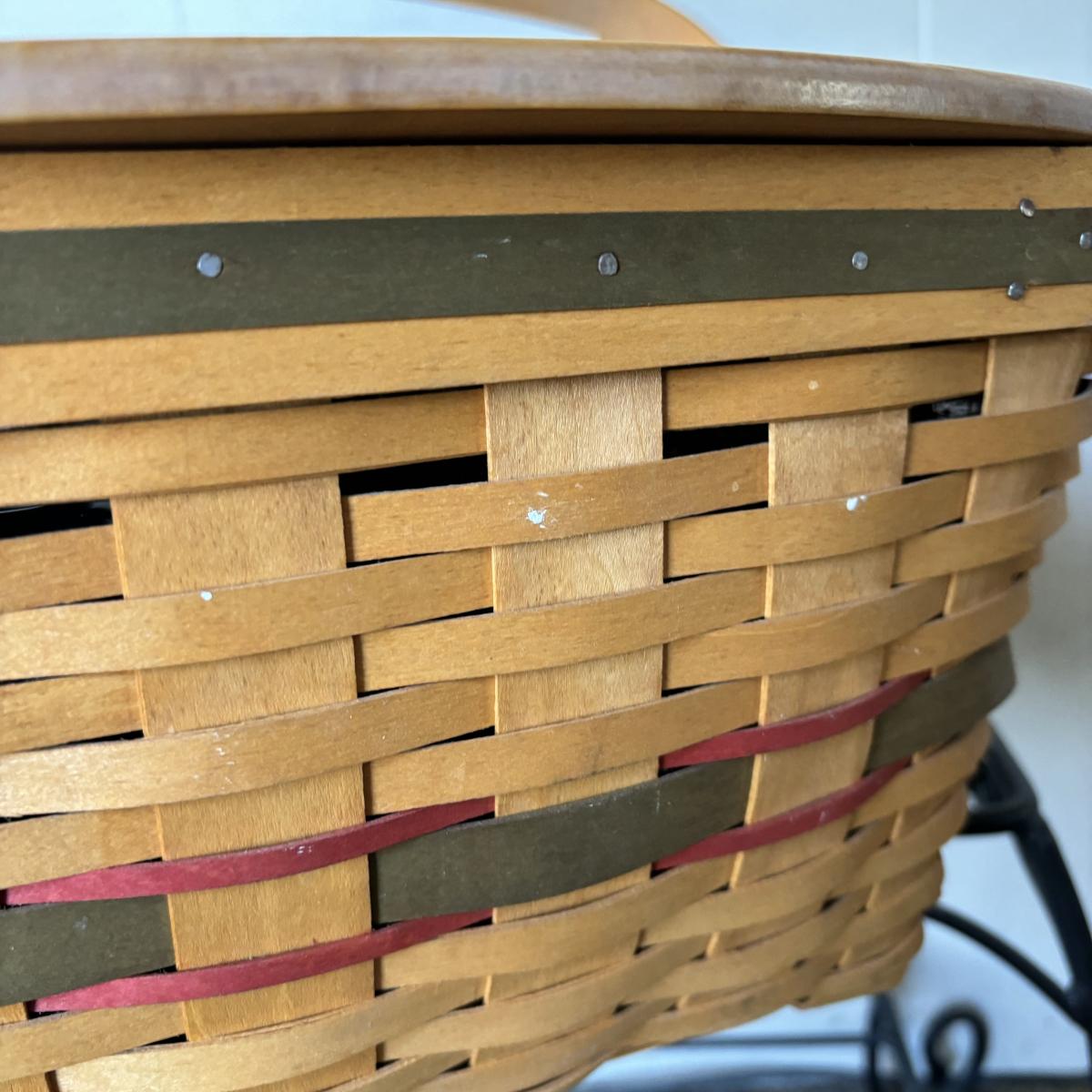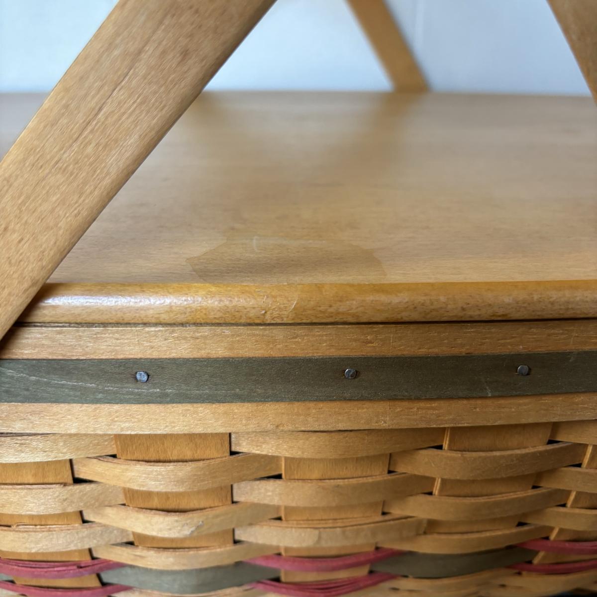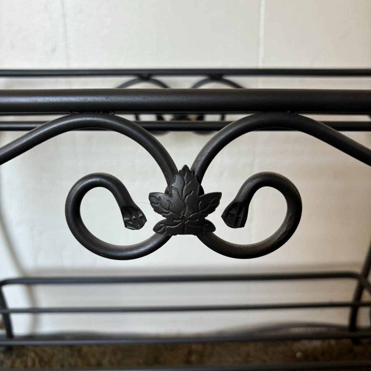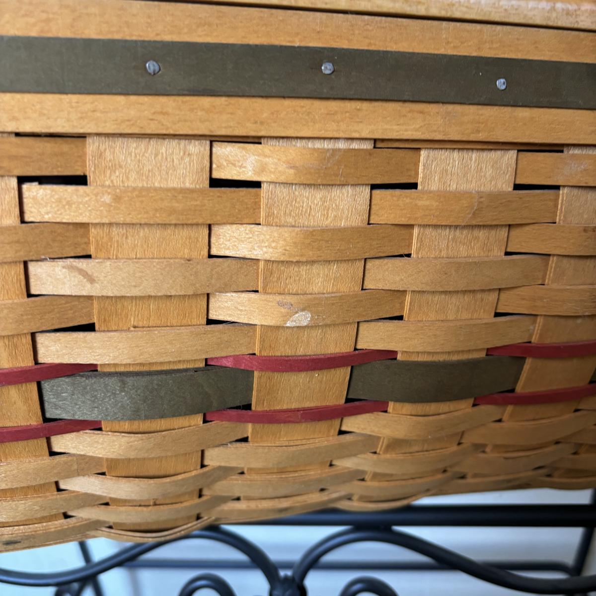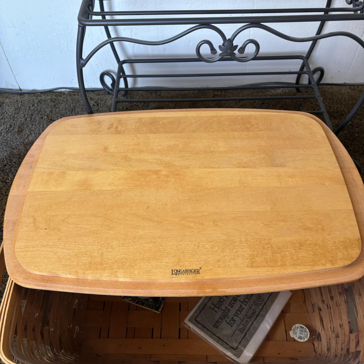 LOT 86: Wrought Iron Side Table Basket Holder & Basket w/Wooden Lid & Protector