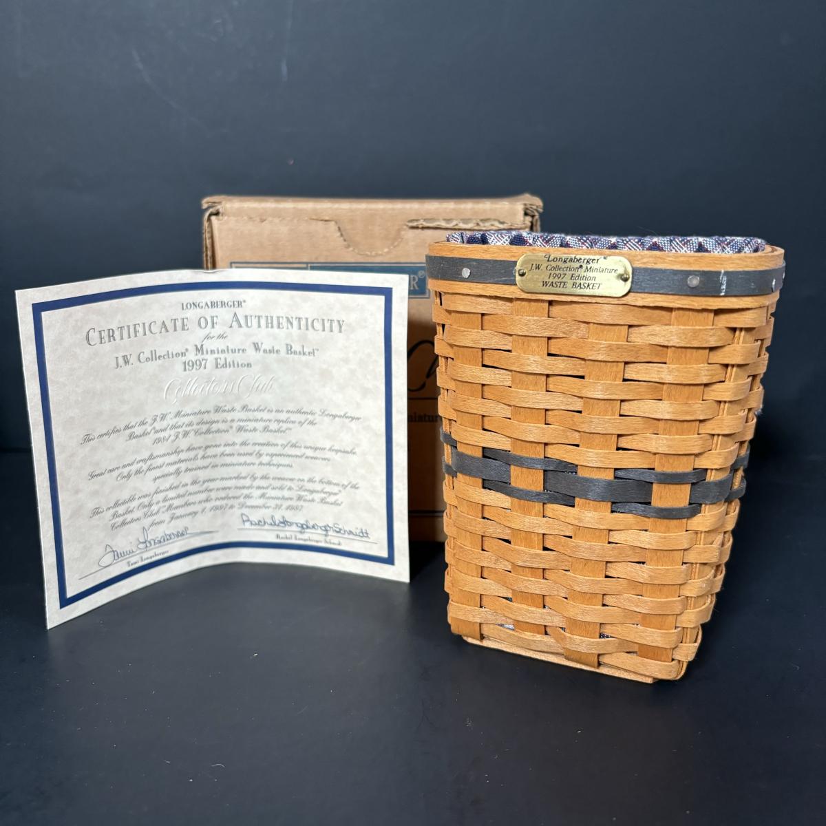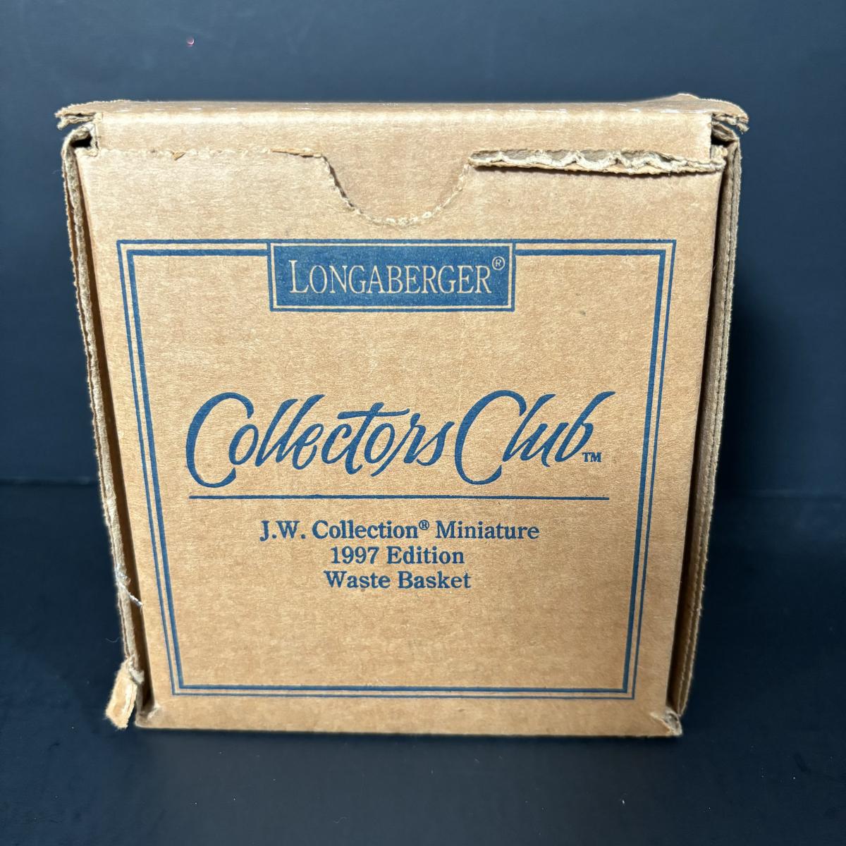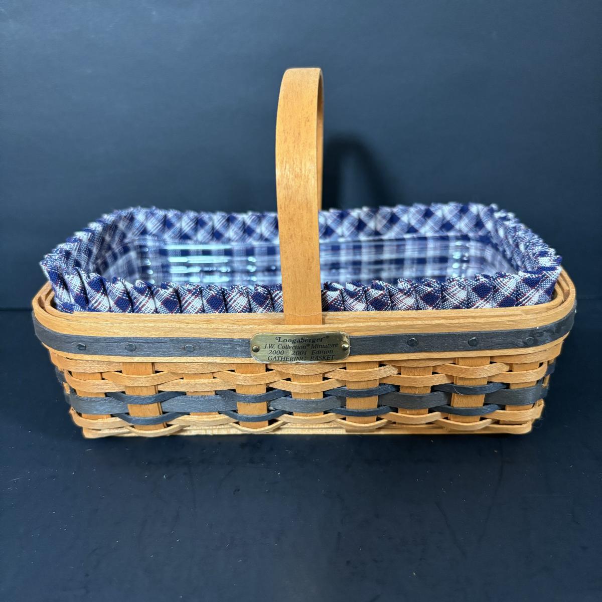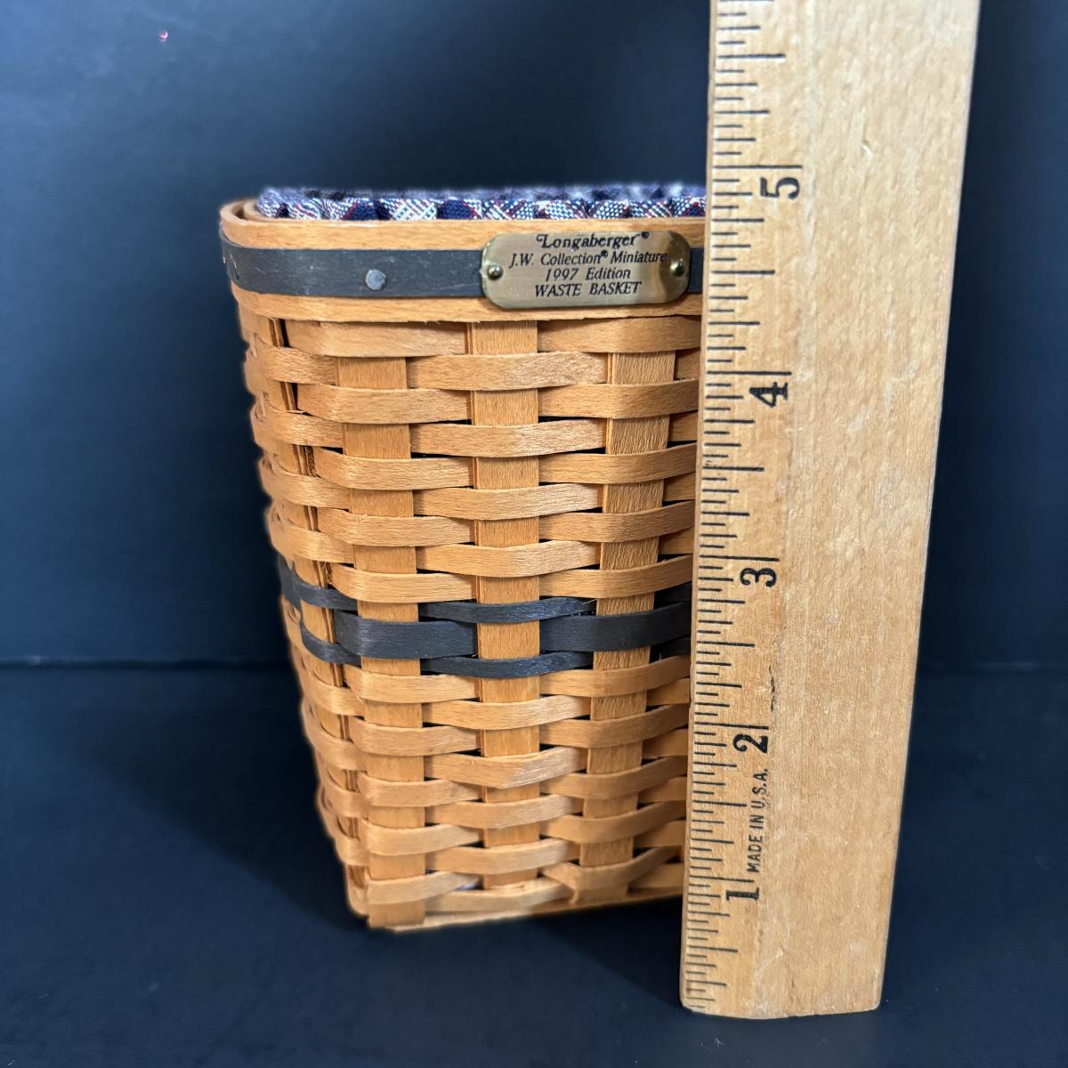 LOT 98: Longaberger Collectors Club Miniatures: Berry Basket, Gathering Basket, Original Easter Basket, Waste Basket