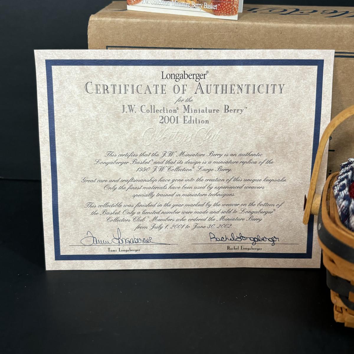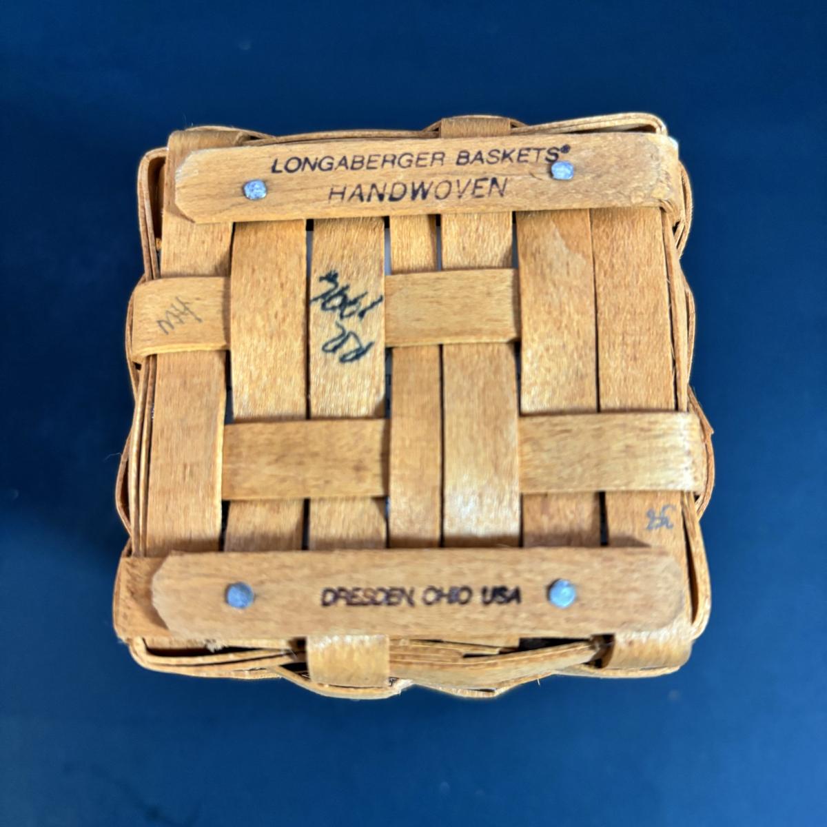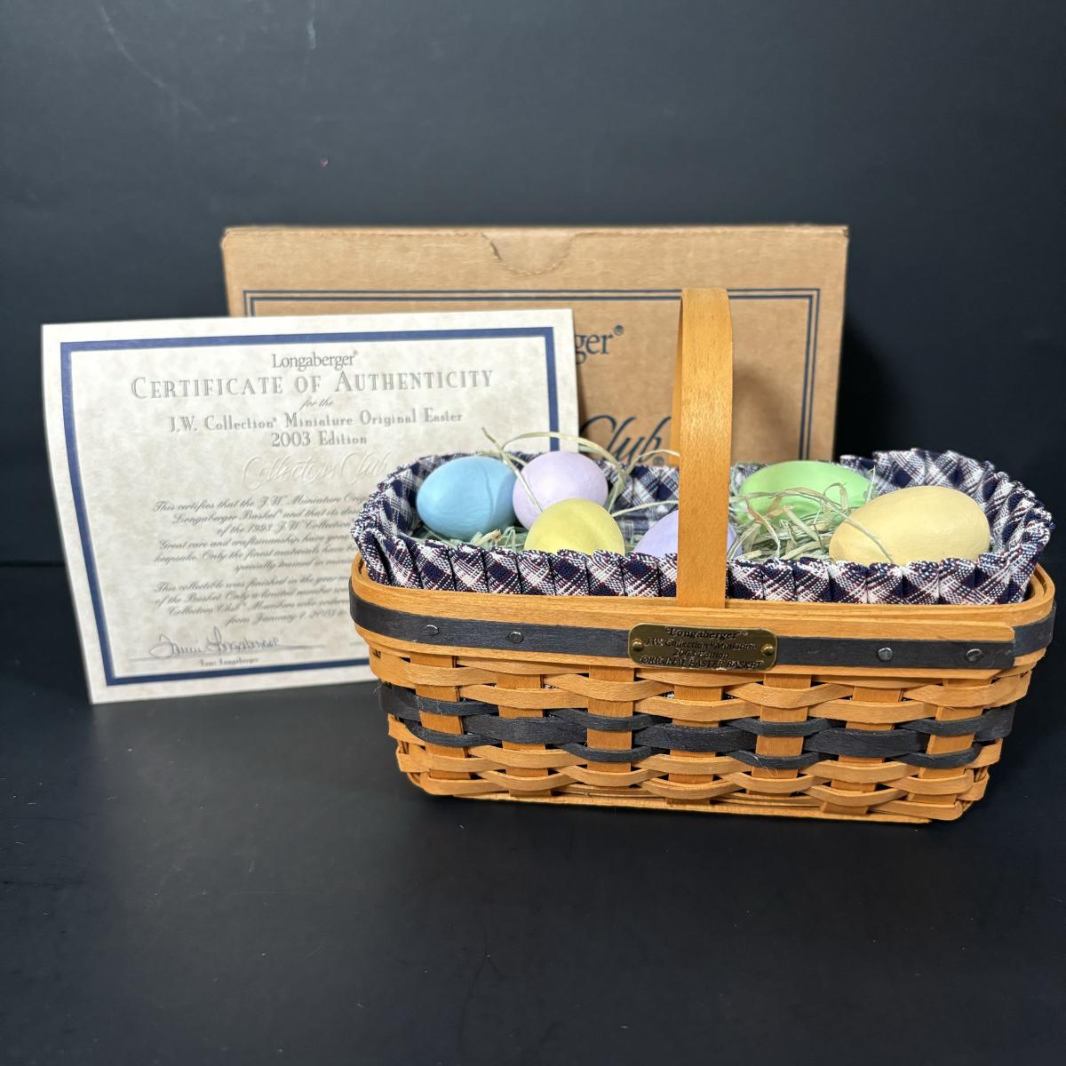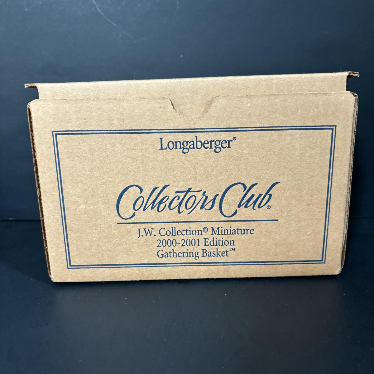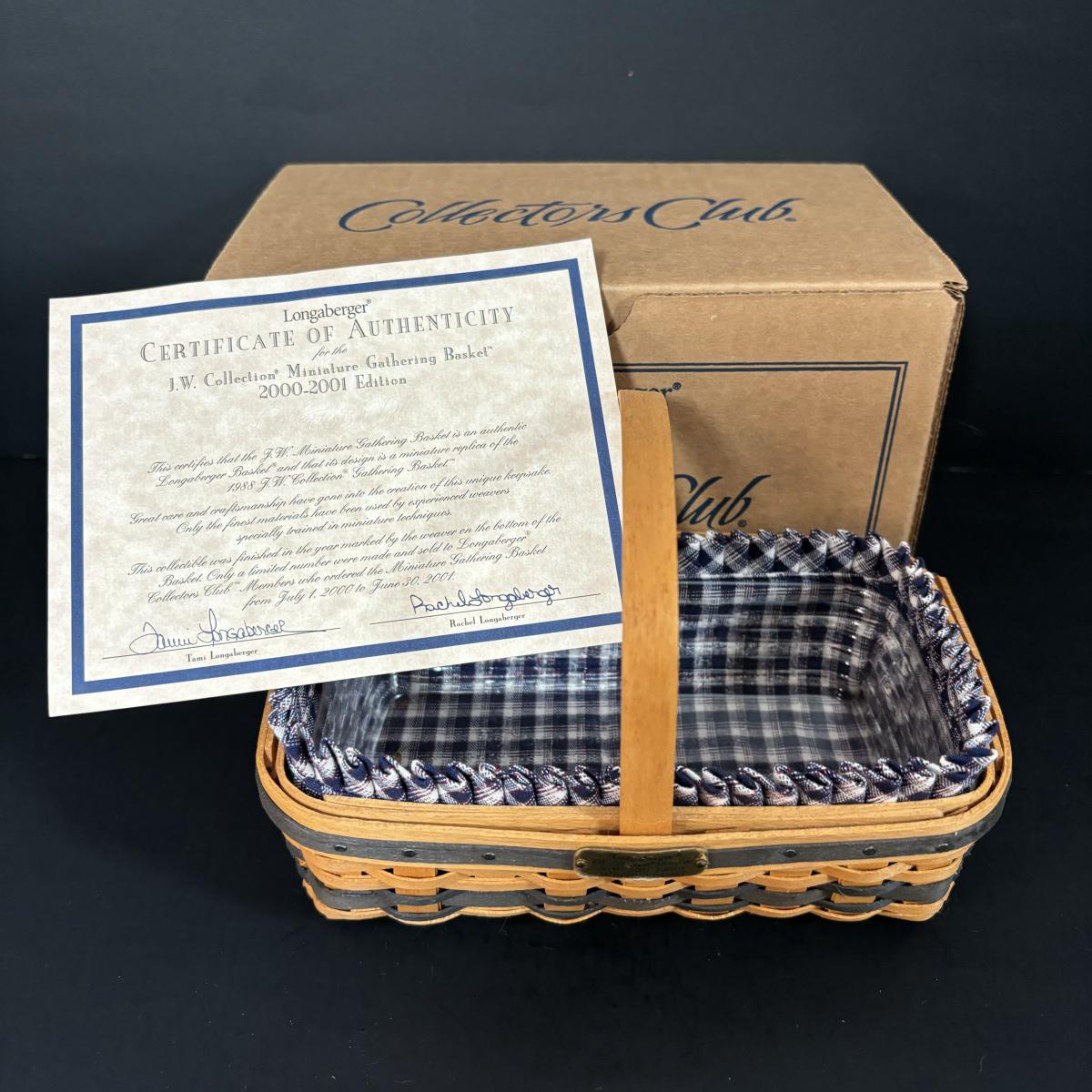 LOT 98: Longaberger Collectors Club Miniatures: Berry Basket, Gathering Basket, Original Easter Basket, Waste Basket