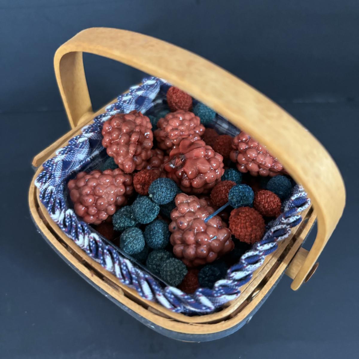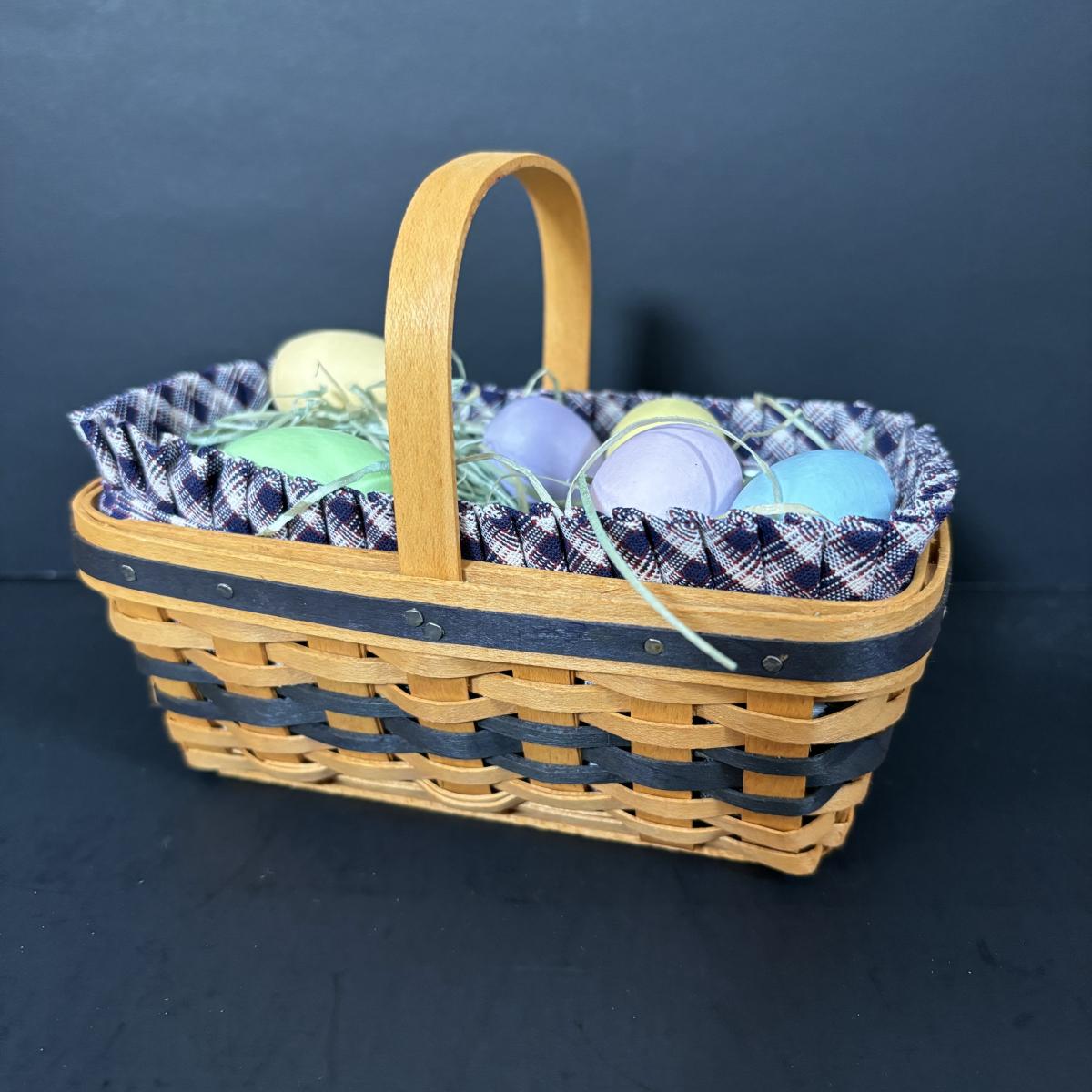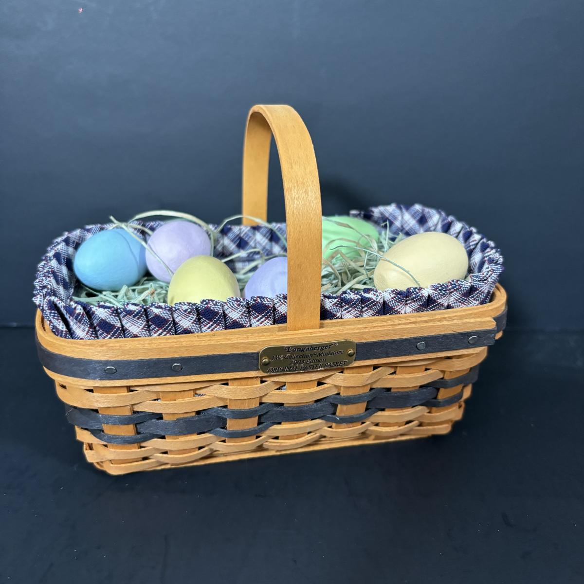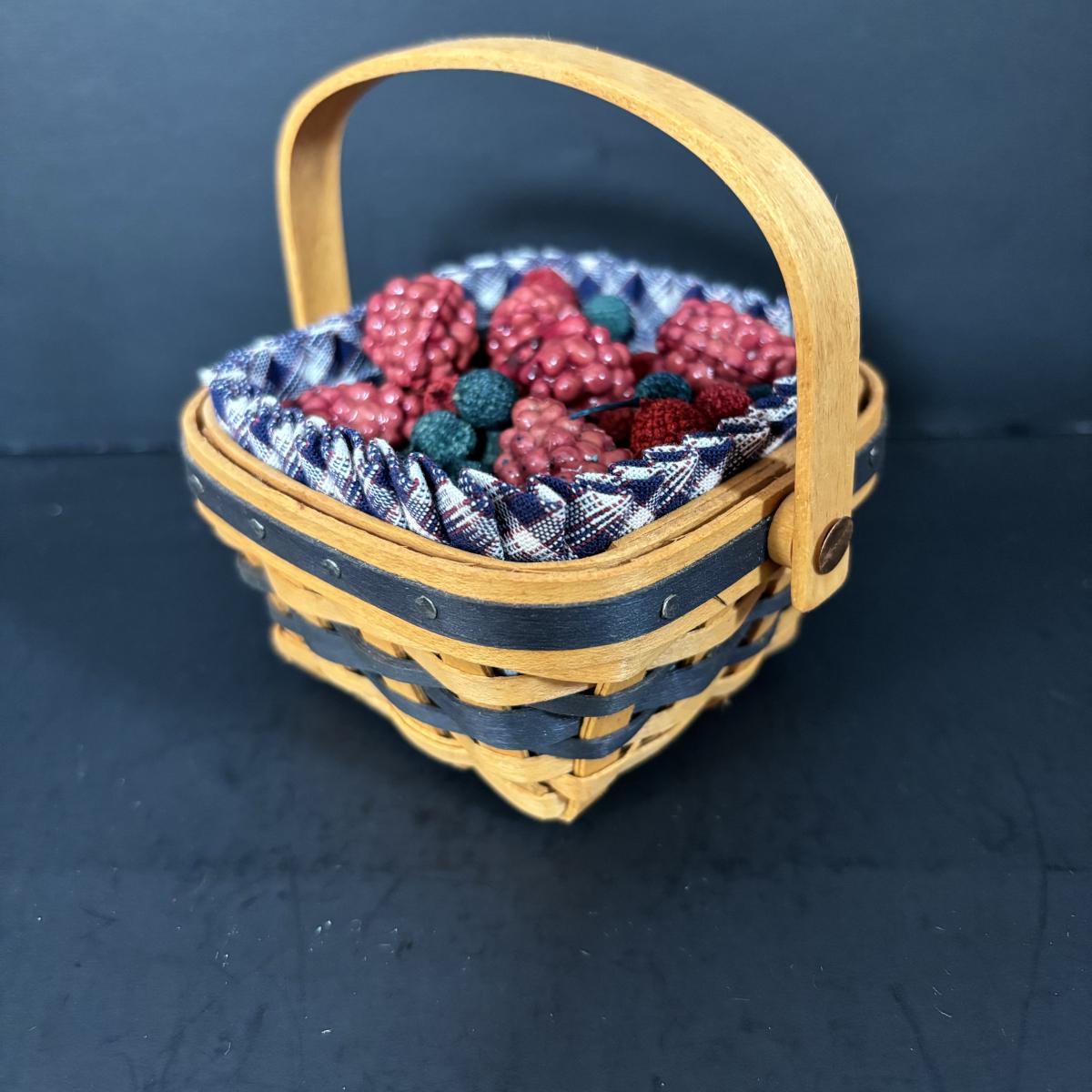 LOT 98: Longaberger Collectors Club Miniatures: Berry Basket, Gathering Basket, Original Easter Basket, Waste Basket