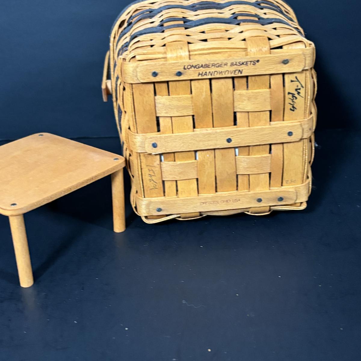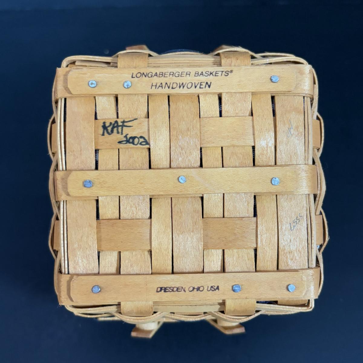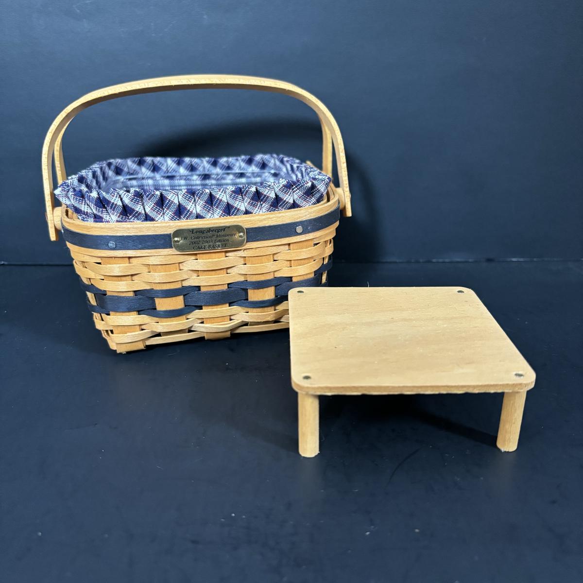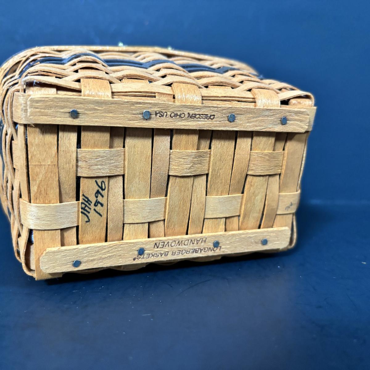 LOT 99: Longaberger Collectors Club Miniatures: Market Basket, Two-Pie Basket, Banker's Waste Basket, Cake Basket