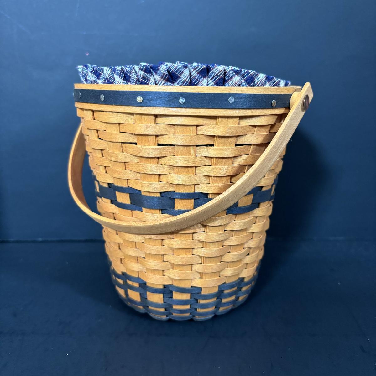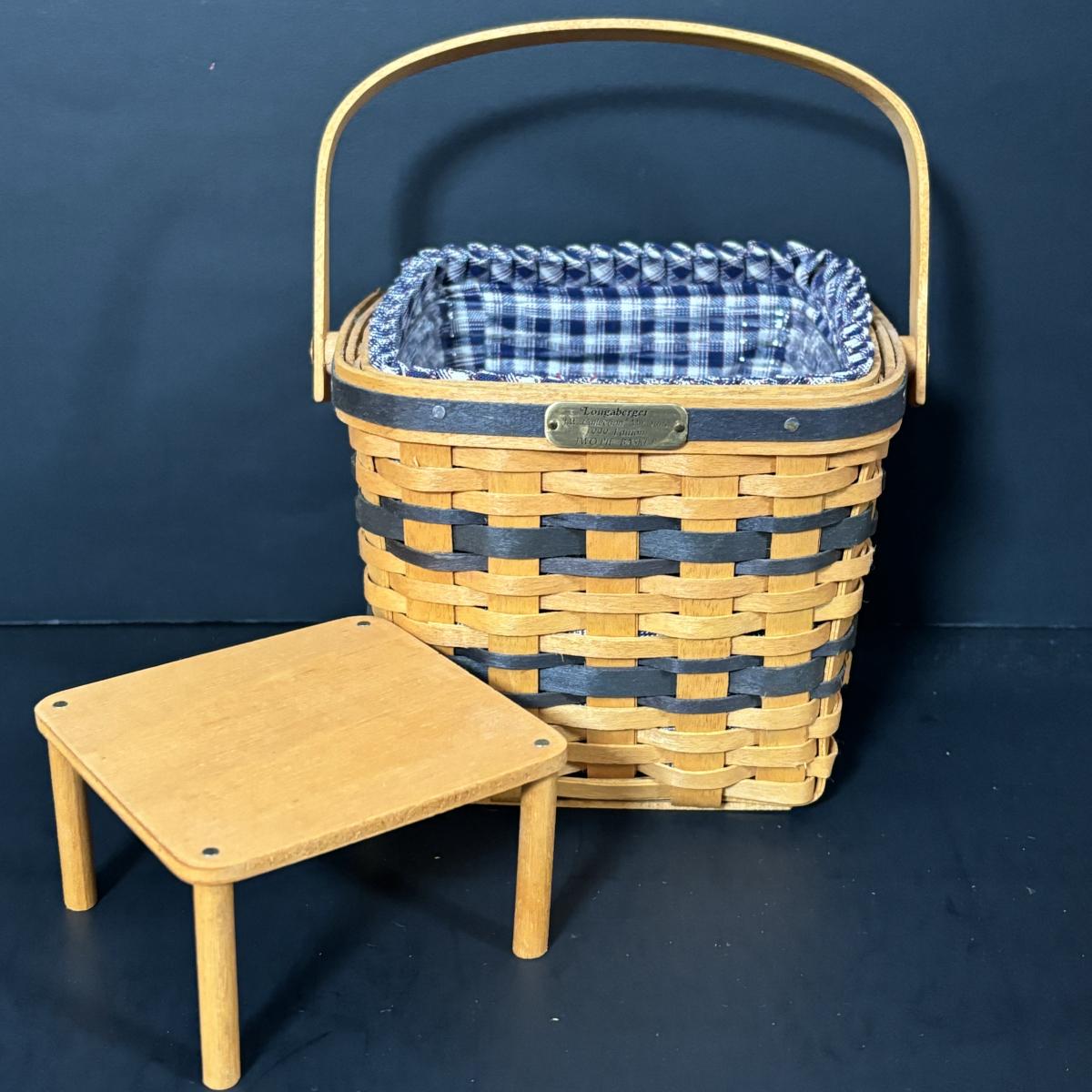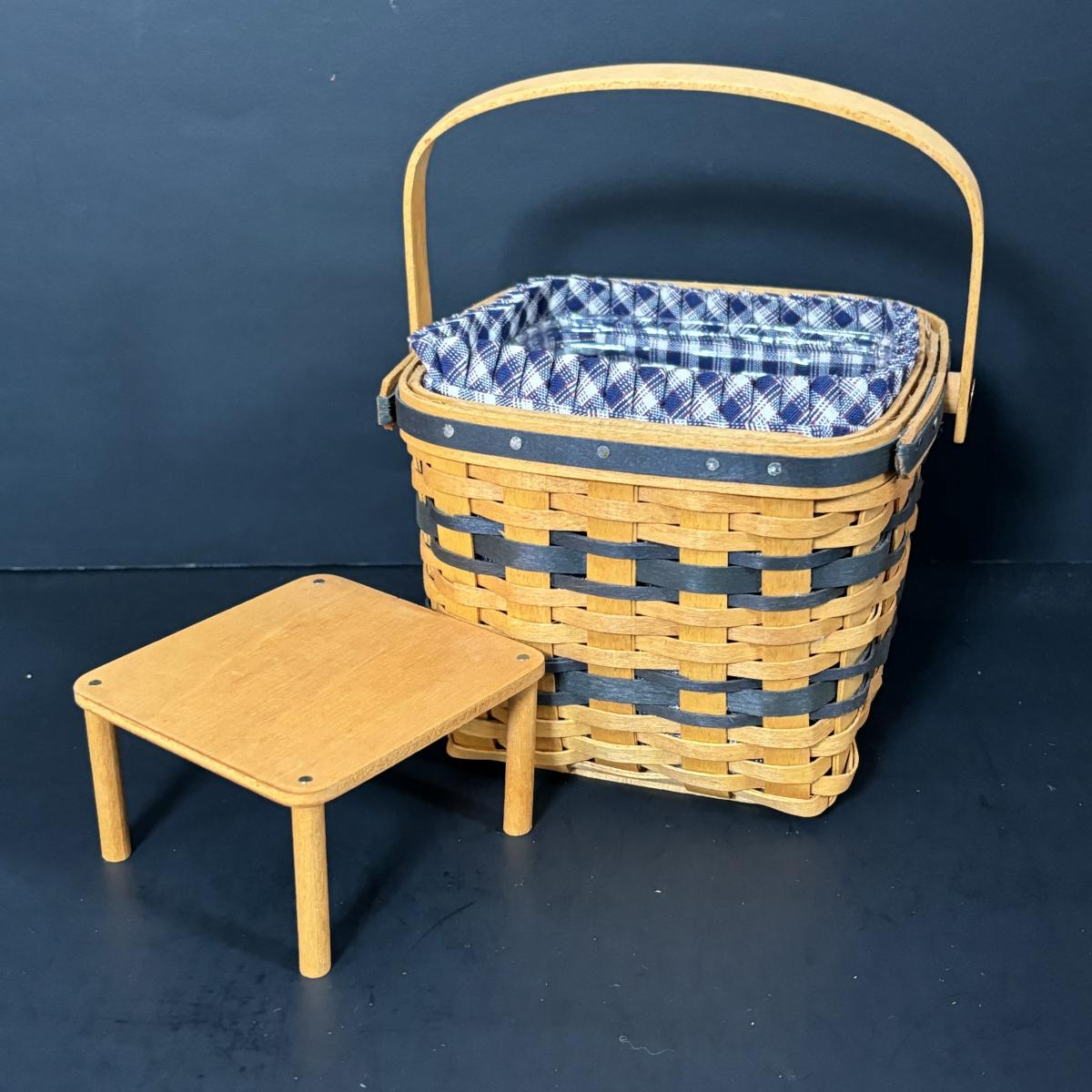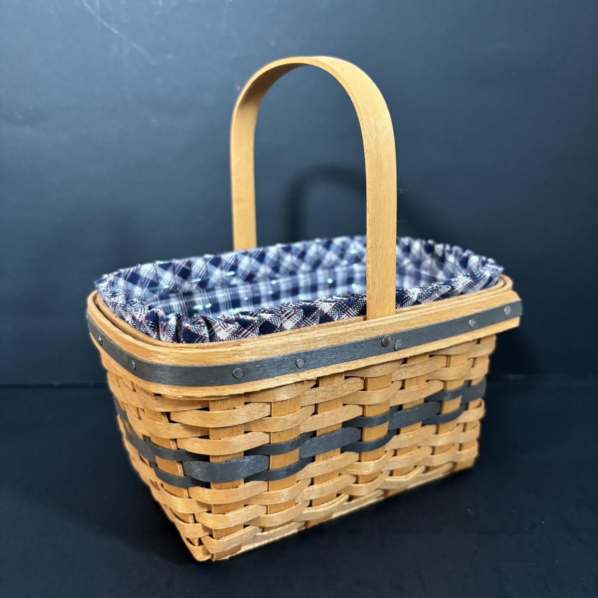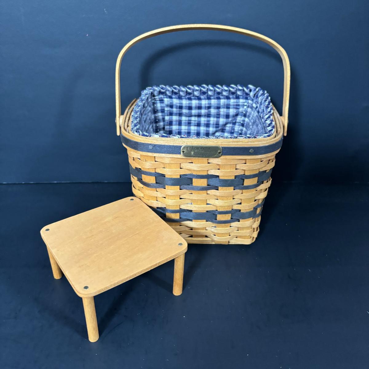 LOT 99: Longaberger Collectors Club Miniatures: Market Basket, Two-Pie Basket, Banker's Waste Basket, Cake Basket