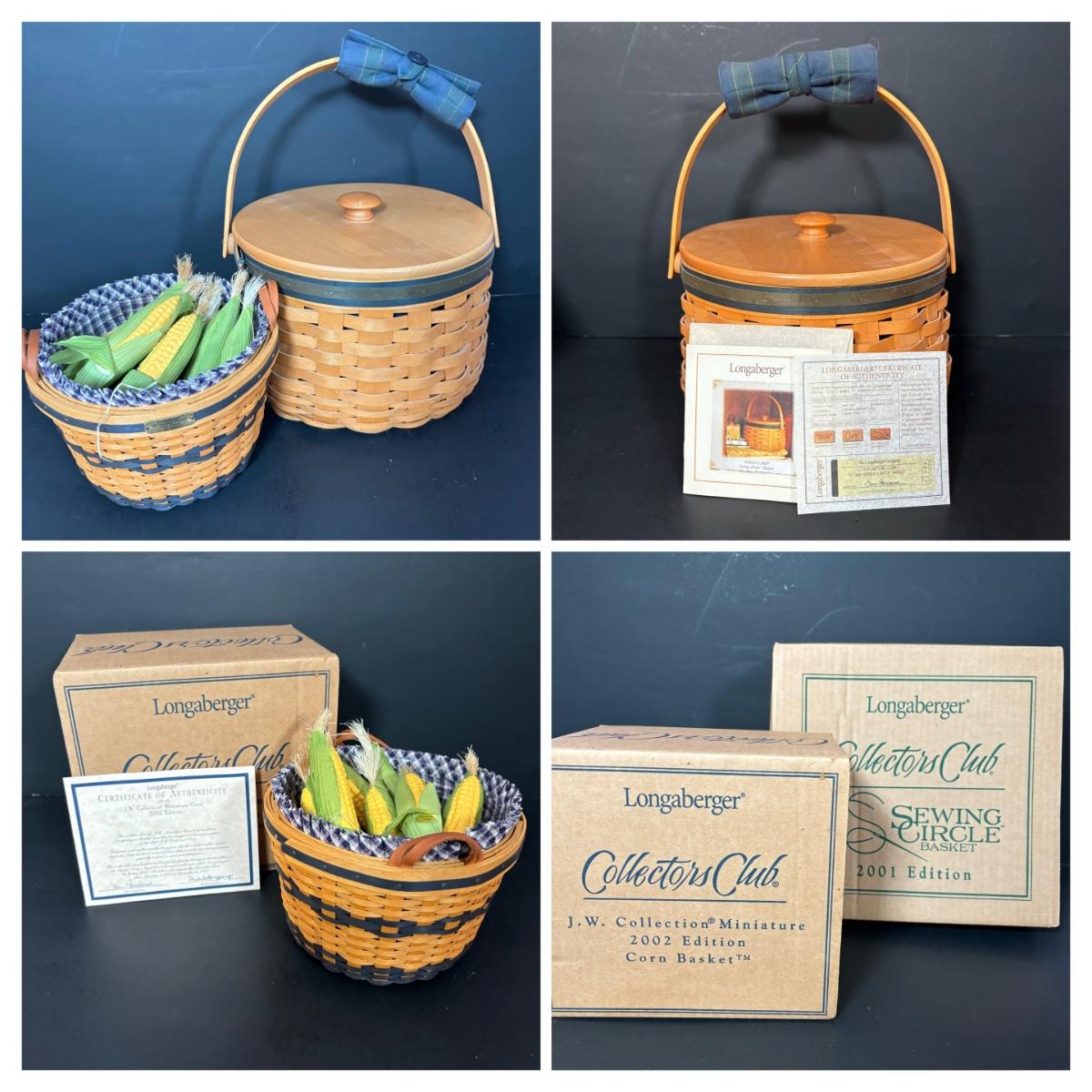 LOT 102: Longaberger Collector Club Baskets: Sewing Circle & Corn