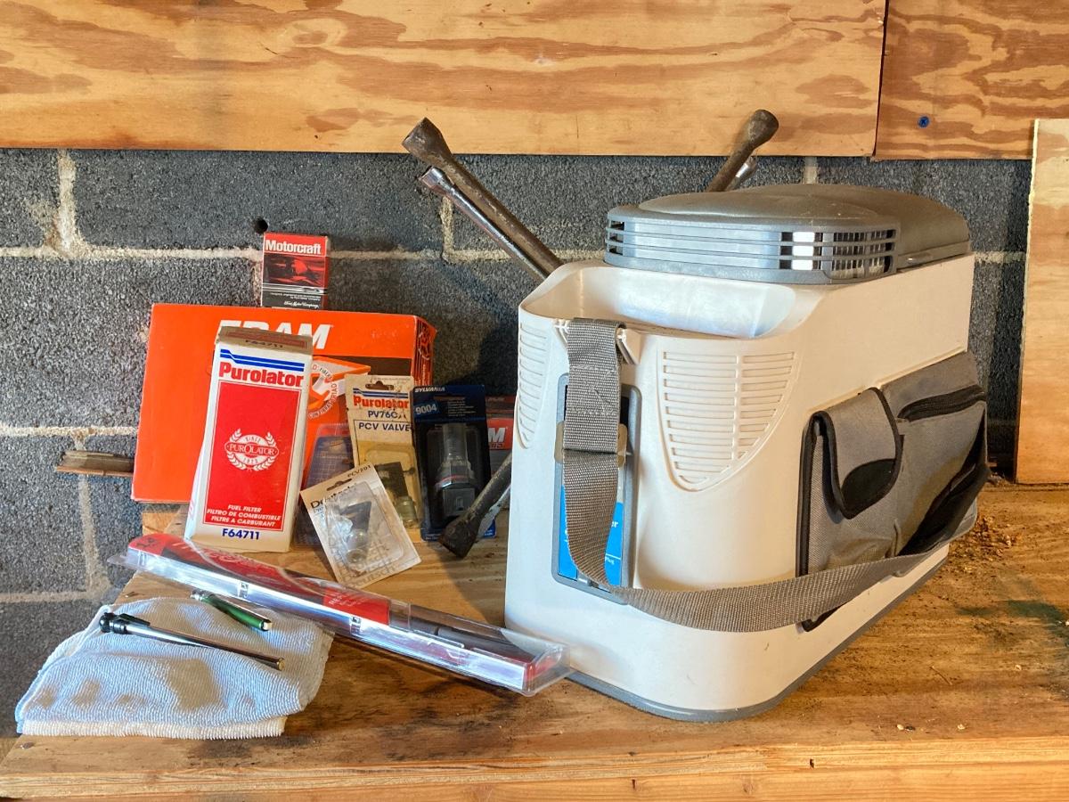 LOT 114: Automotive Lot - Vector Travel Cooler / Heater, Tools, Parts, Cleaning / Detailing Products and More