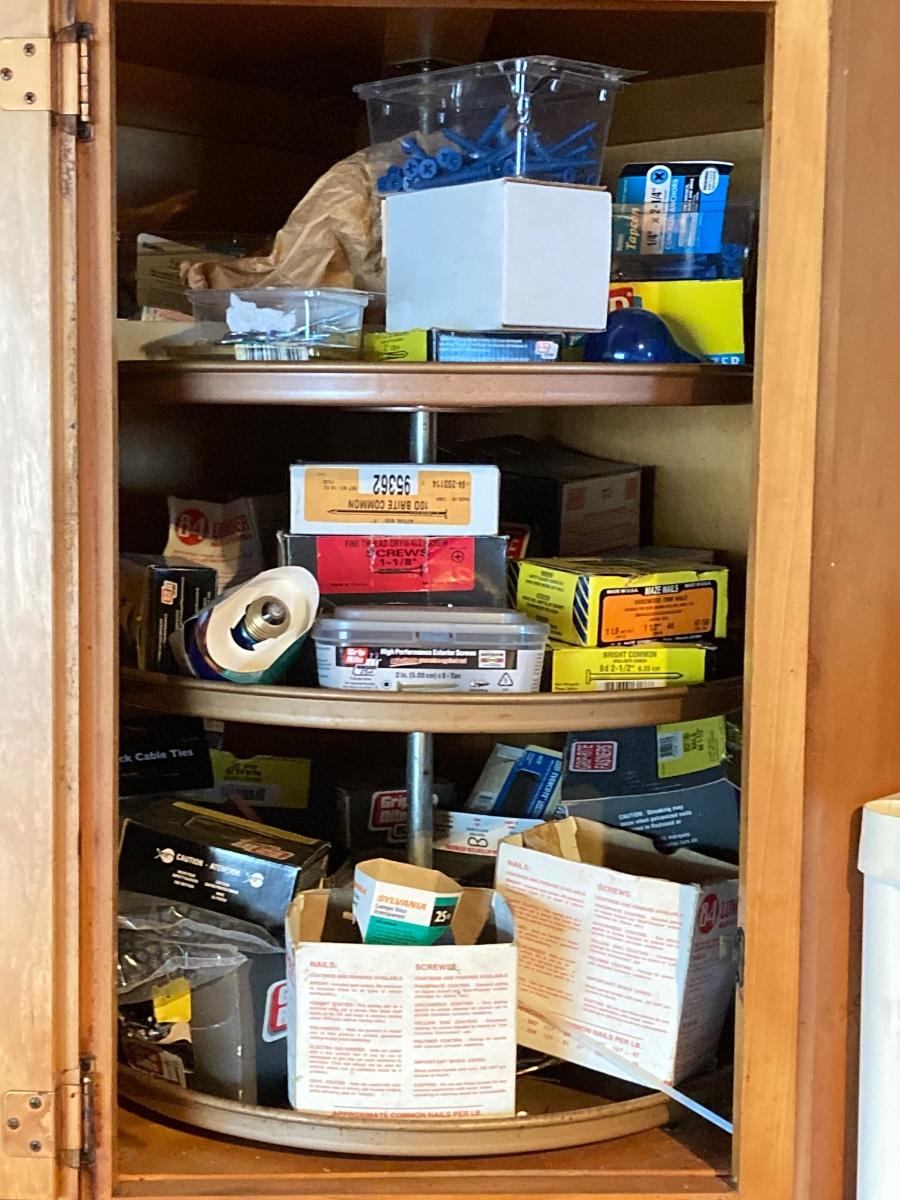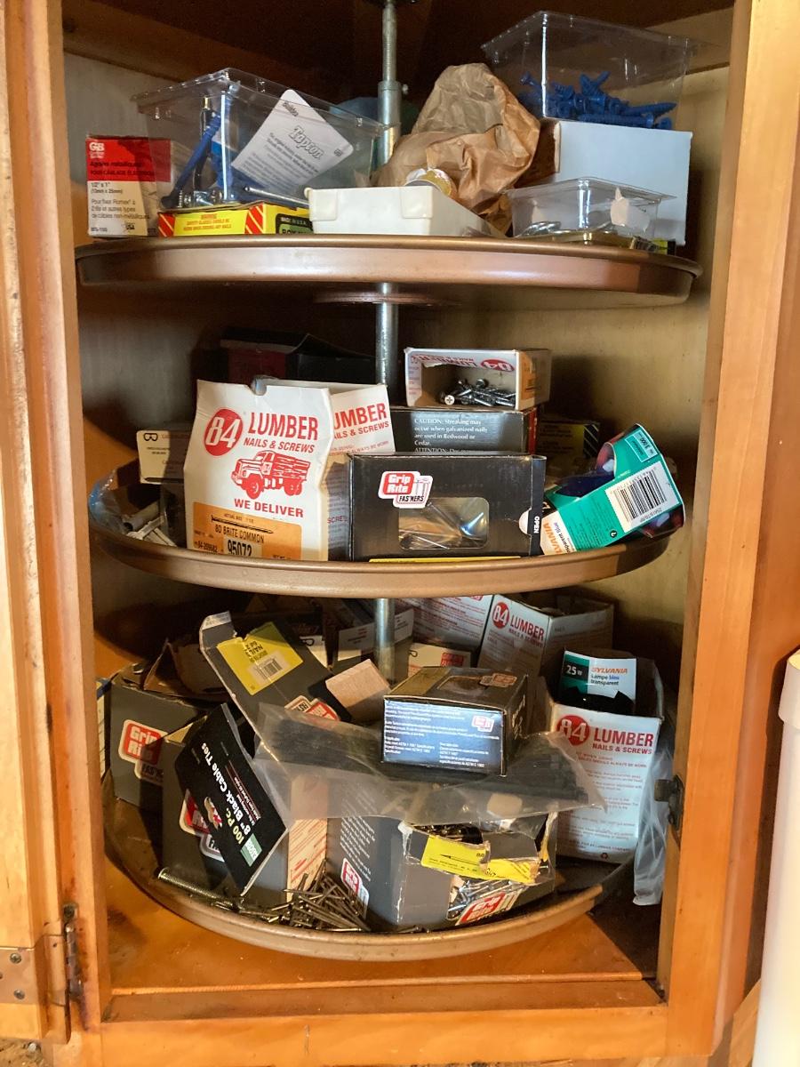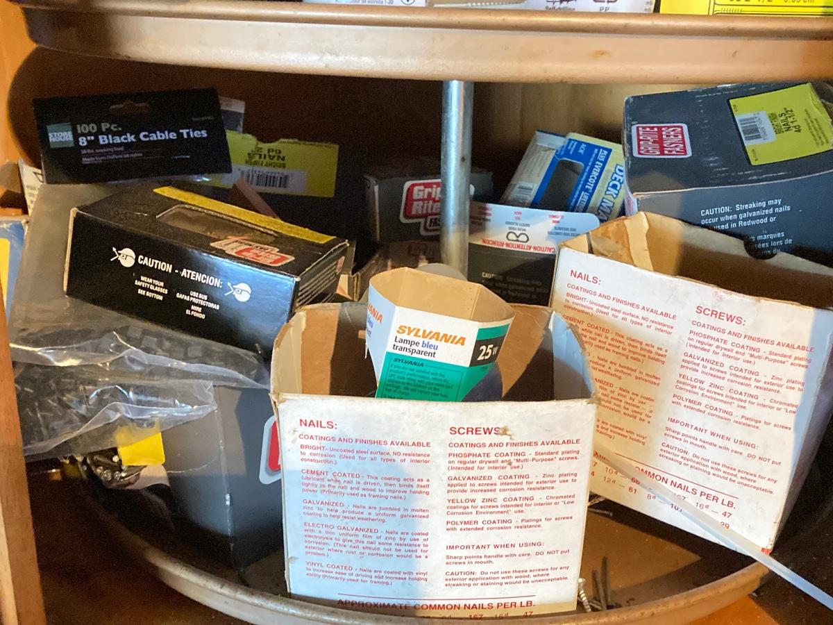 LOT 120: Garage Cabinet Cleanout - Hardware and More