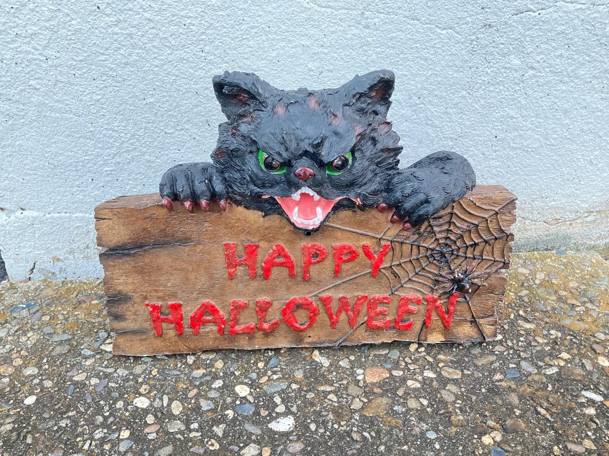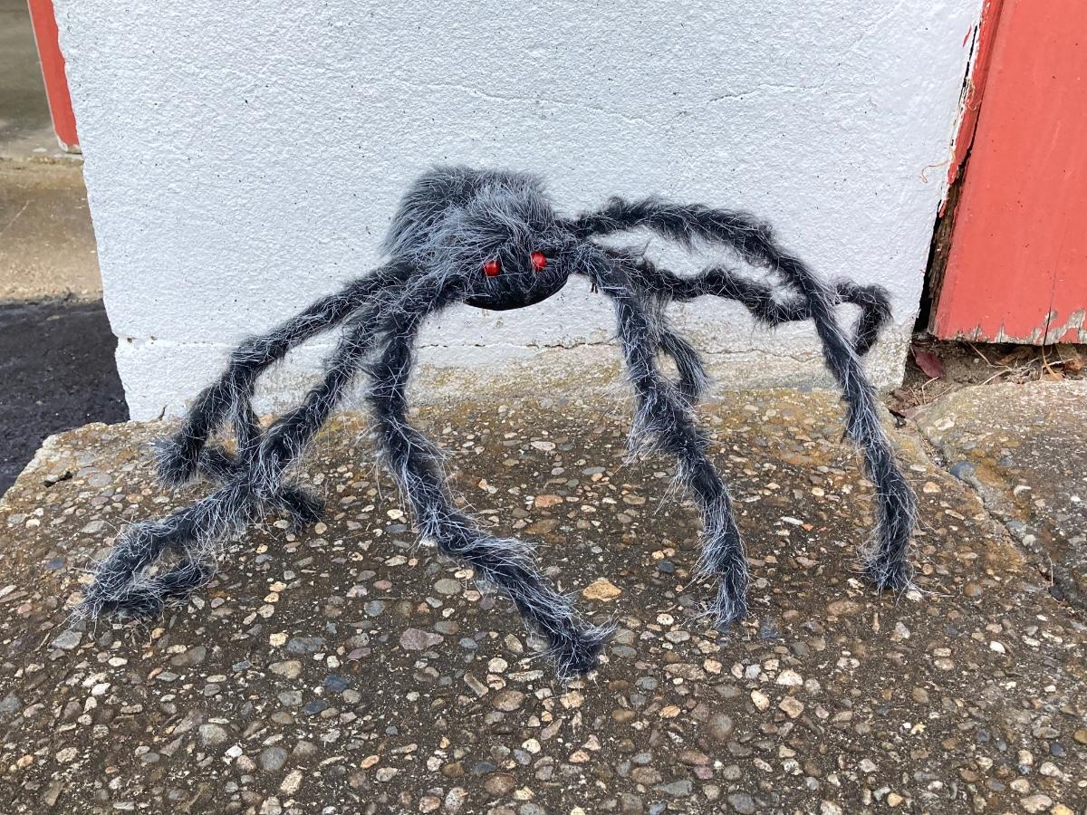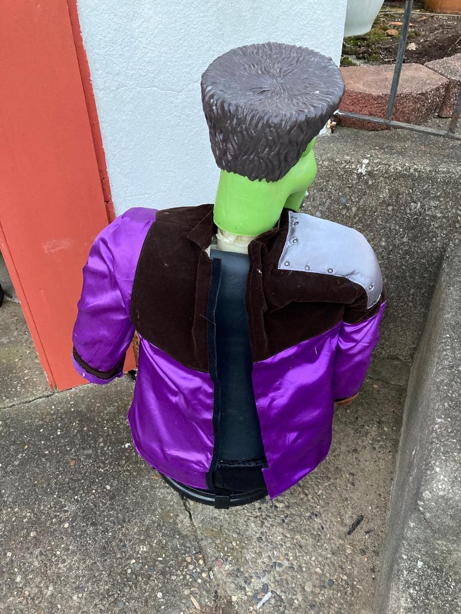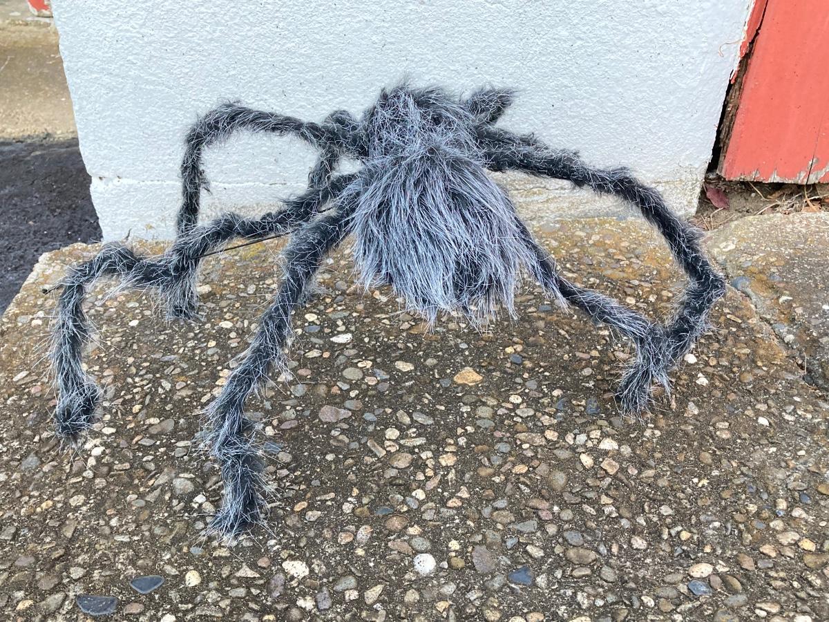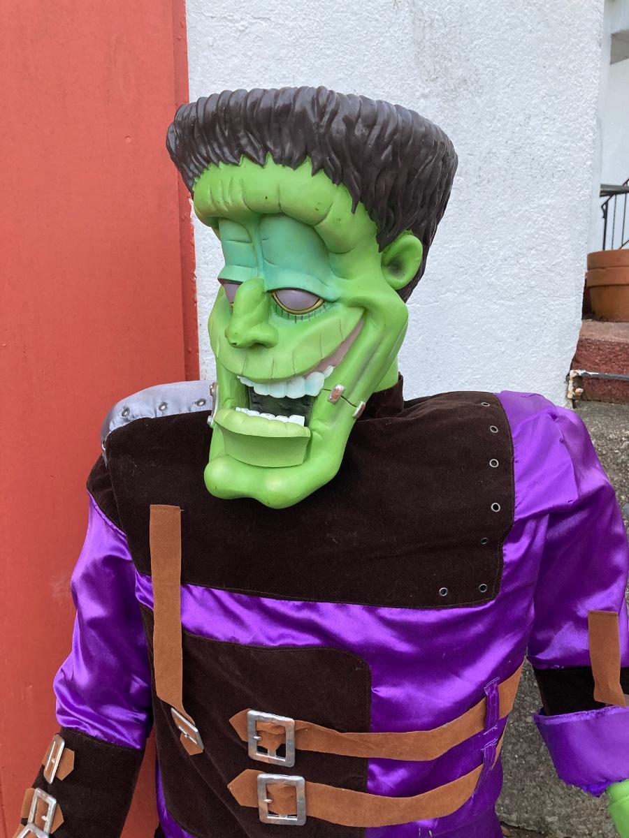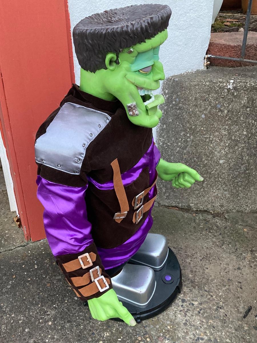 LOT 124: Vintage Gemmy Frankenstein, Happy Halloween Sign and Large Fuzzy Toy Spider