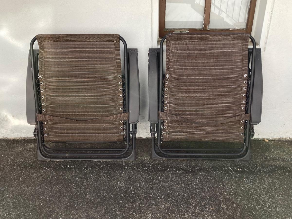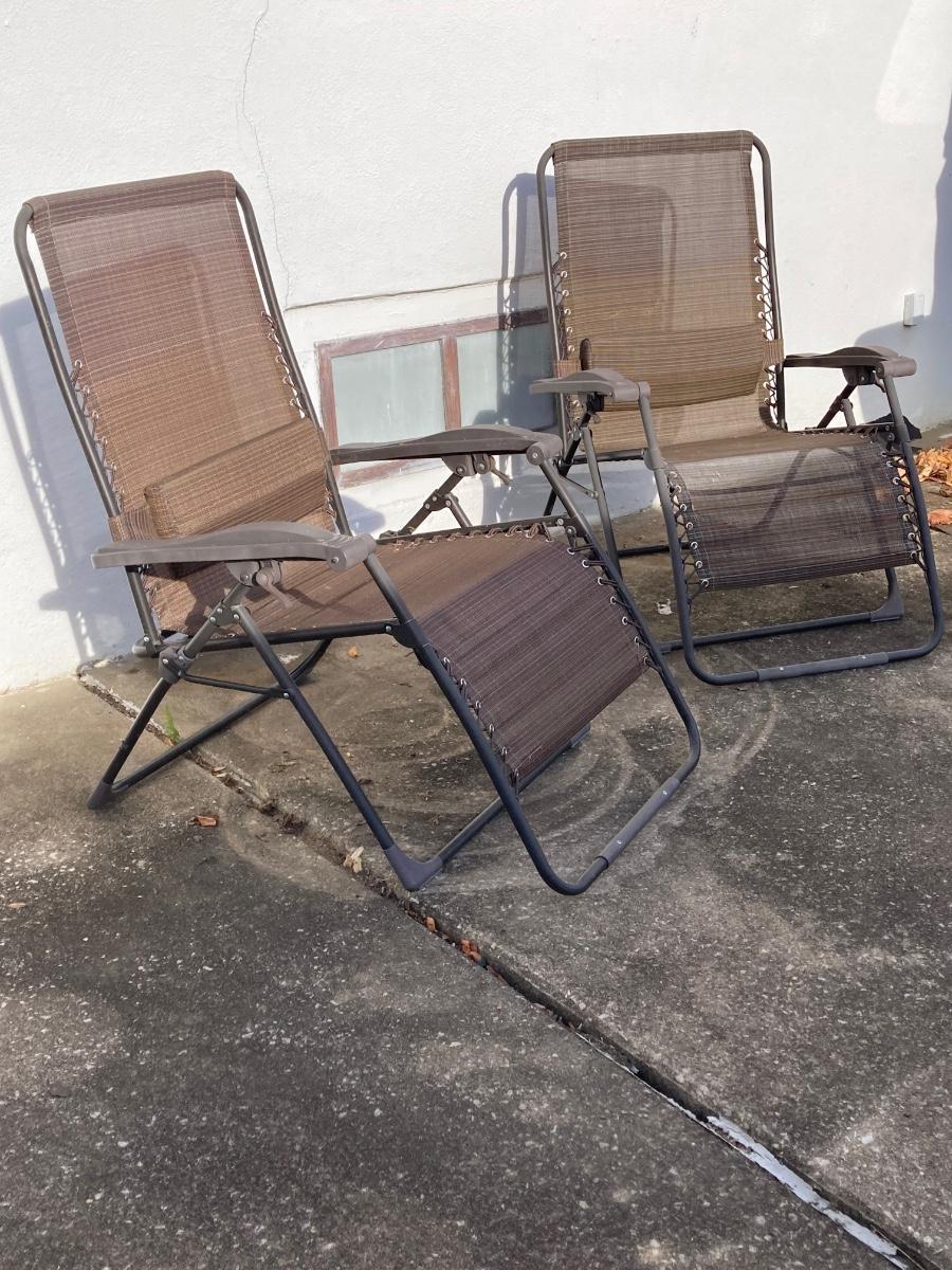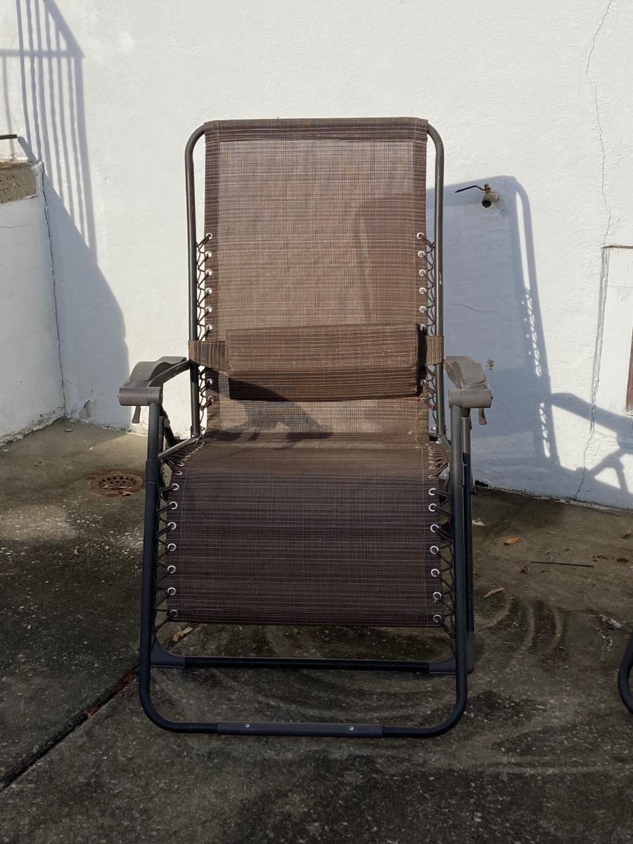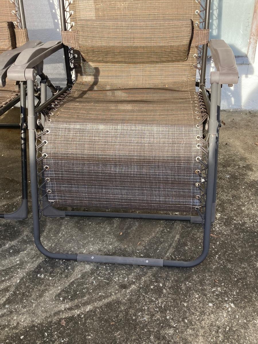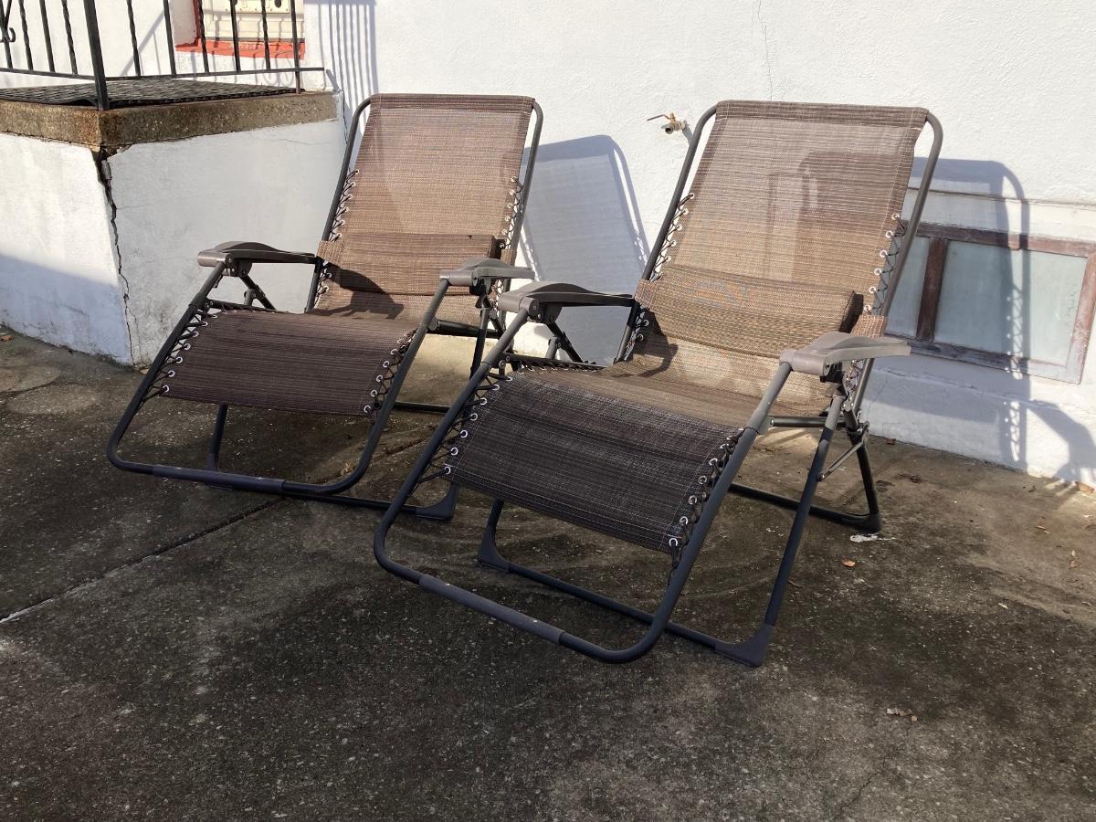 LOT 126: Pair of Brown Zero Gravity Folding Lounge / Patio Chairs