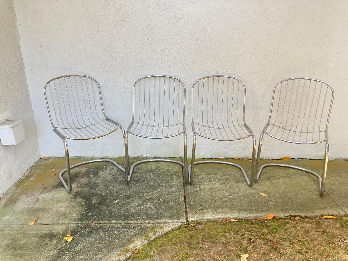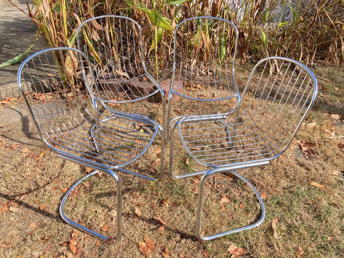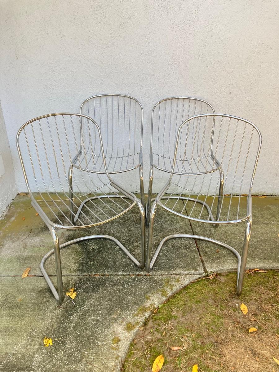 LOT 135: Four Mid-Century Tubular Chrome Chairs