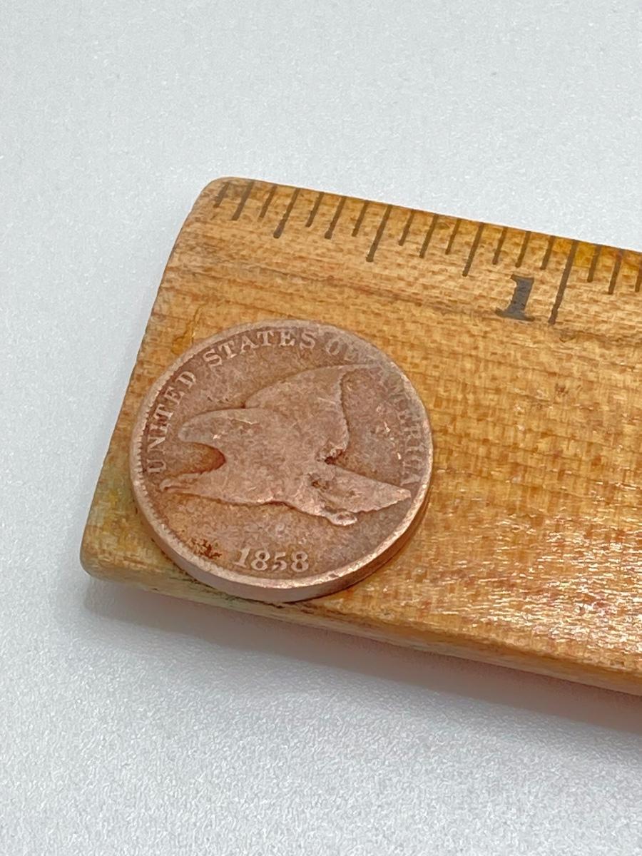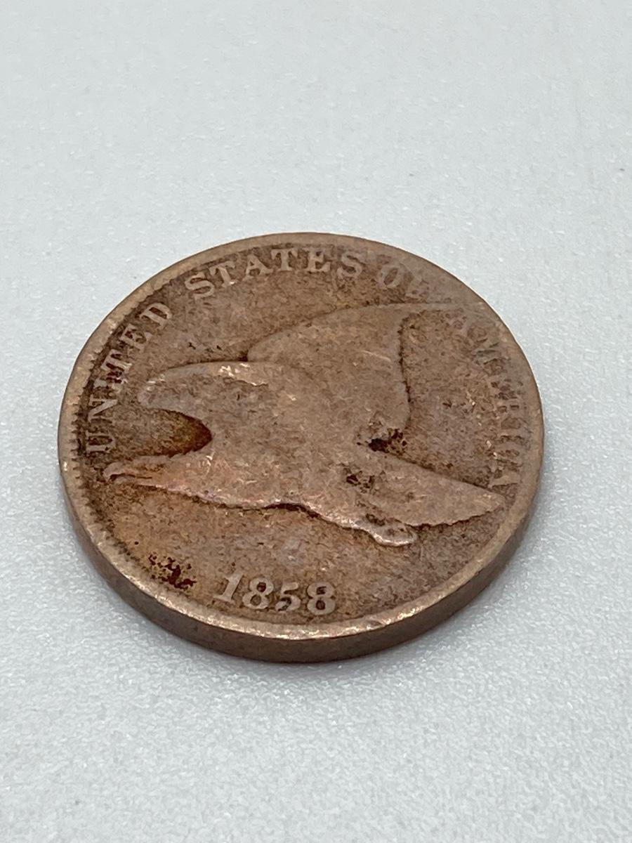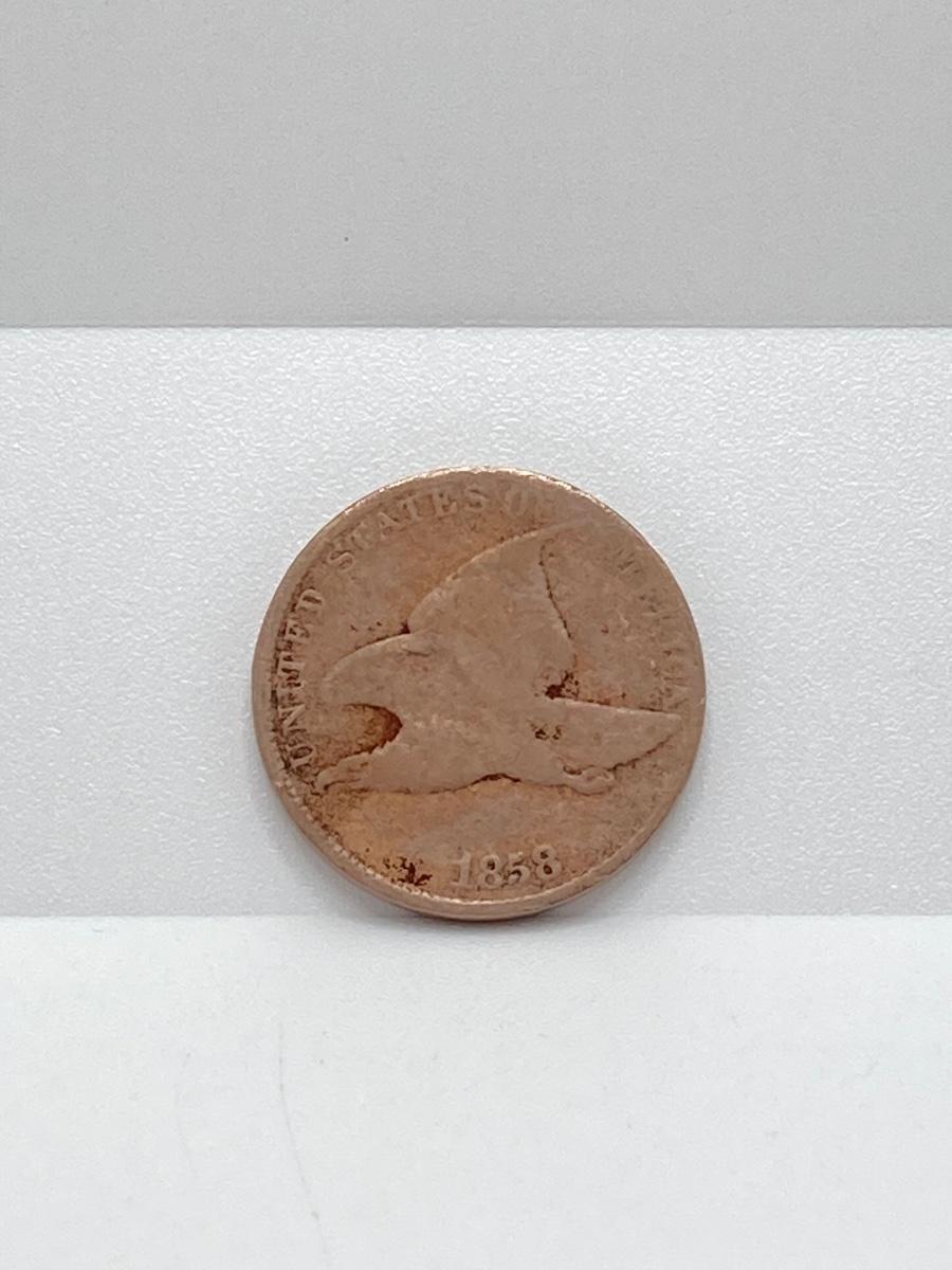 LOT 139: 1858 United States Flying Eagle Large Letter Cent Penny Coin