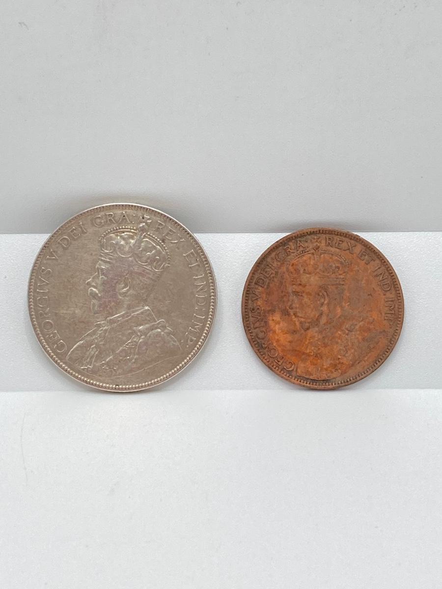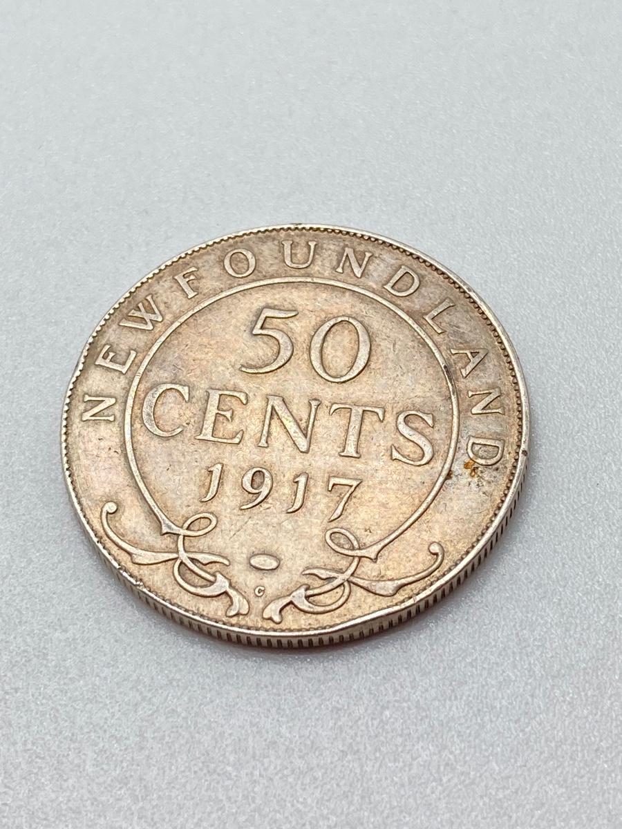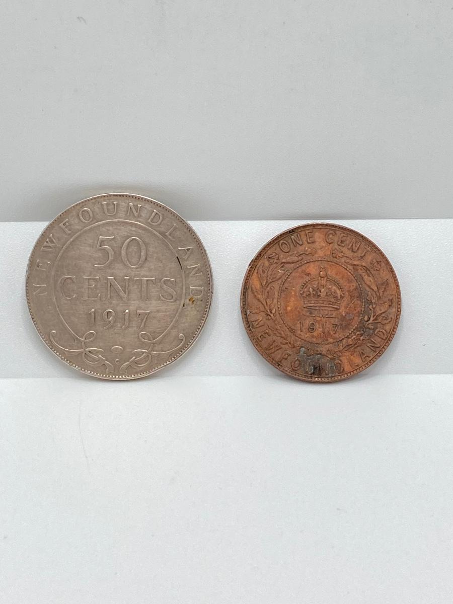 LOT 142: 1917 Newfoundland Coins - 50 Cent Coin and One Cent Coin
