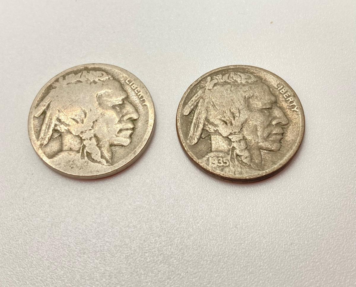 Two - Buffalo Nickels (1935 and unknown date)