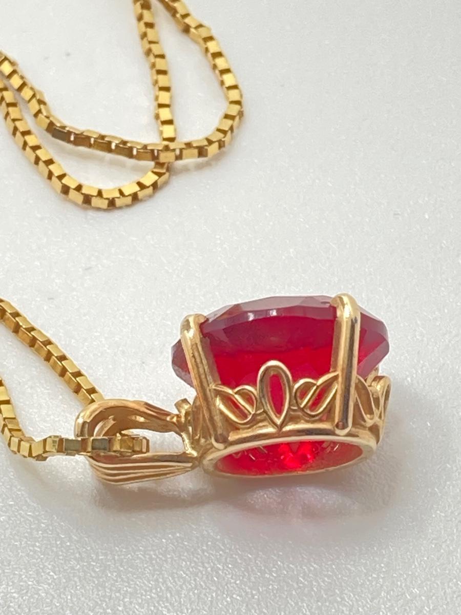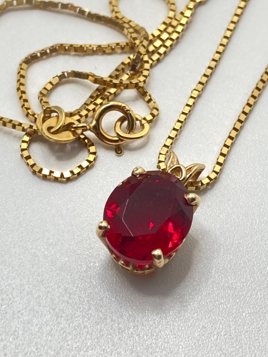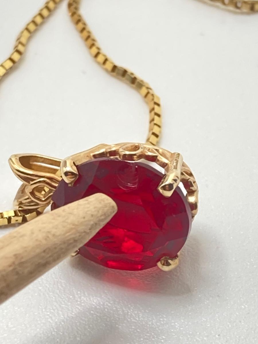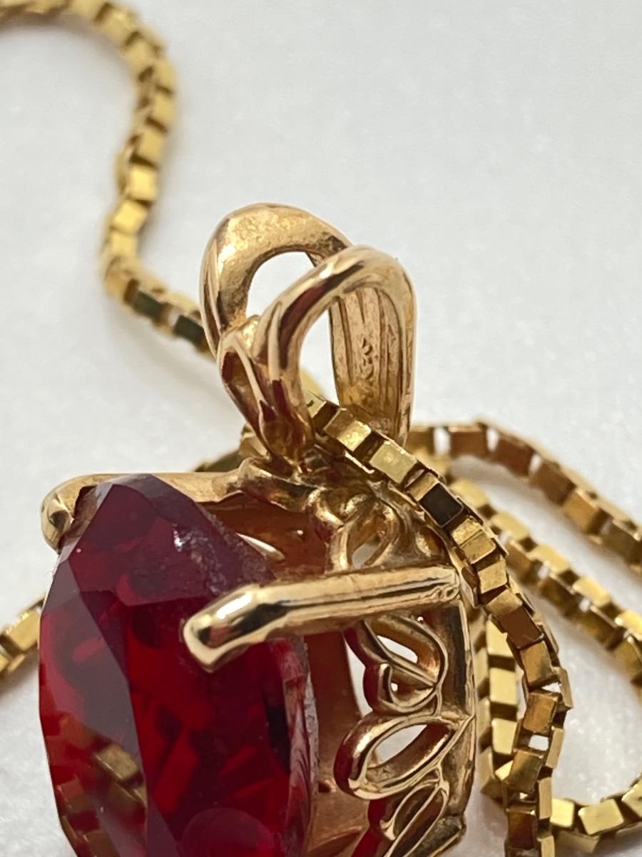LOT 155: MOM Israel Gold Necklace with Faceted Garnet Pendant - 14KT, TW 4.89g