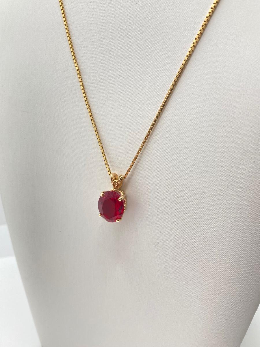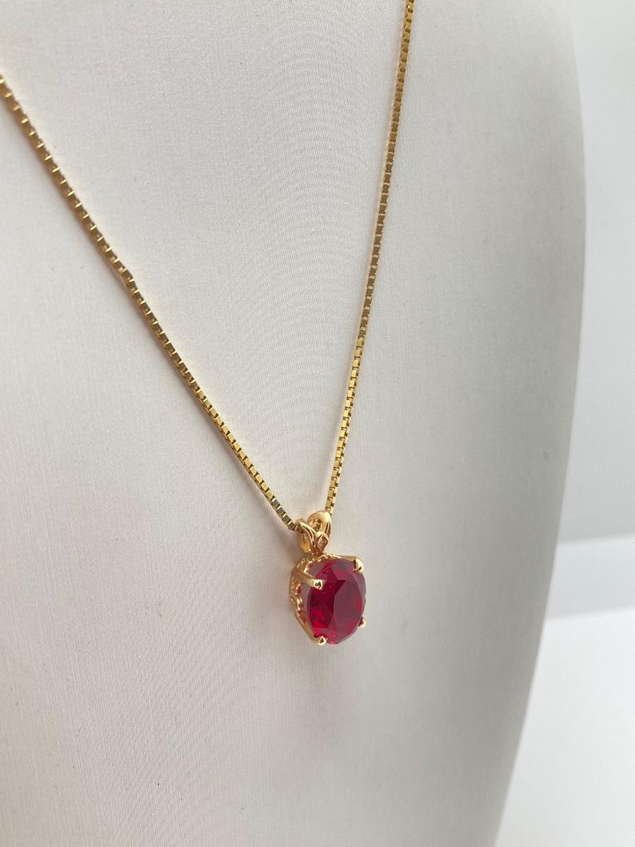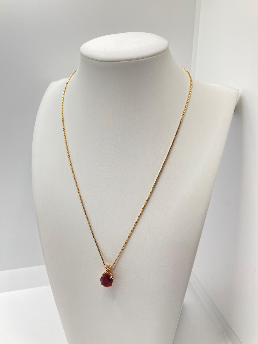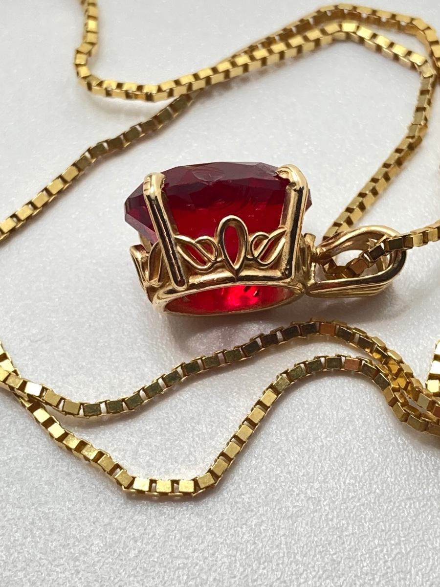 LOT 155: MOM Israel Gold Necklace with Faceted Garnet Pendant - 14KT, TW 4.89g