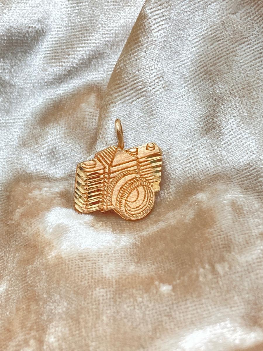 LOT 159: Diamond Cut Gold Camera Charm - 14KT, TW 1.66g