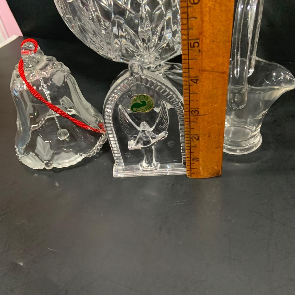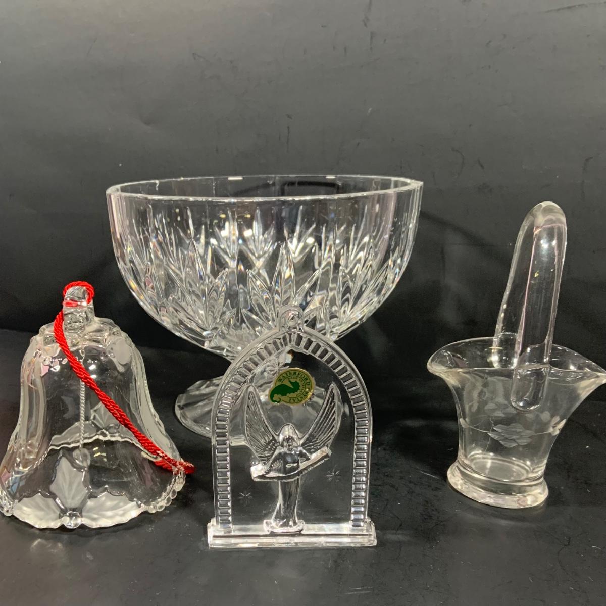 LOT:166: Waterford Crystal Christmas Angel Ornament, Makasa Style Bell, Glass Basket and Crystal Bowl