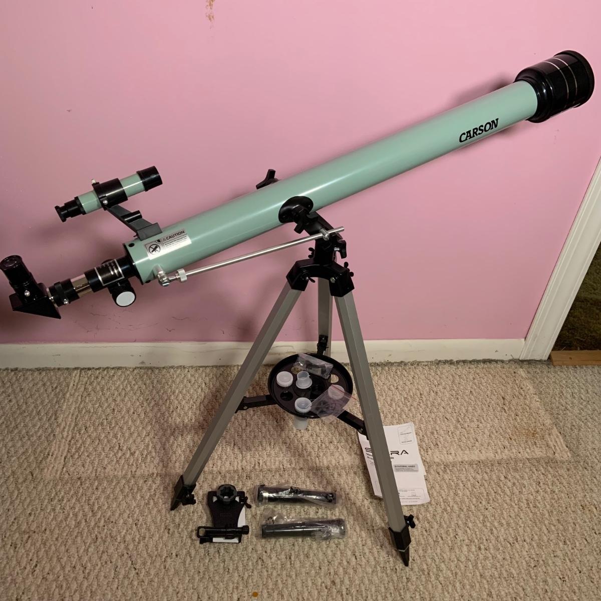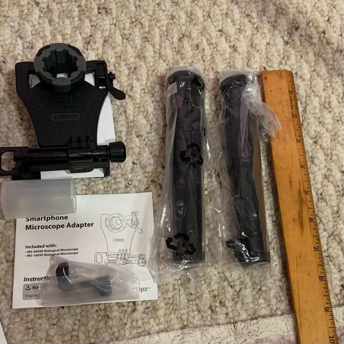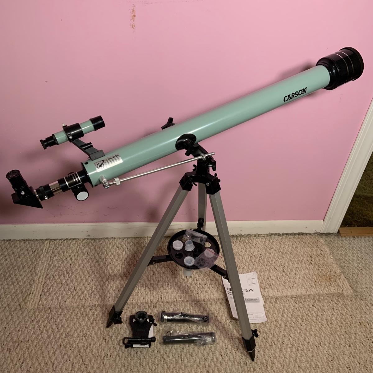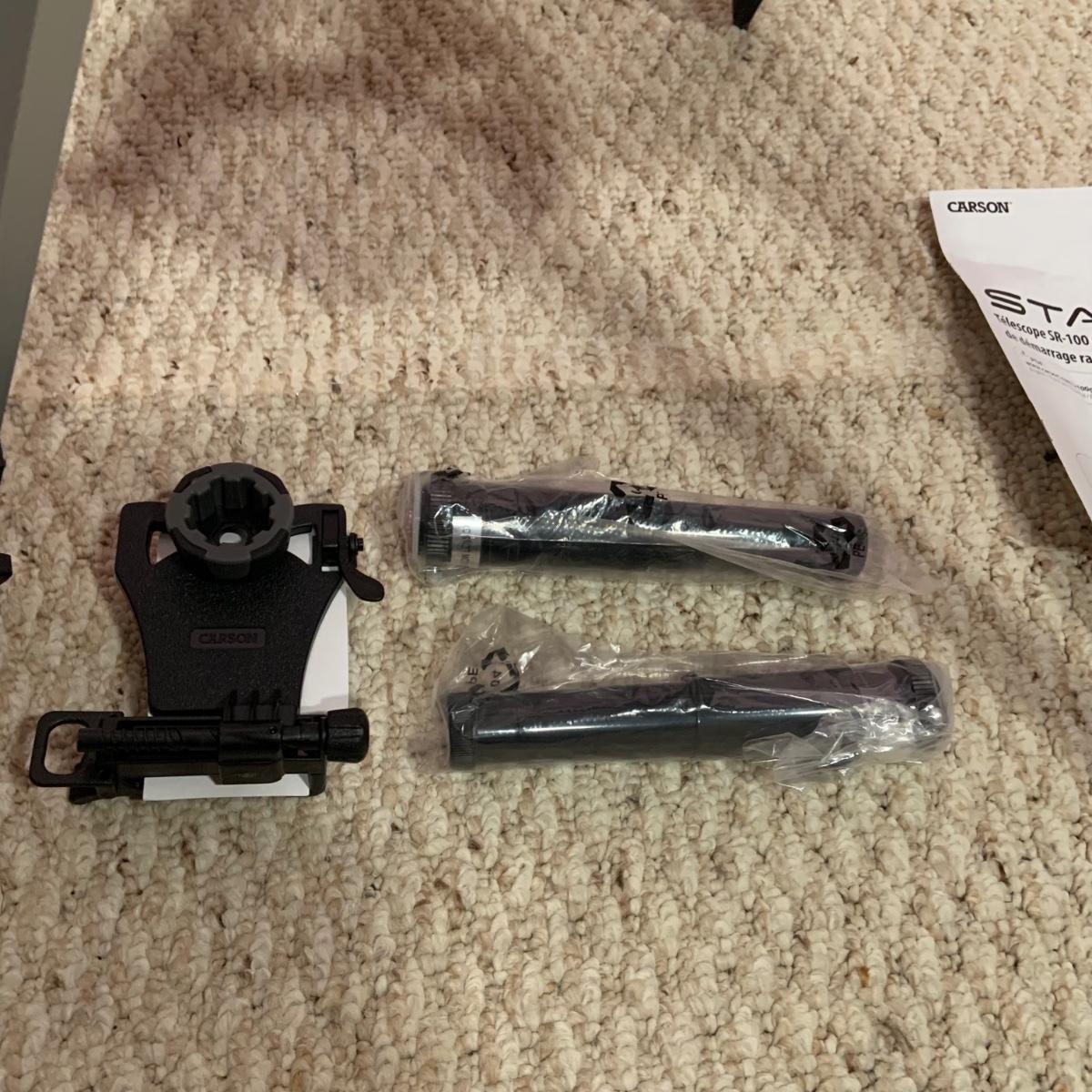 LOT:170: Carson Stara Model SR-100 Telescope with Additional Lenses, Scopes, Smartphone Adapter and More