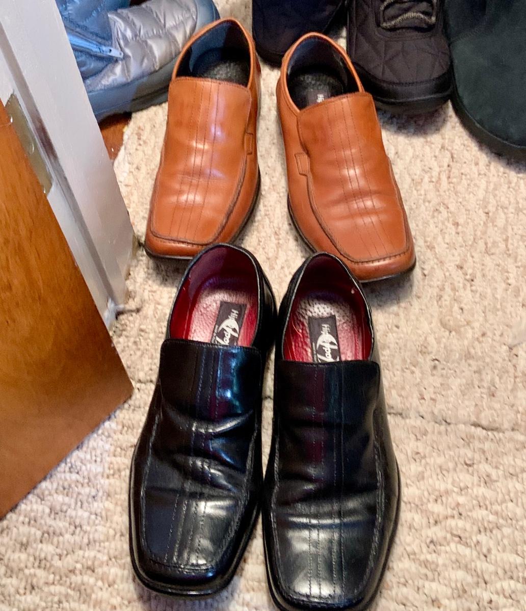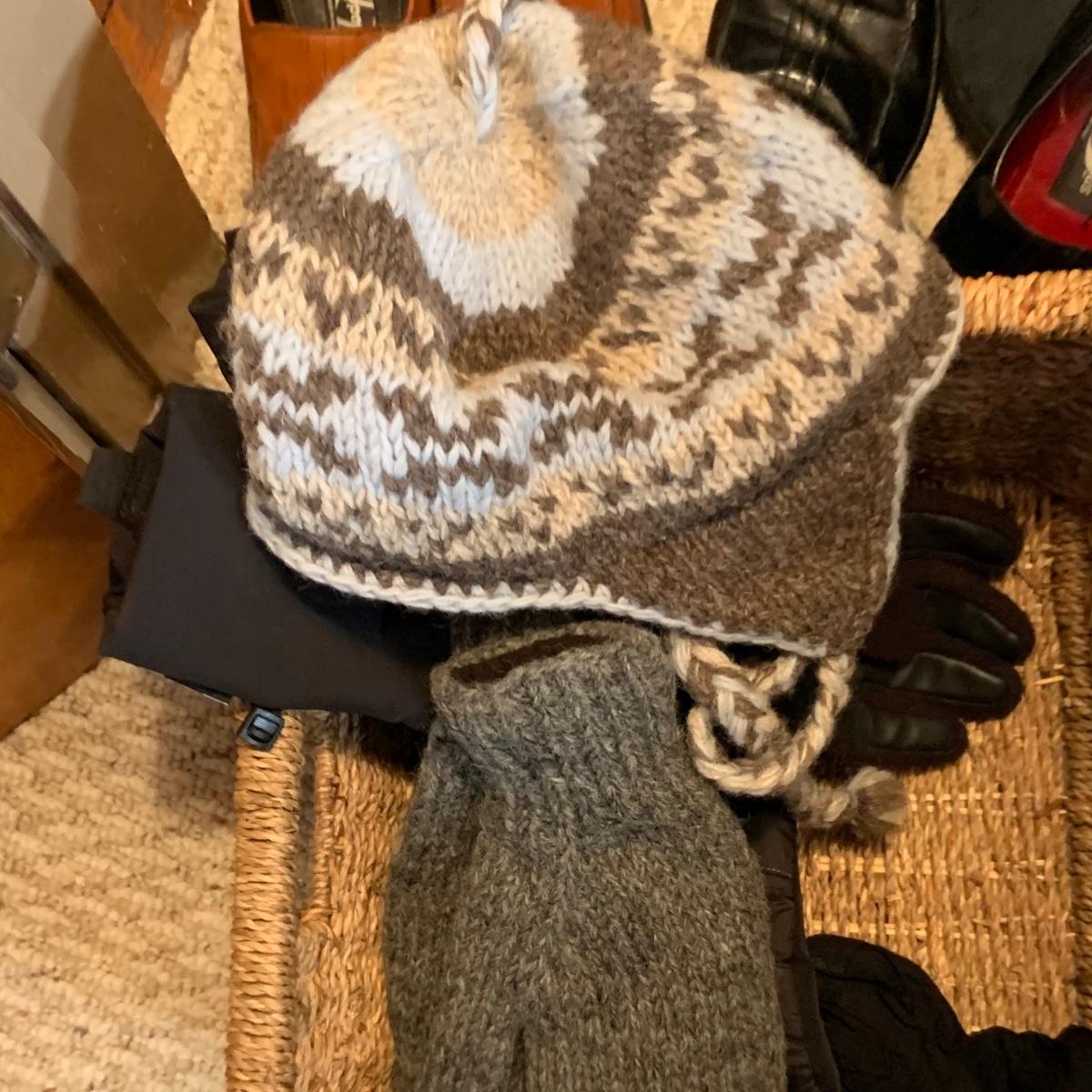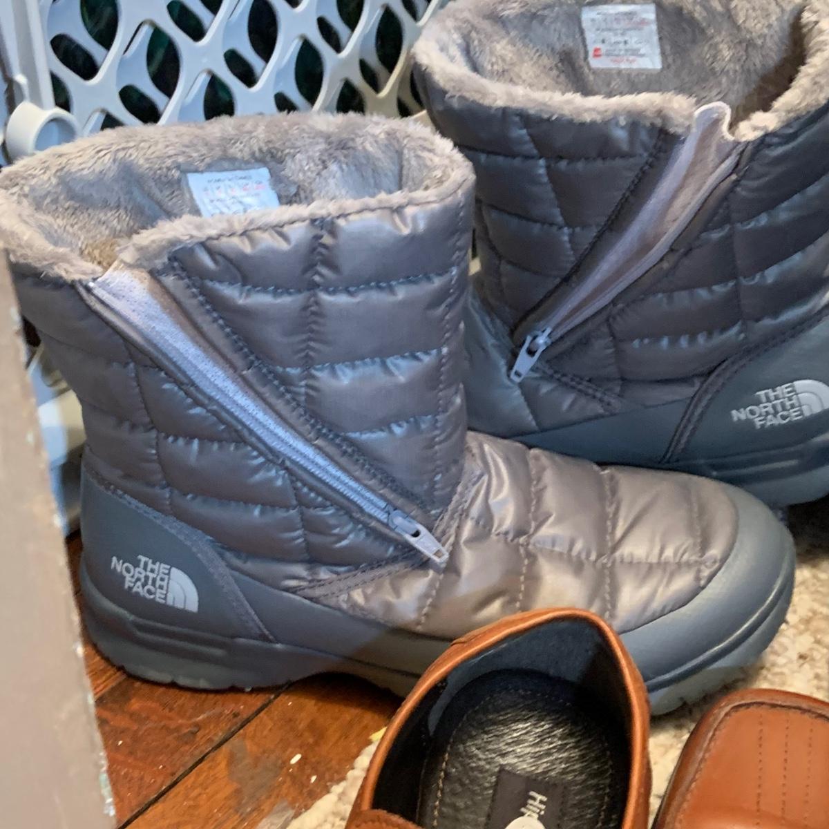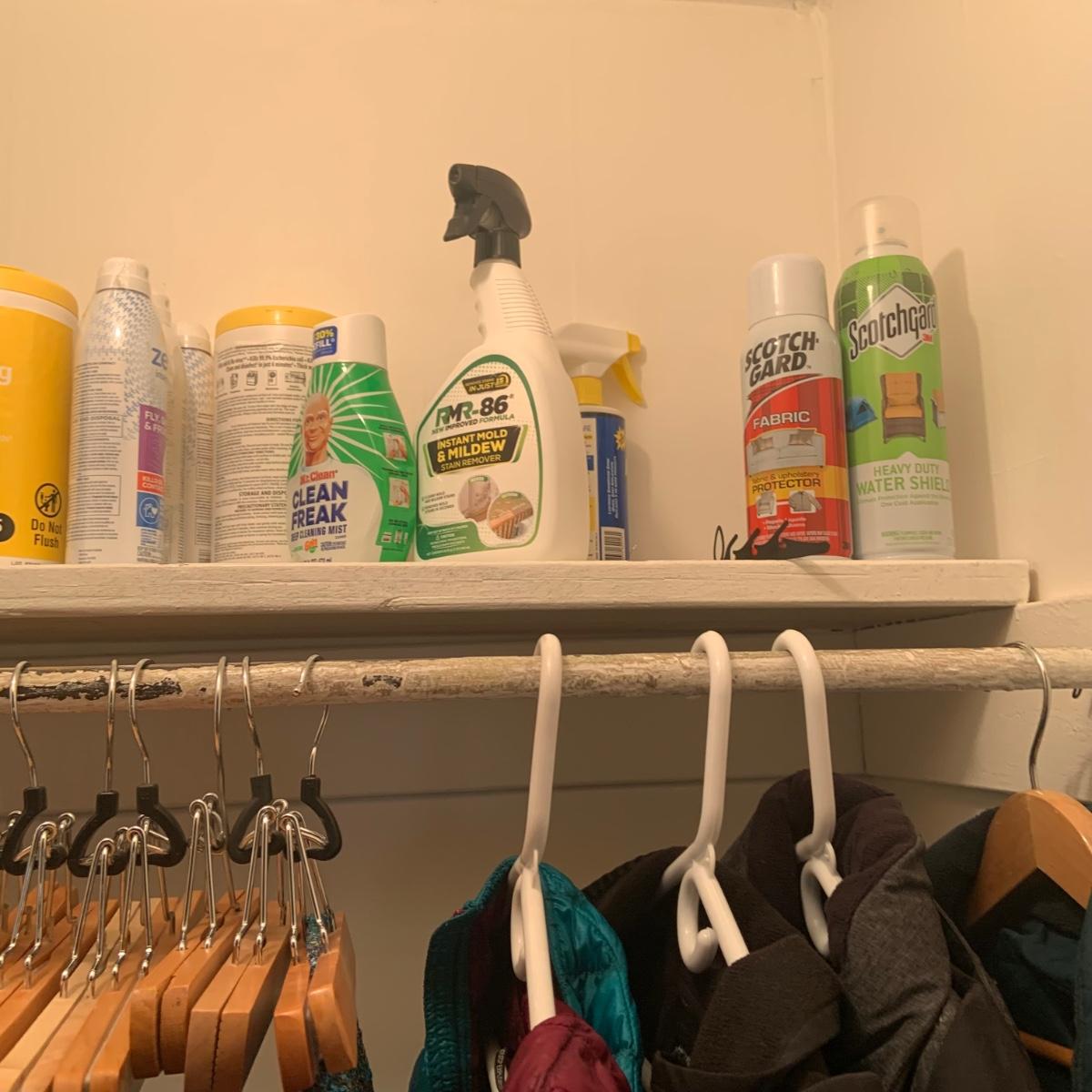 LOT:174: Contents of Closet Including Columbia and North Face Gloves, Boots, Northface and Land's End Coats. Hipoppotamus Italian Leather Shoes, Cleaning Supplies Bowling Ball and Much More
