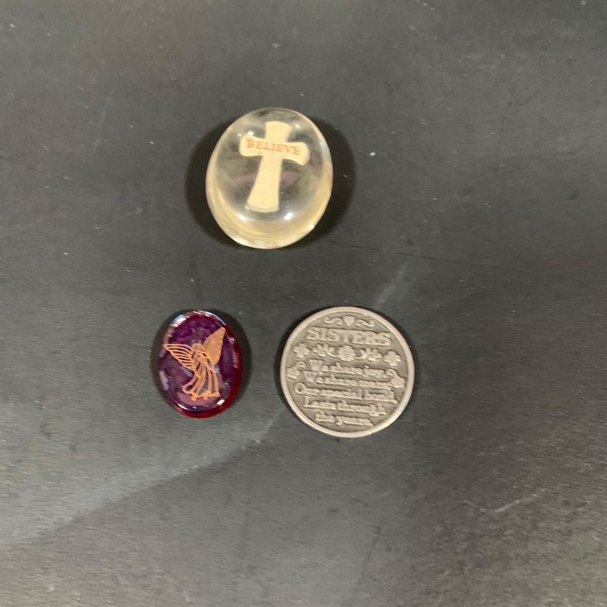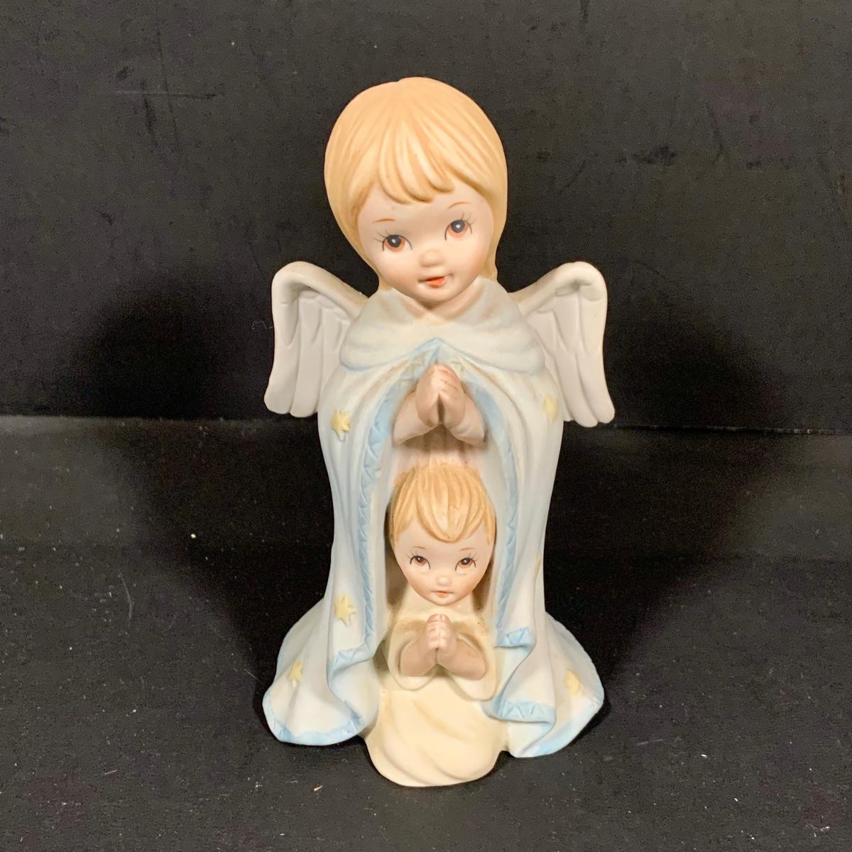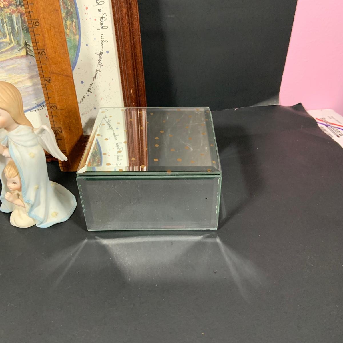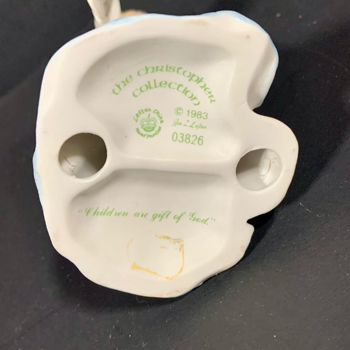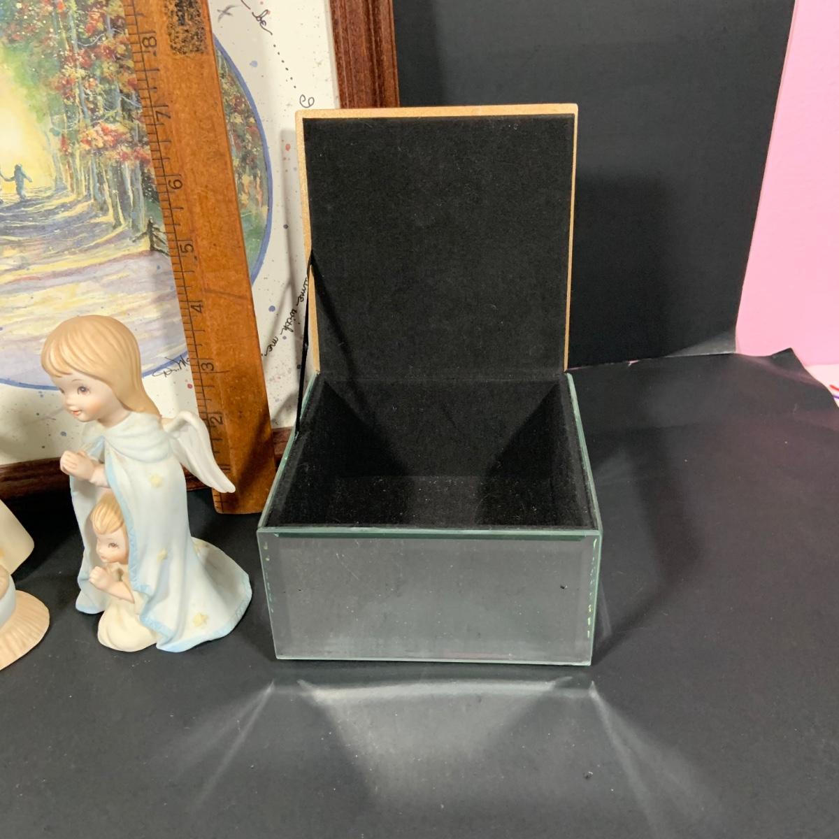 LOT:181: Set of 3 Lefton The Christopher Collection Figurines, Inspriational Wall Art, Glass Box, Celtic Style Cross and More