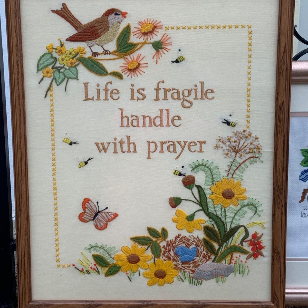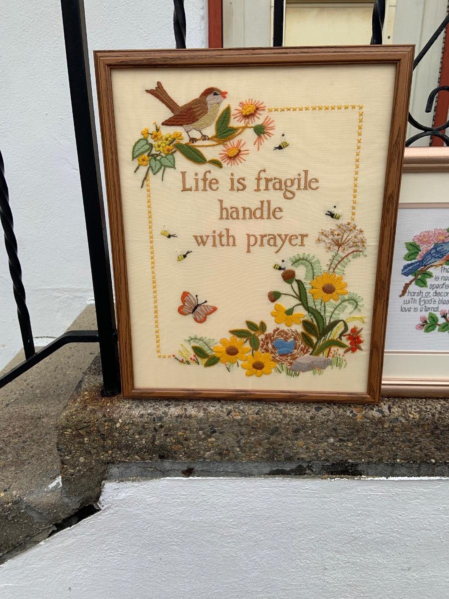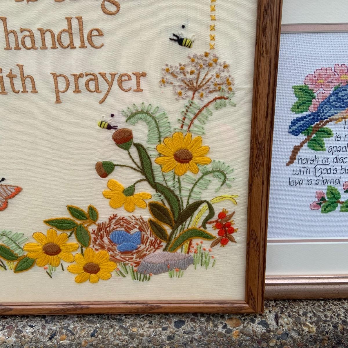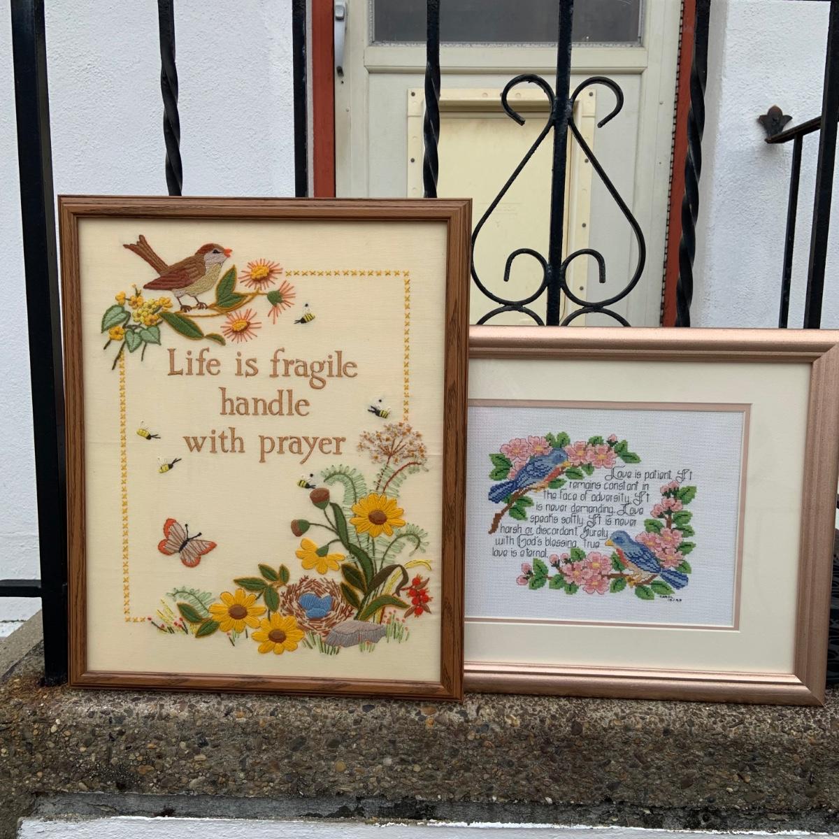 LOT:182: Set of 2 Framed Needle Craft Inspirational Wall Art