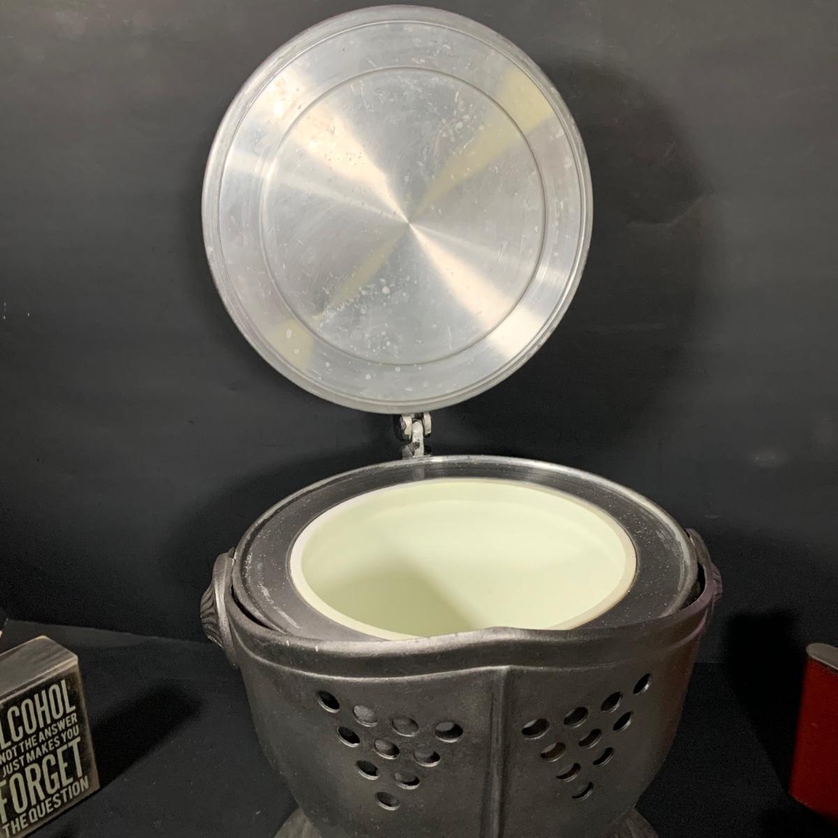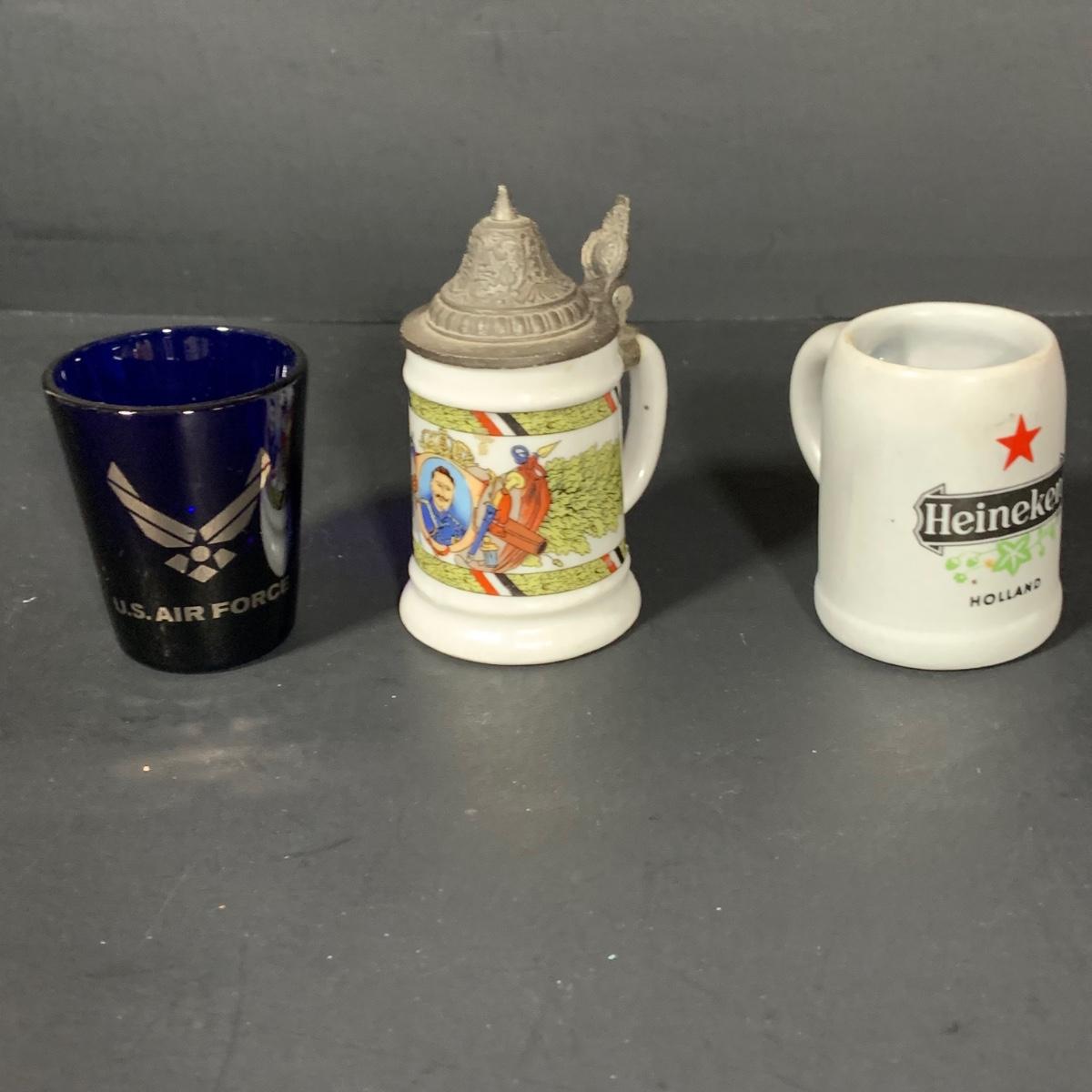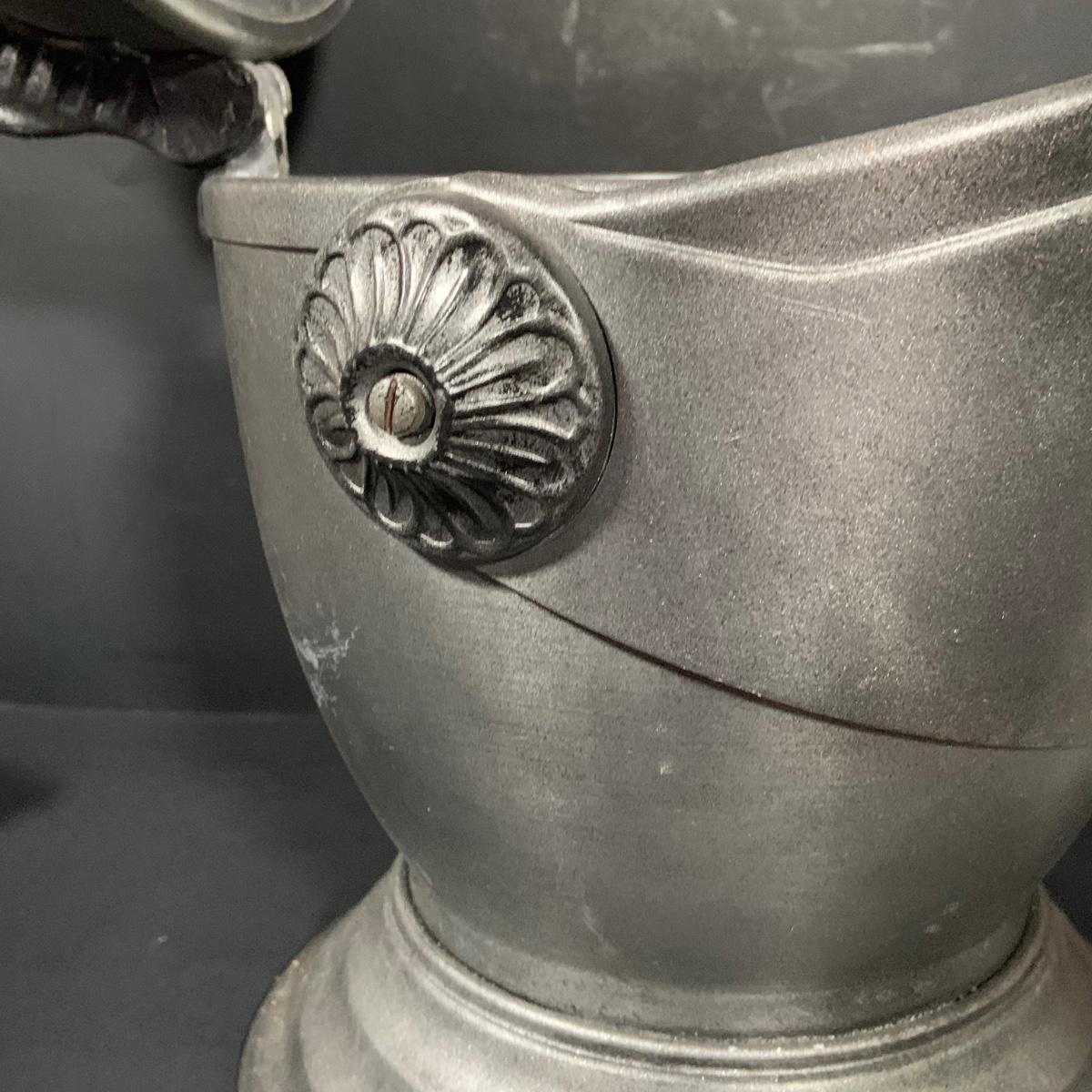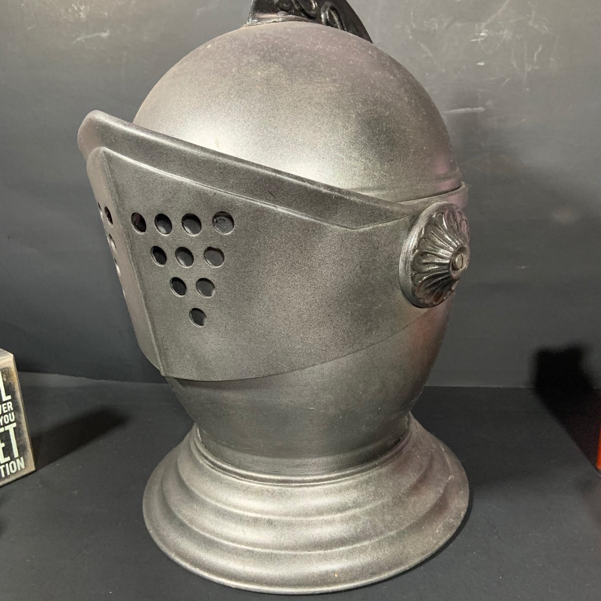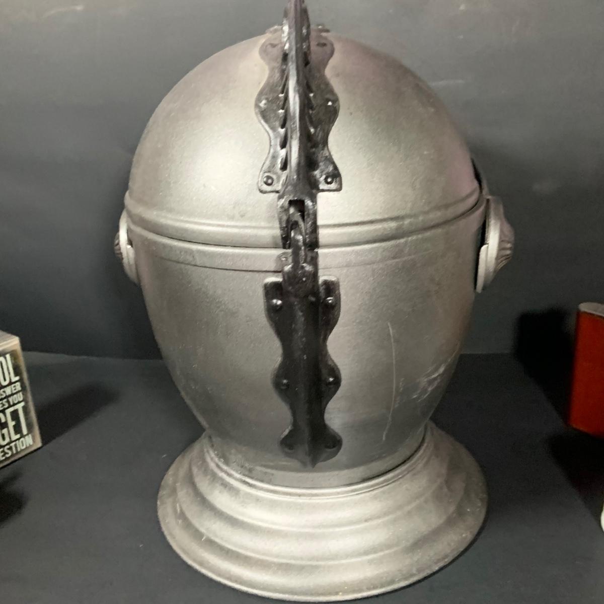 LOT:184: Vintage Kinght Helmet Ice Bucket, Flask, Assorted Shot Glasses and More