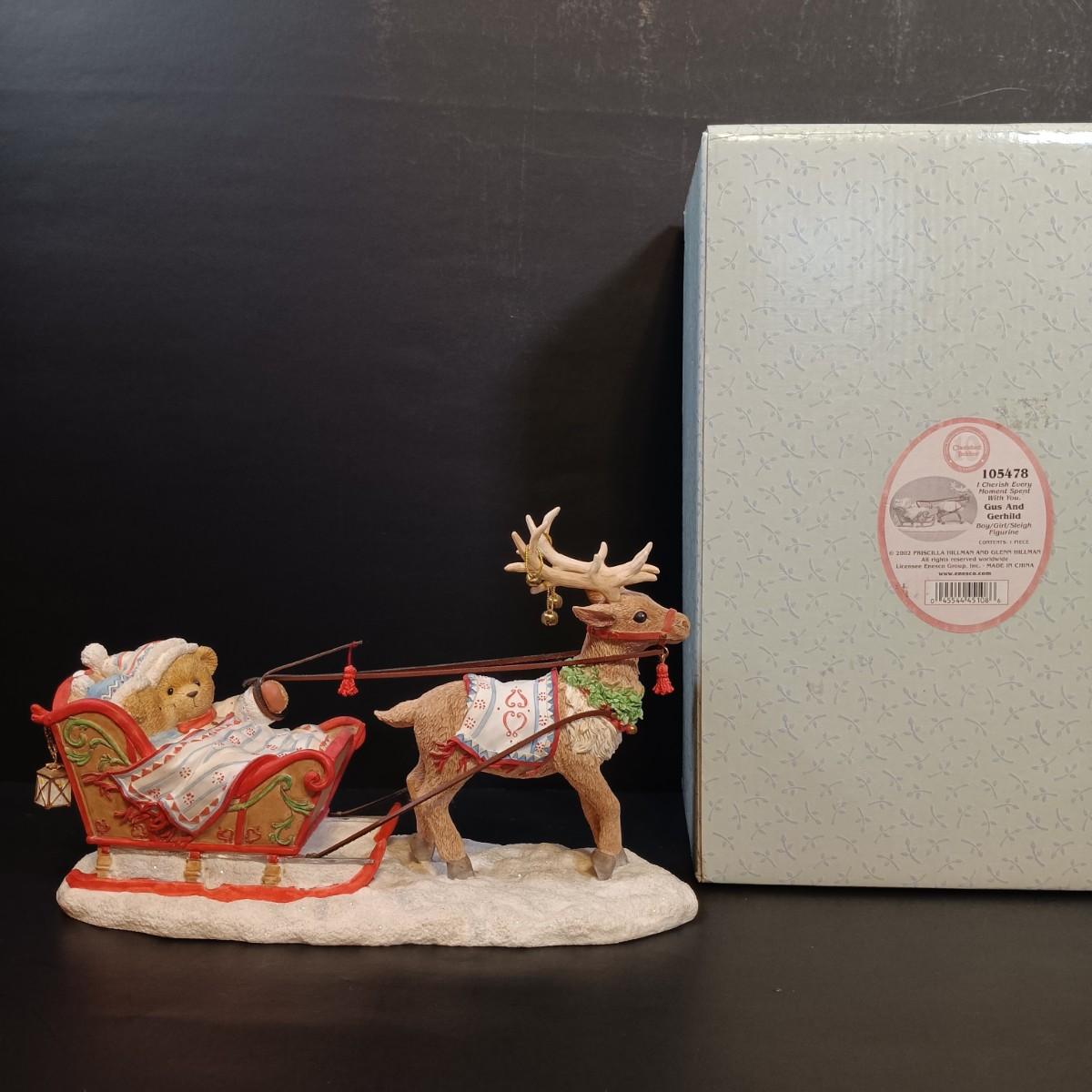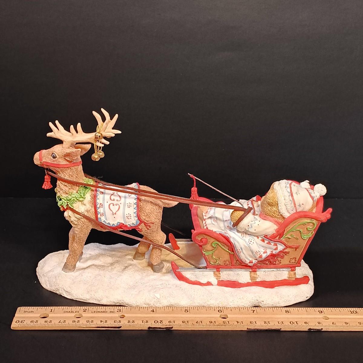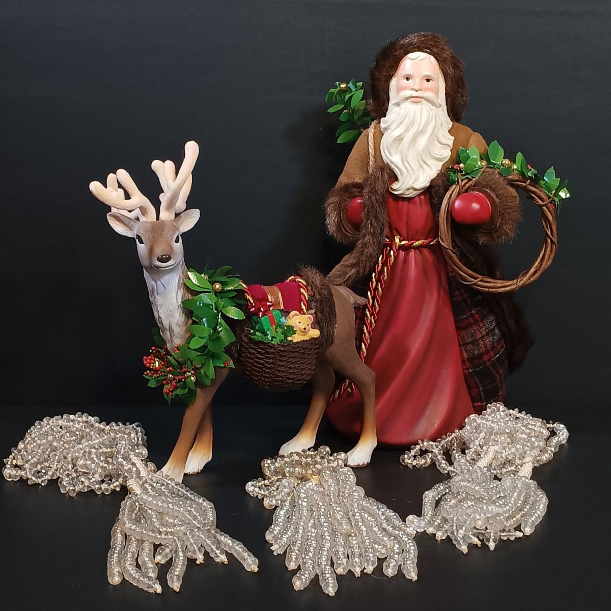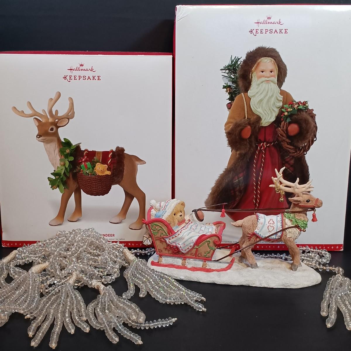 LOT 191: Hallmark 2016 Father Christmas and Reindeer w/ Vintage Glass Bead Decor & Cherished Teddies Figurine