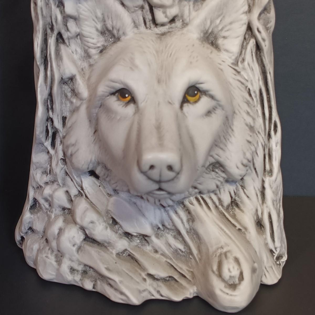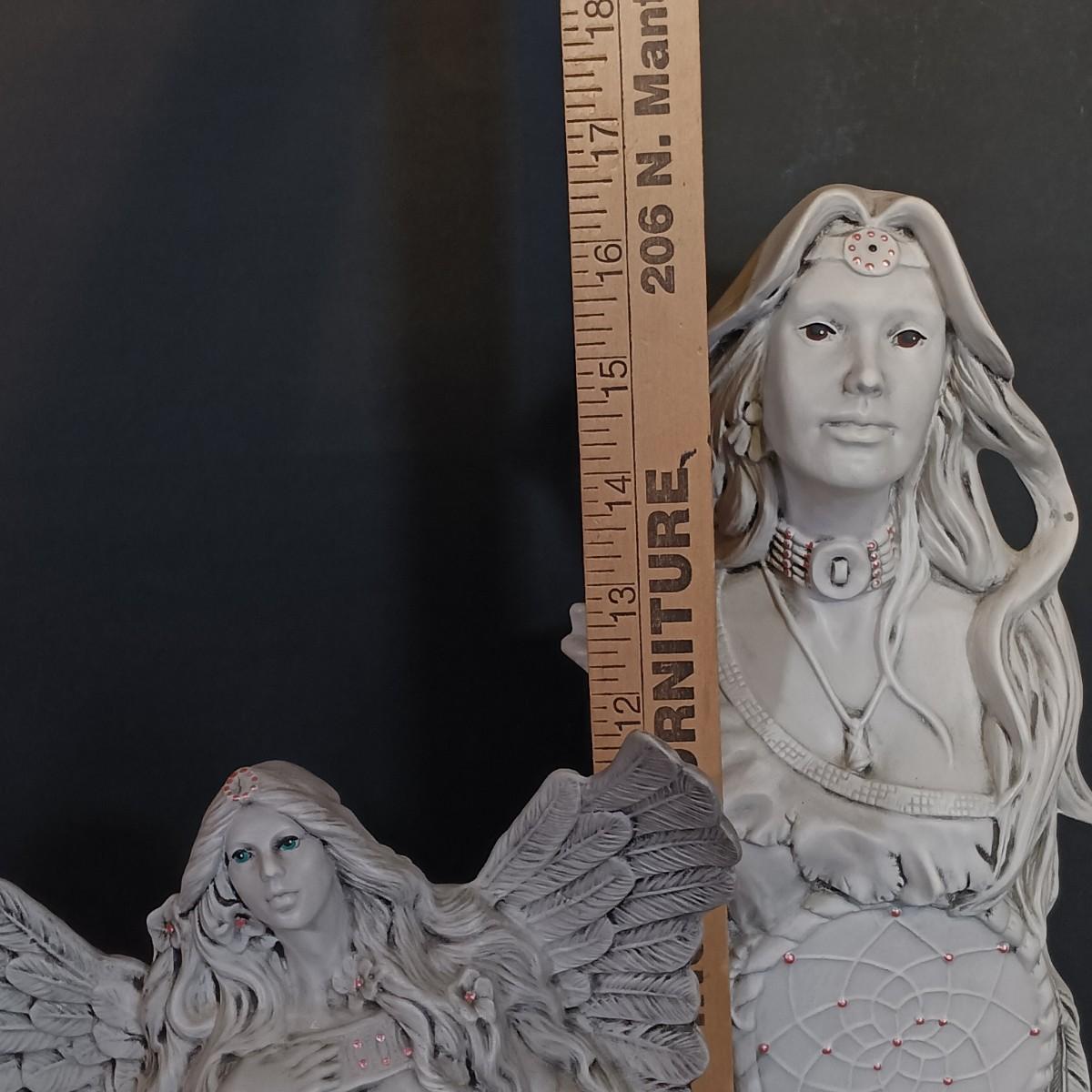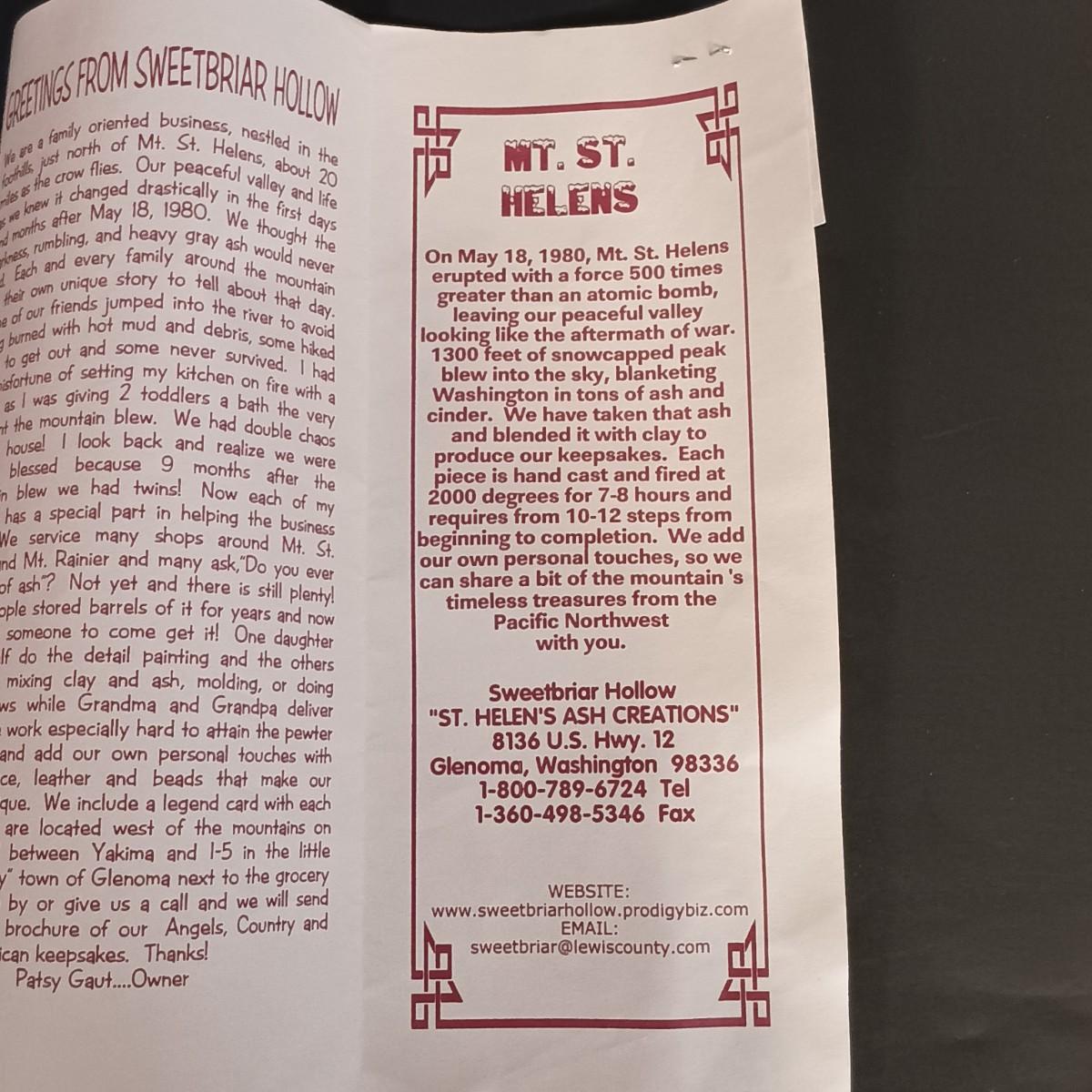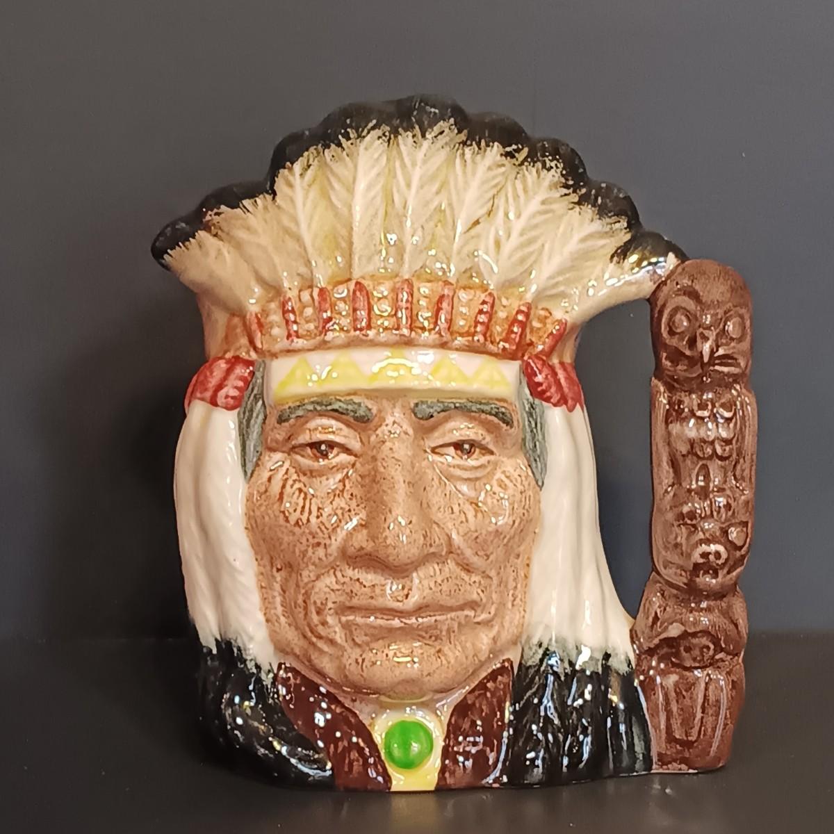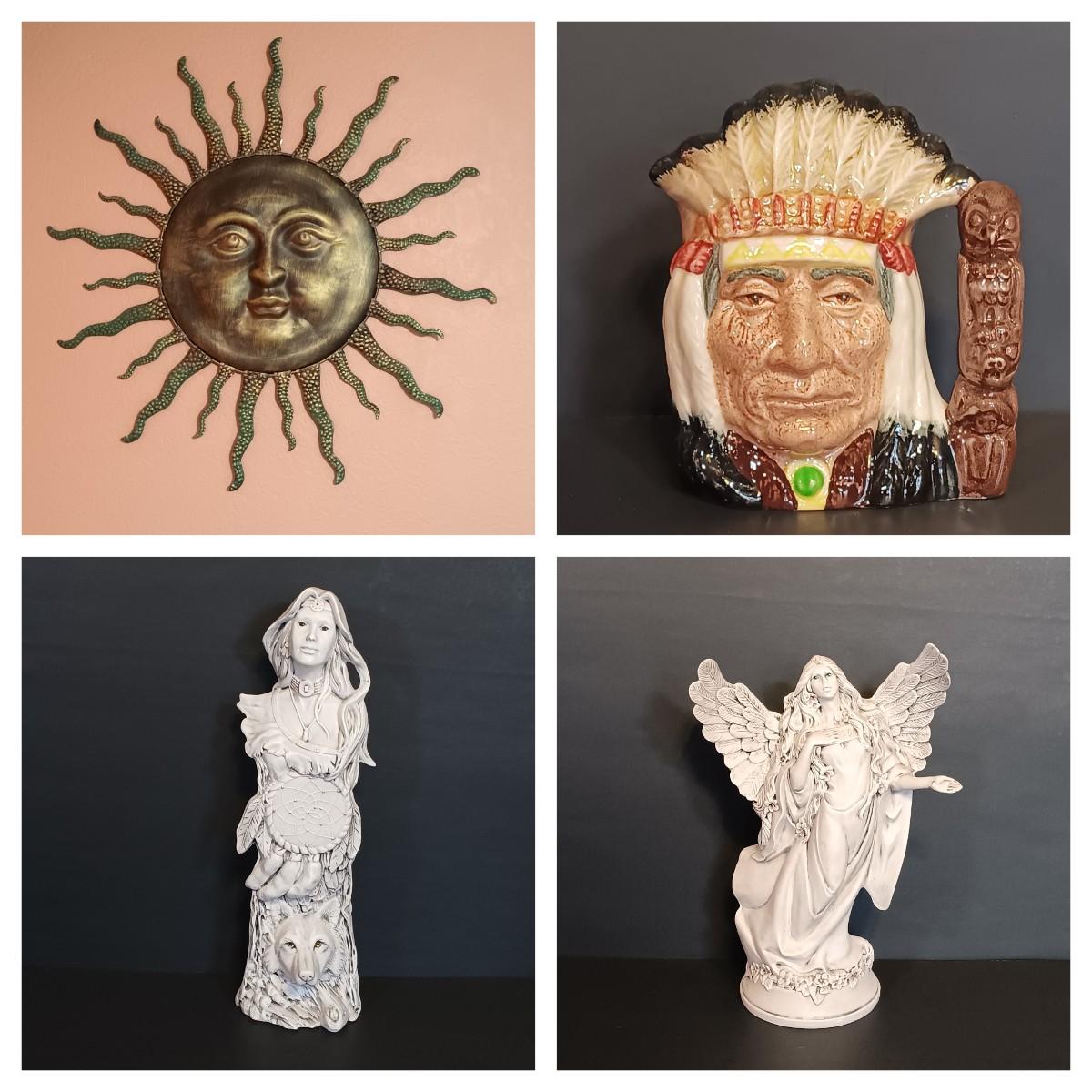 LOT 205: Sweetbriar Hollows St. Helen's Ash Figurines, Royal Doulton Native American Mug & Metal Sun Plaque
