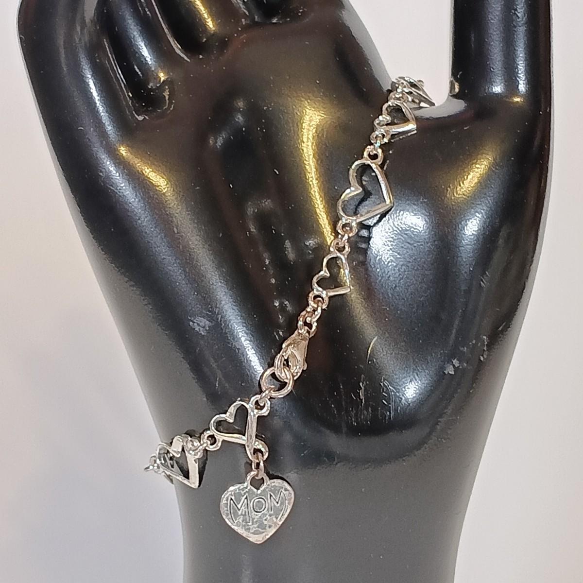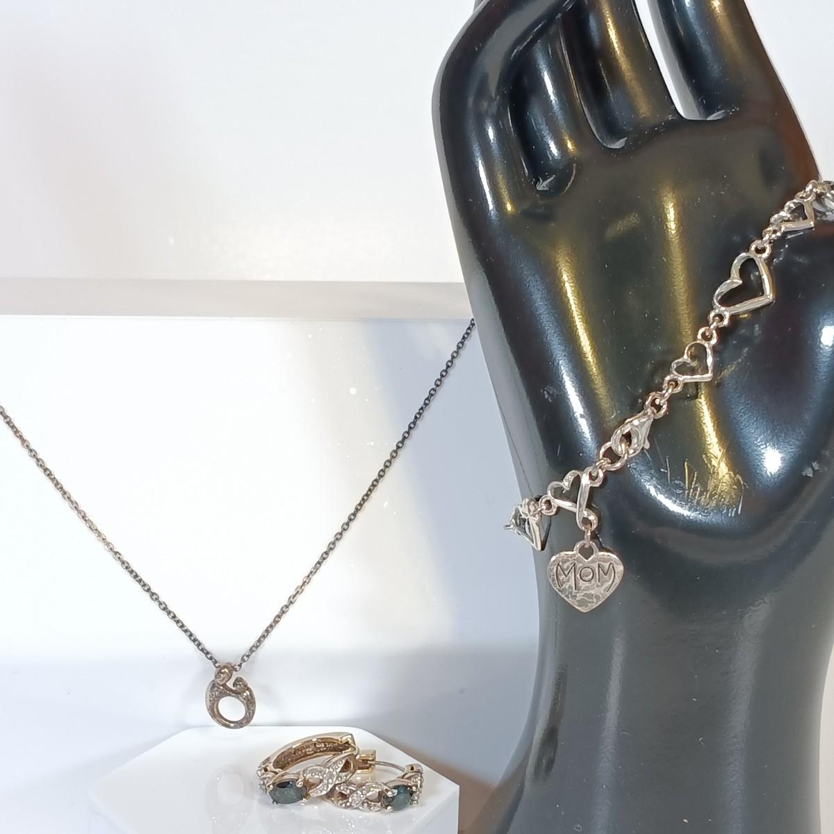 LOT 212: Sterling 925 Heart Bracelet with Mom Charm, Necklace and Earrings