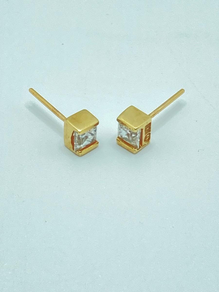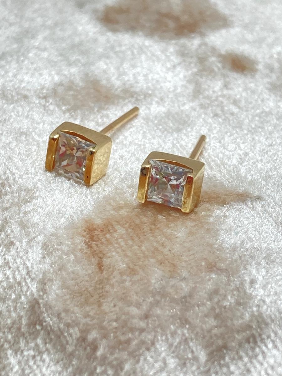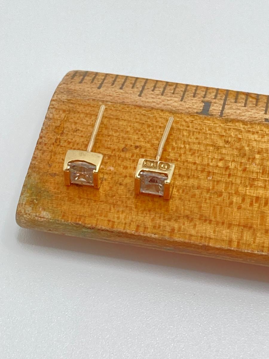 LOT 218: Gold Stud Earrings with Square Cut CZ's - 10KT, TW 1.08g