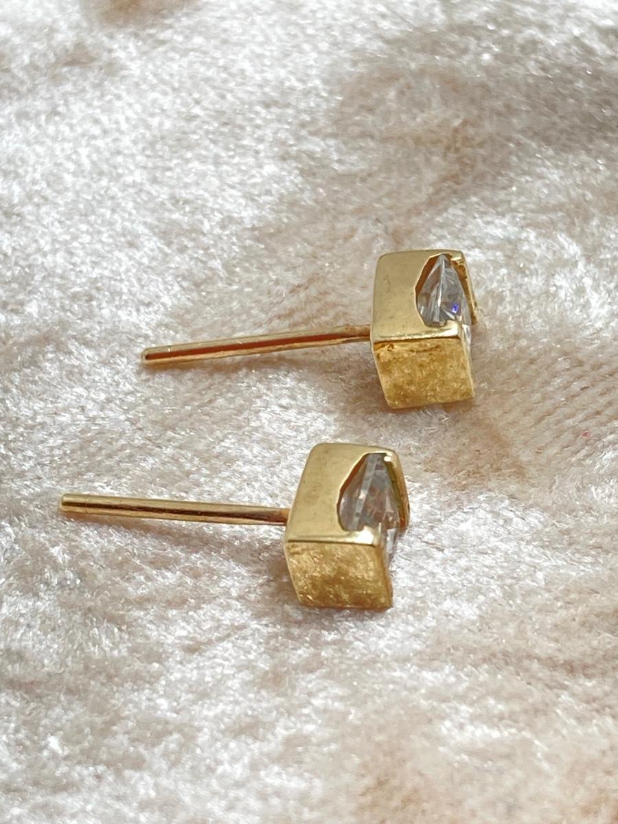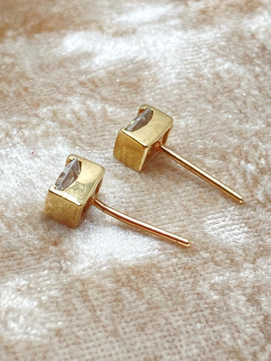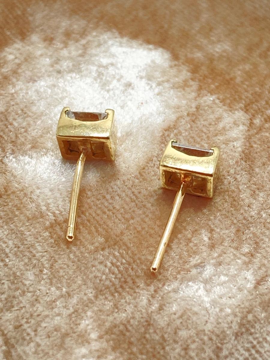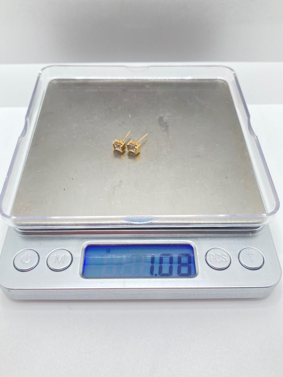 LOT 218: Gold Stud Earrings with Square Cut CZ's - 10KT, TW 1.08g
