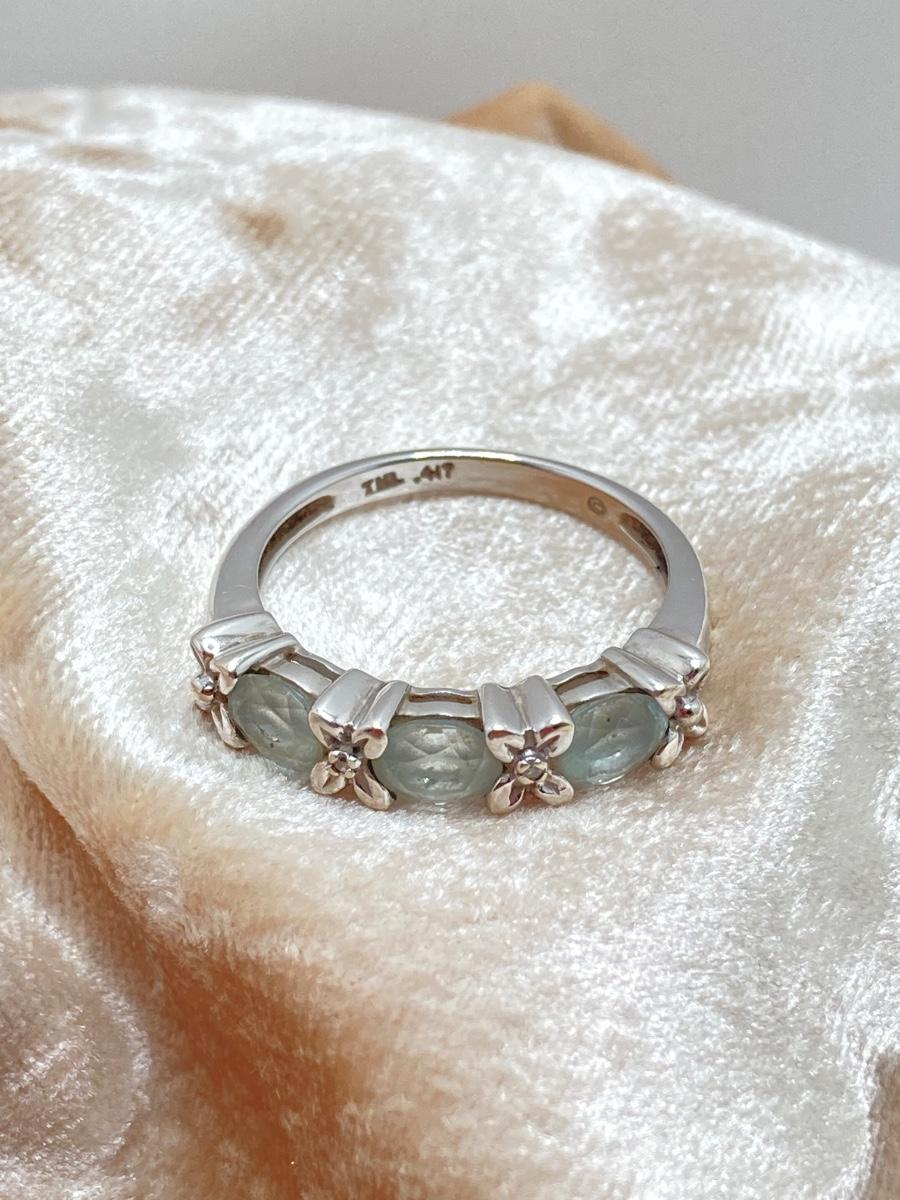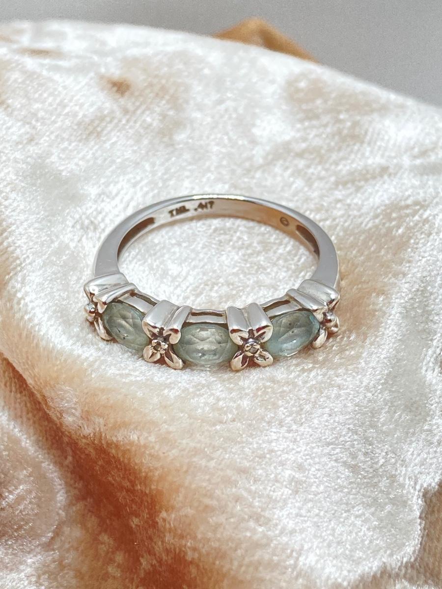 LOT 220: THL .417 White Gold Band Aquamarine Stones - 10KT, TW 2.77g, Sz 7
