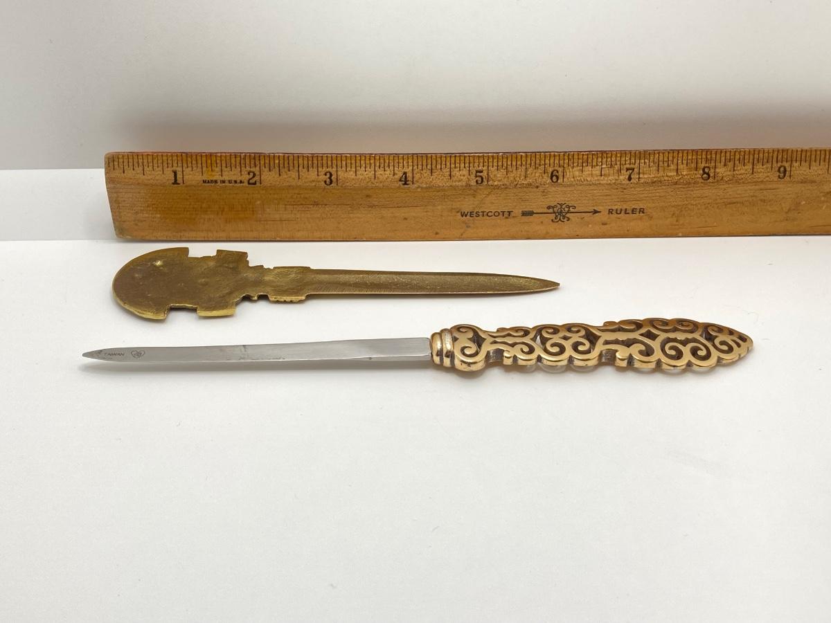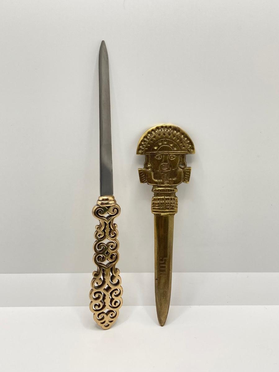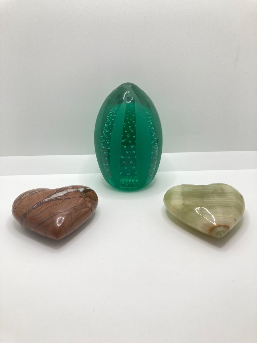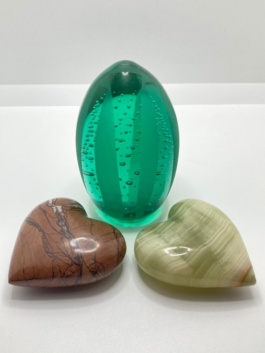 LOT 230: Classic Desk / Writing Collection - Signed A Depalma Paperweight, Onyx Heart Paperweights, Cross Pens / Refills and Letter Openers