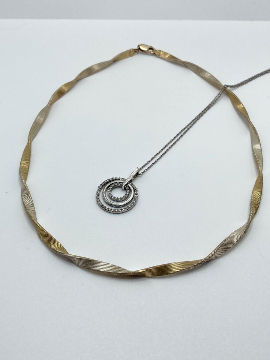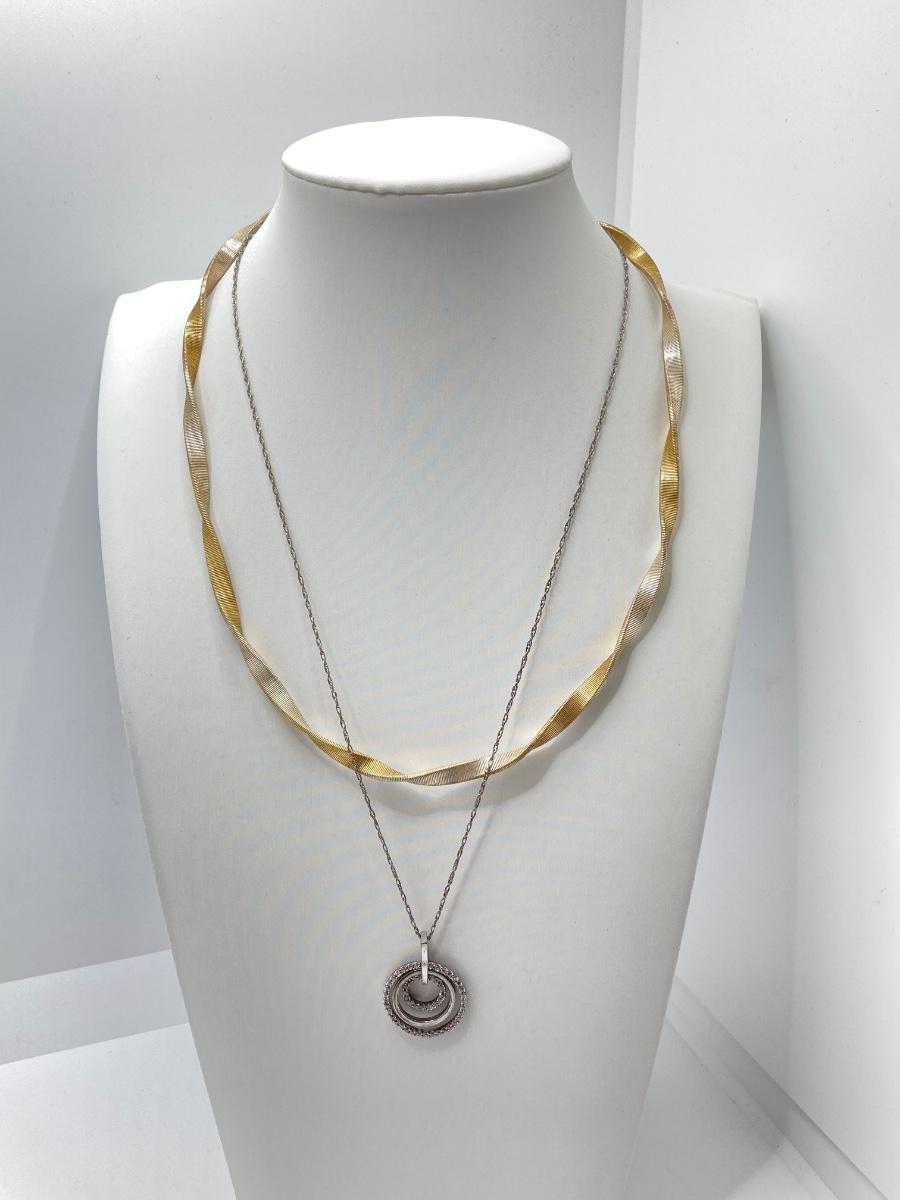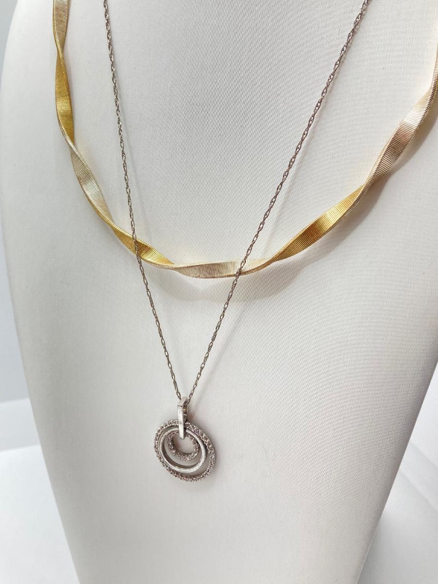 LOT 236: Sterling Jewelry - Twisted Two Tone Chain and 3 Circle Pendant Necklace