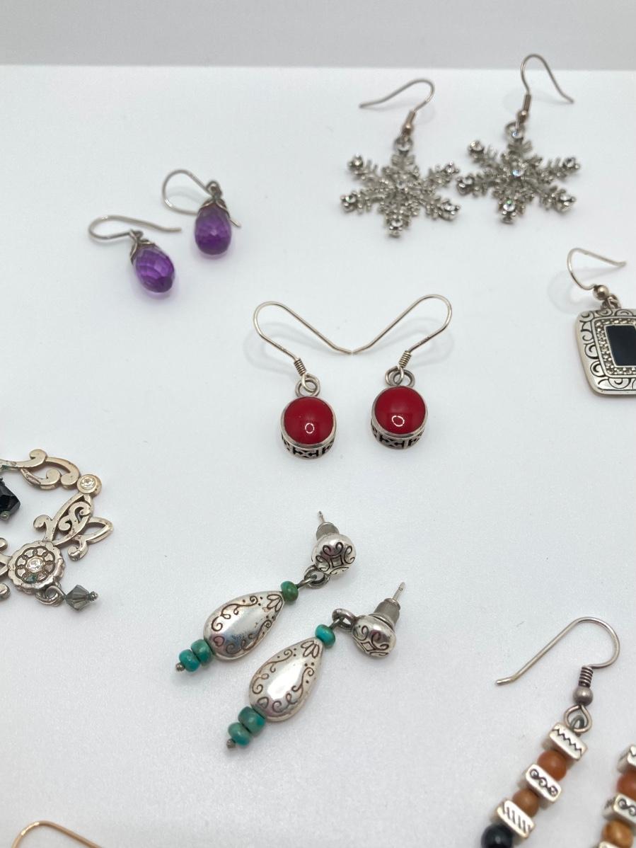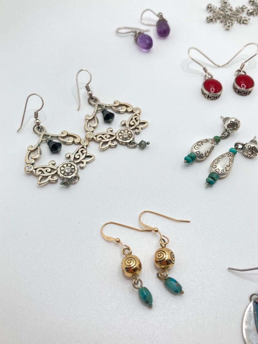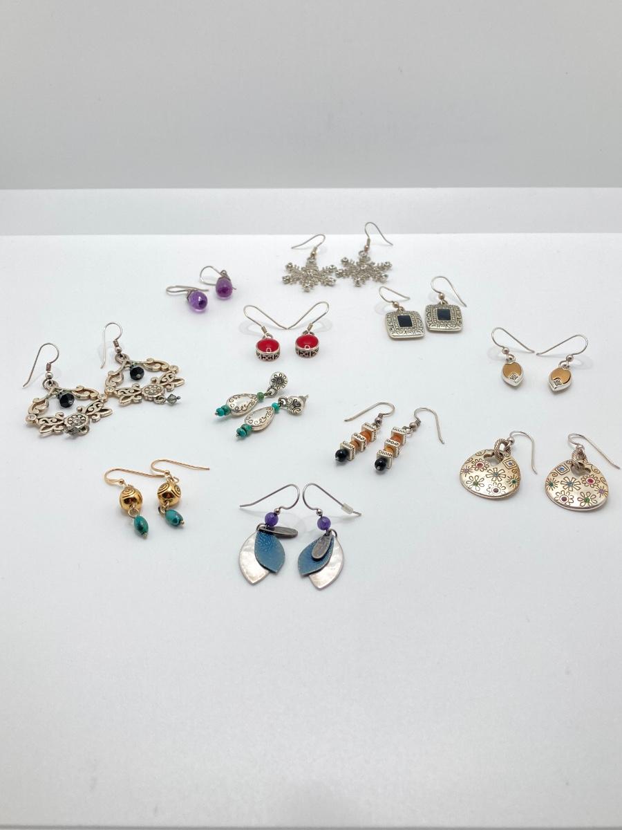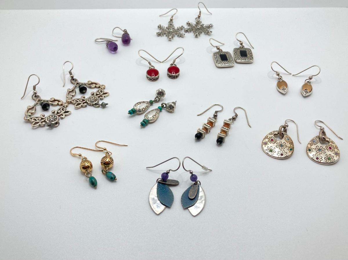 LOT 237: Collection of Pieced Dangle Style Earrings