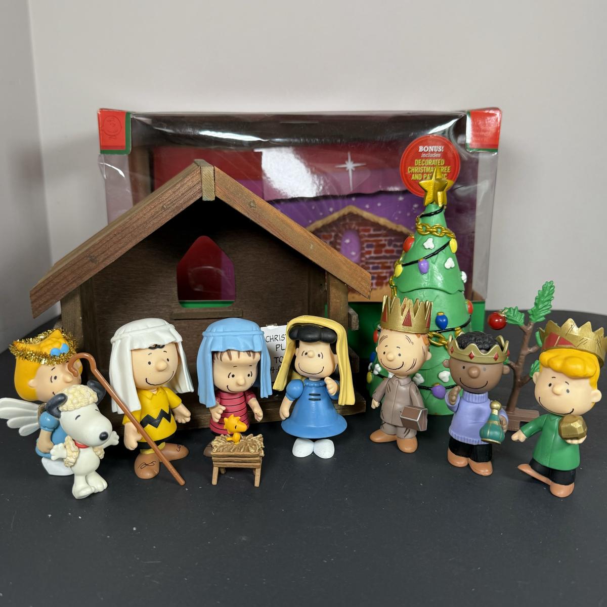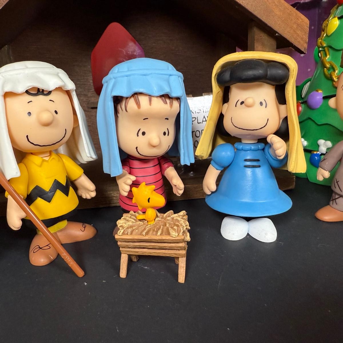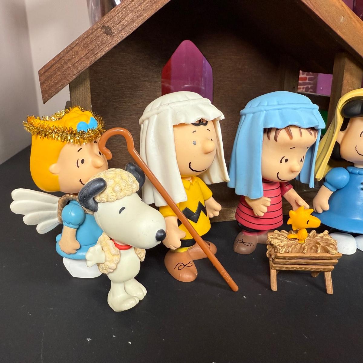 LOT 13G: Peanuts Nativity Mini Figure Set w/ Box & Wood Creche