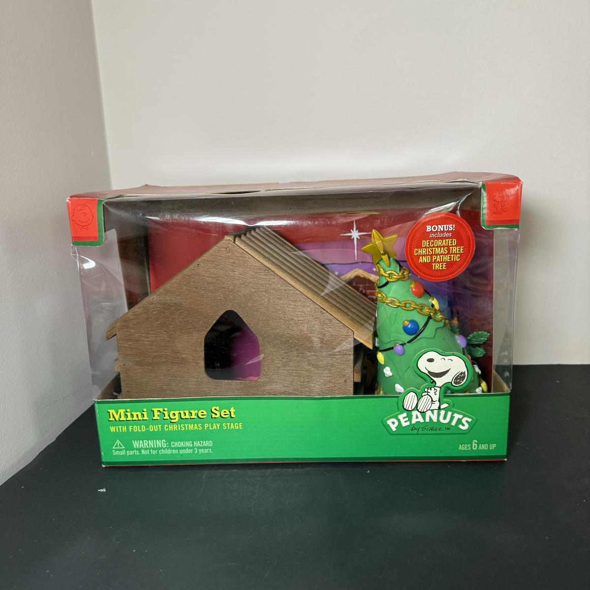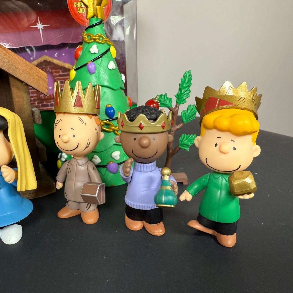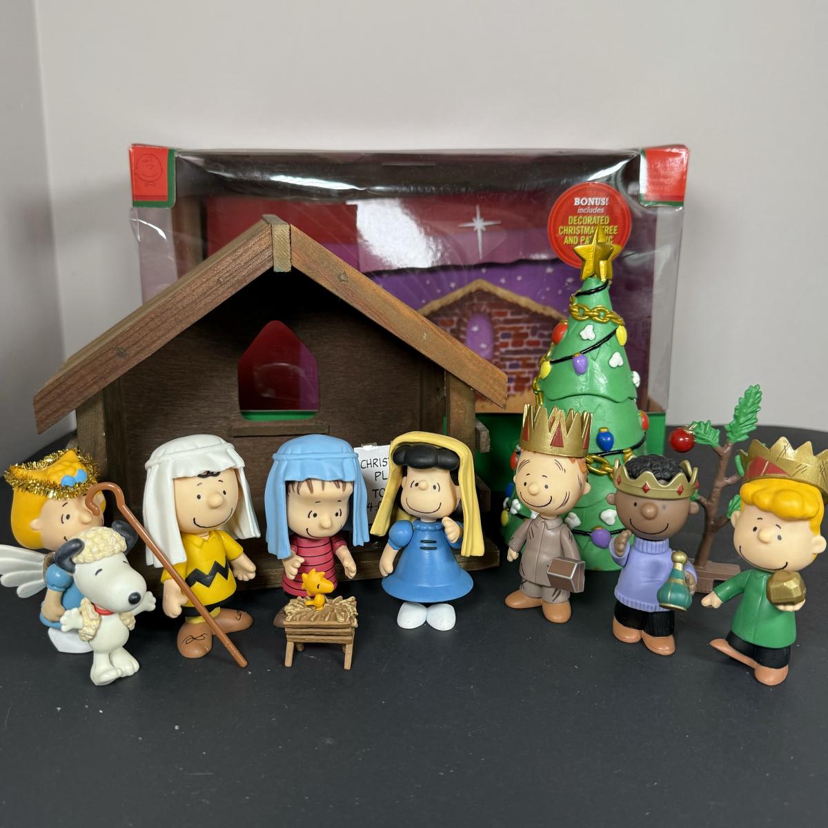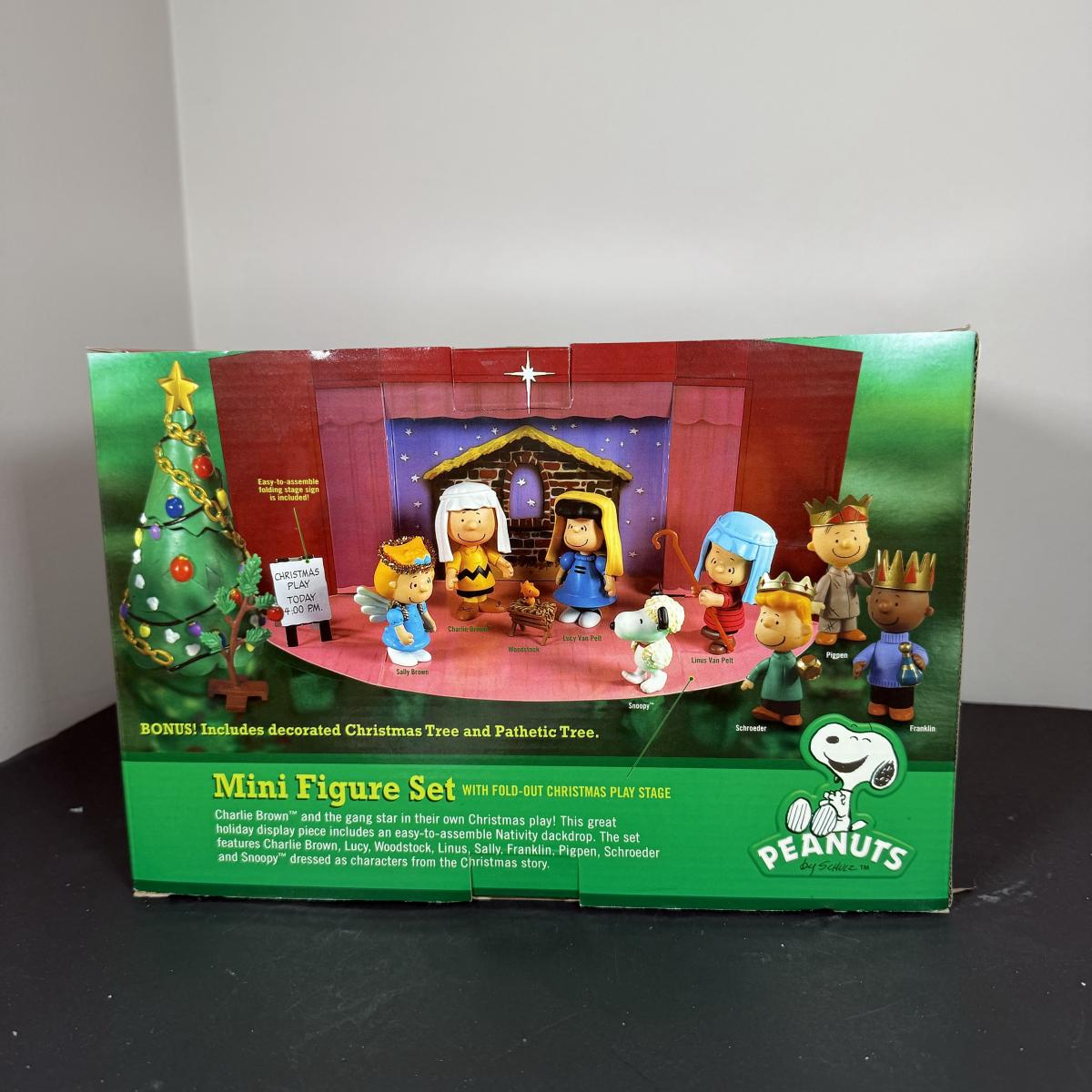 LOT 13G: Peanuts Nativity Mini Figure Set w/ Box & Wood Creche