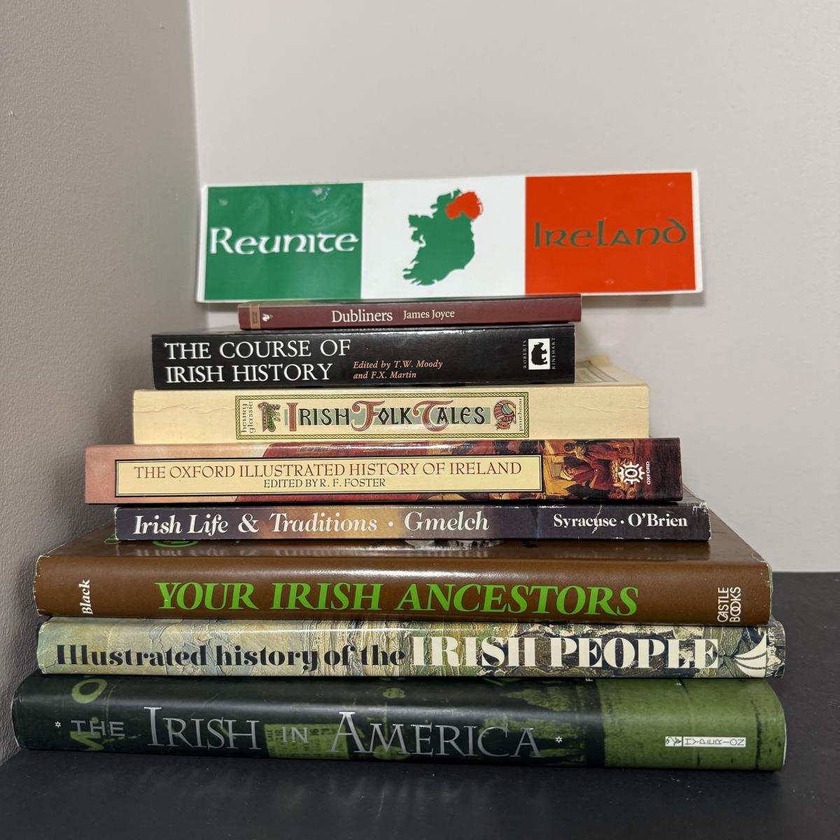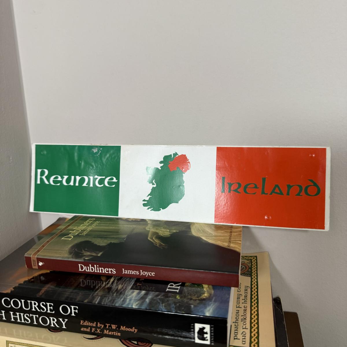 LOT 21G: Collection of Ireland History & Culture Books w/ Reunite Bumper Sticker