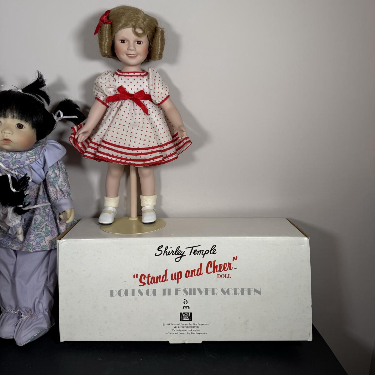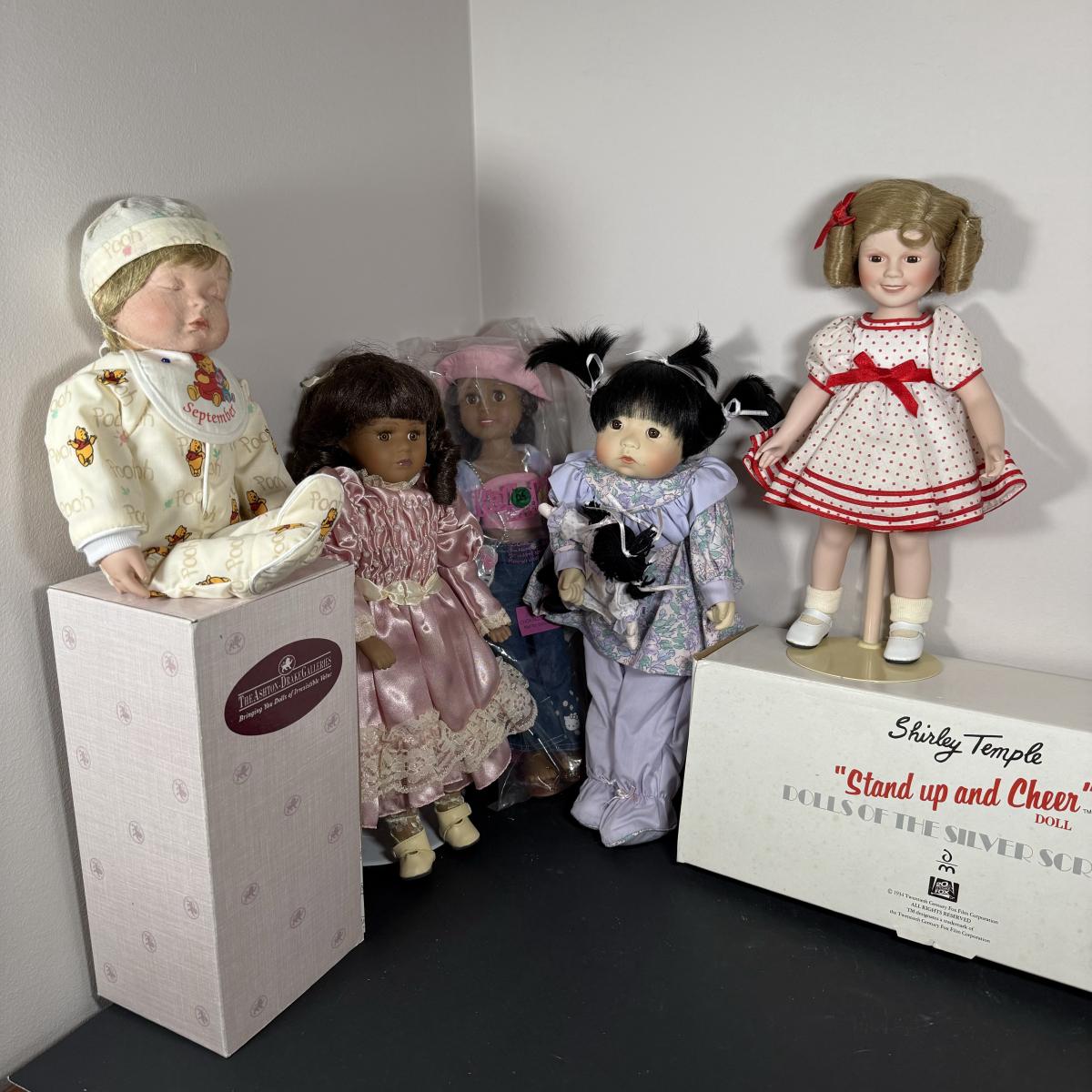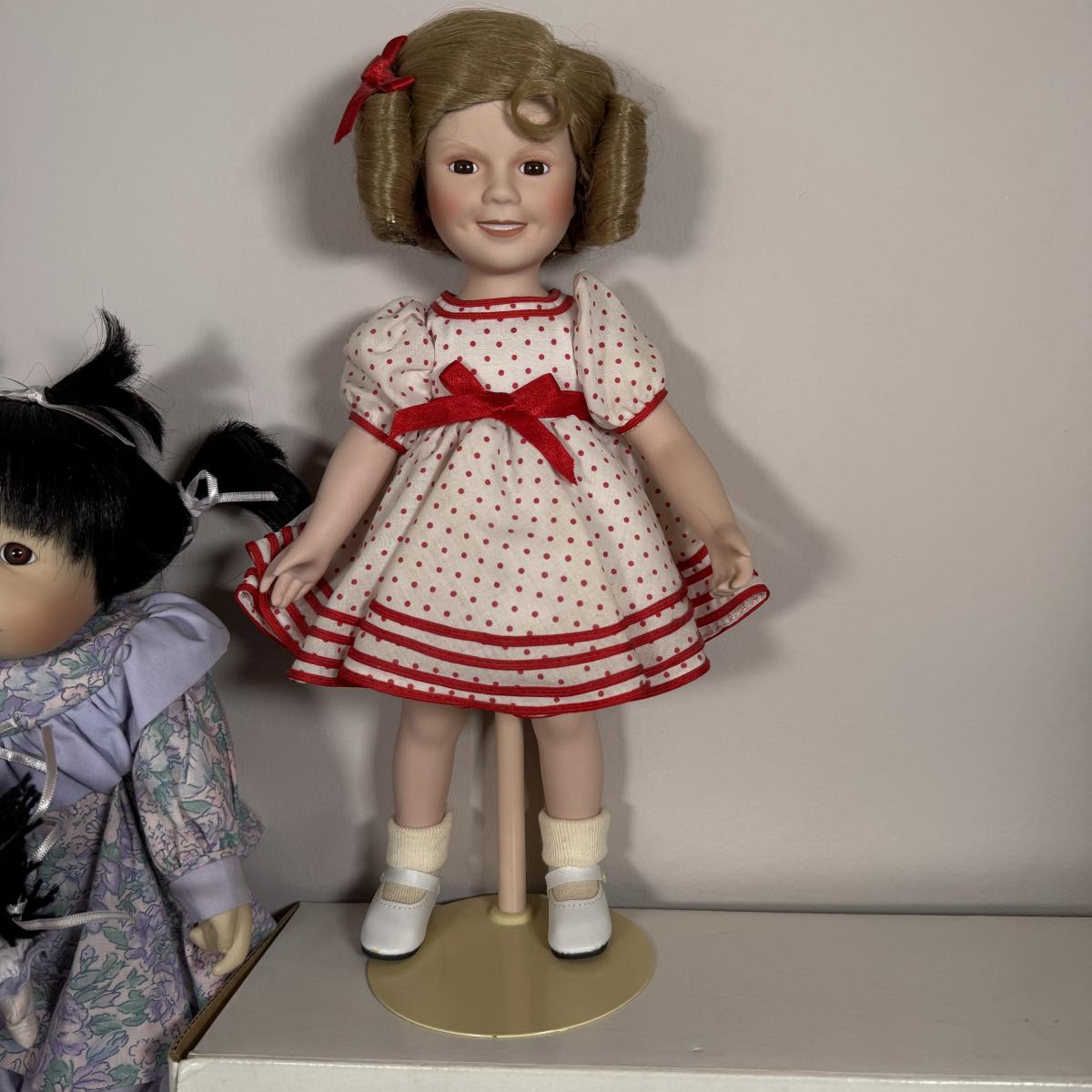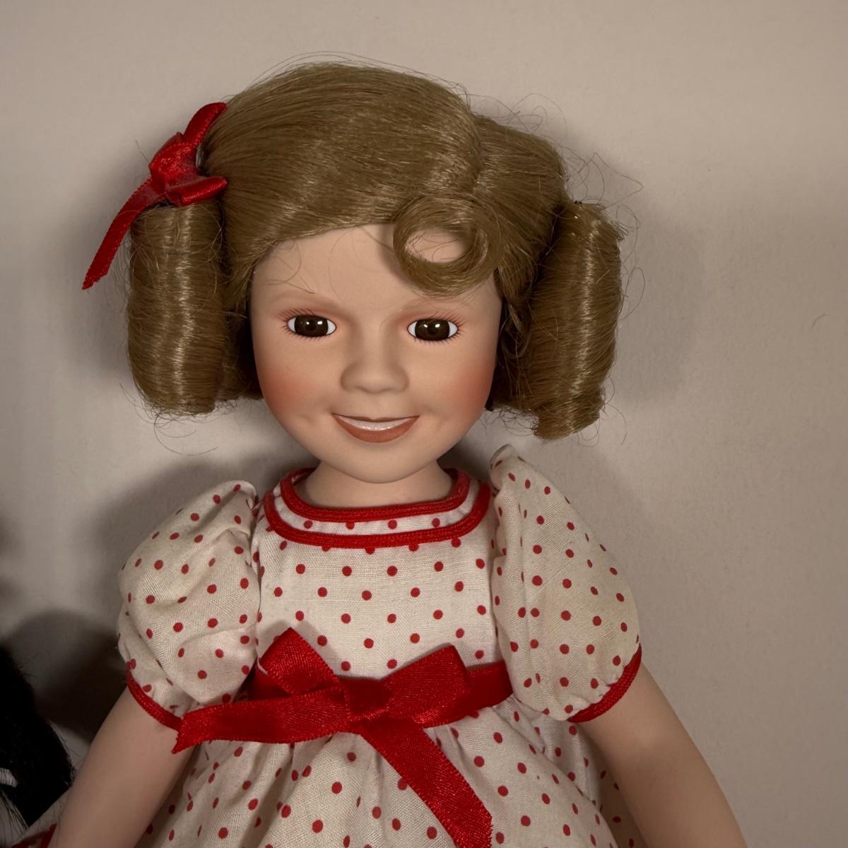 LOT 26G: 1986 Danbury Mint Stand Up & Cheer Shirley Temple Porcelain Doll w/ Box, Ashton-Drake Galleries Porcelain Baby Doll, Avon Hello Kitty Fashion Doll & More