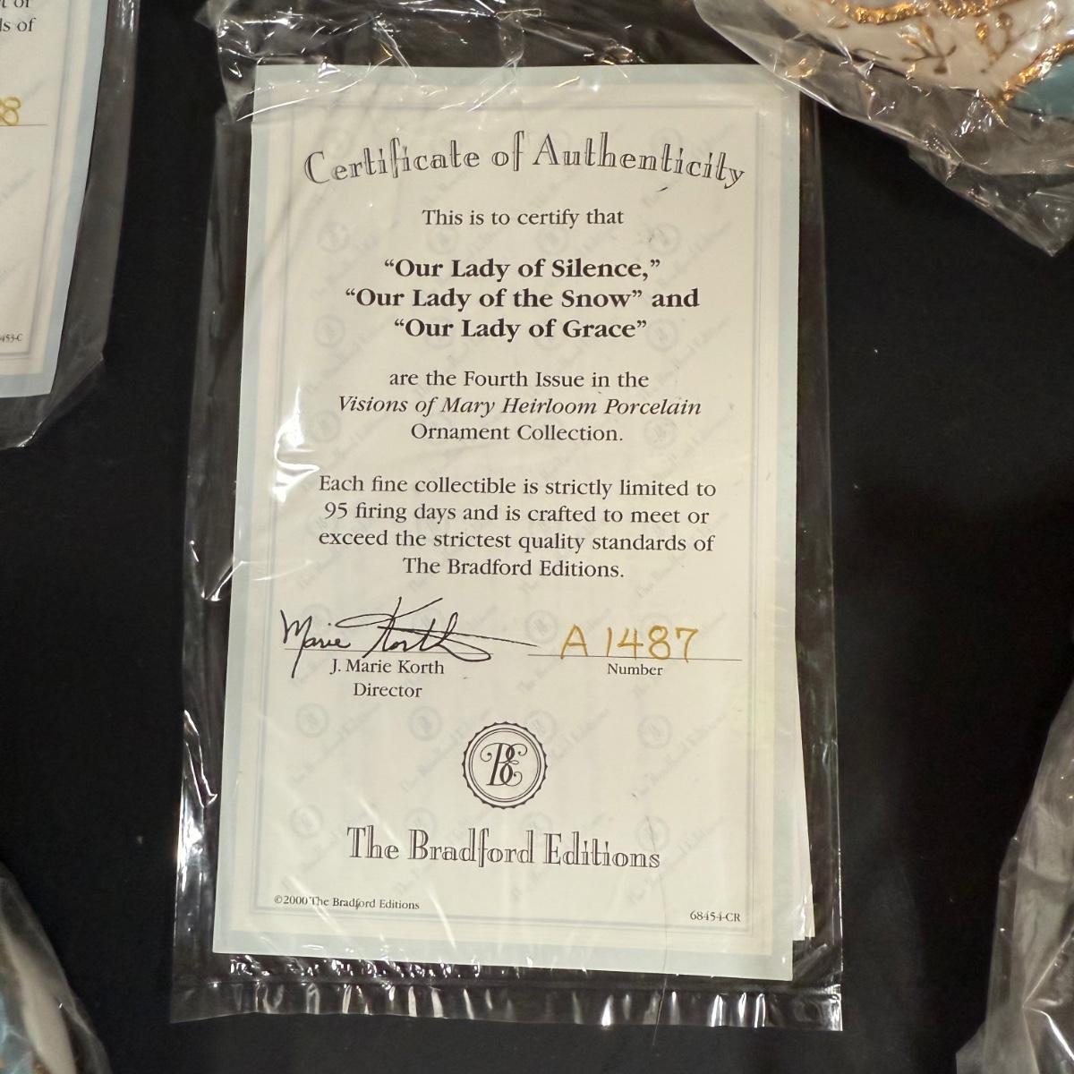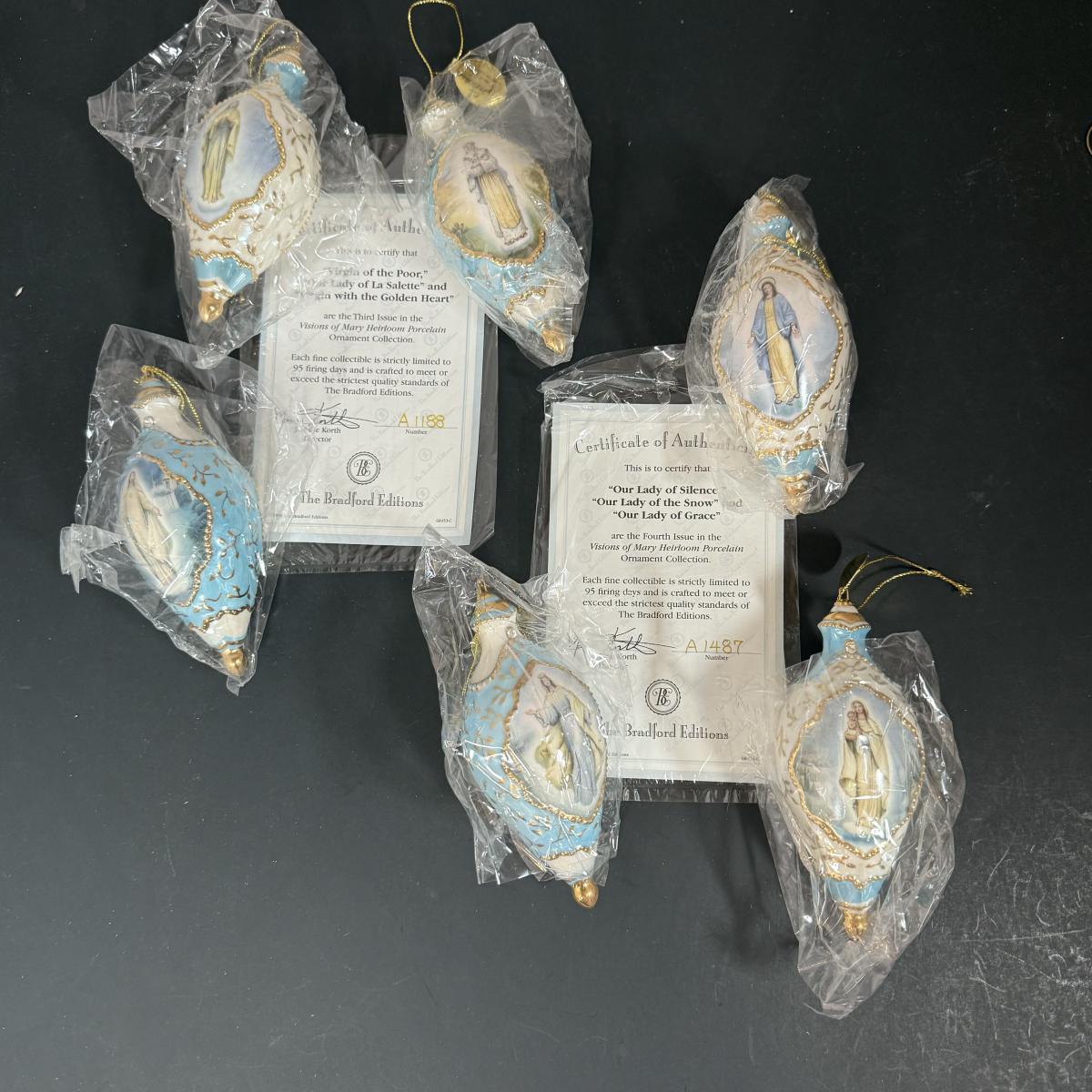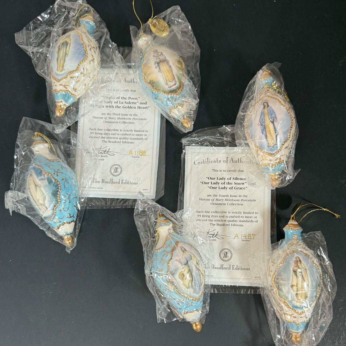 LOT 30G: Bradford Exchange Visions of Mary Heirloom Porcelain Ornament Collection w/ COAs - 3rd & 4th Issues