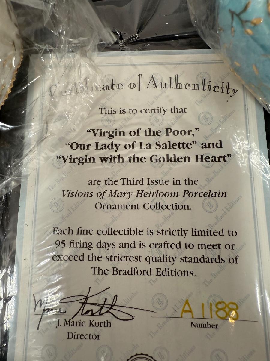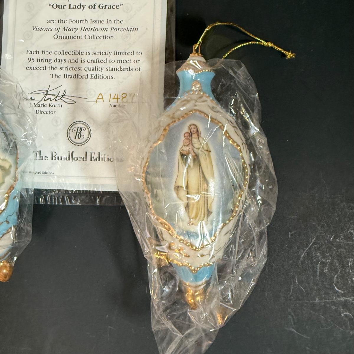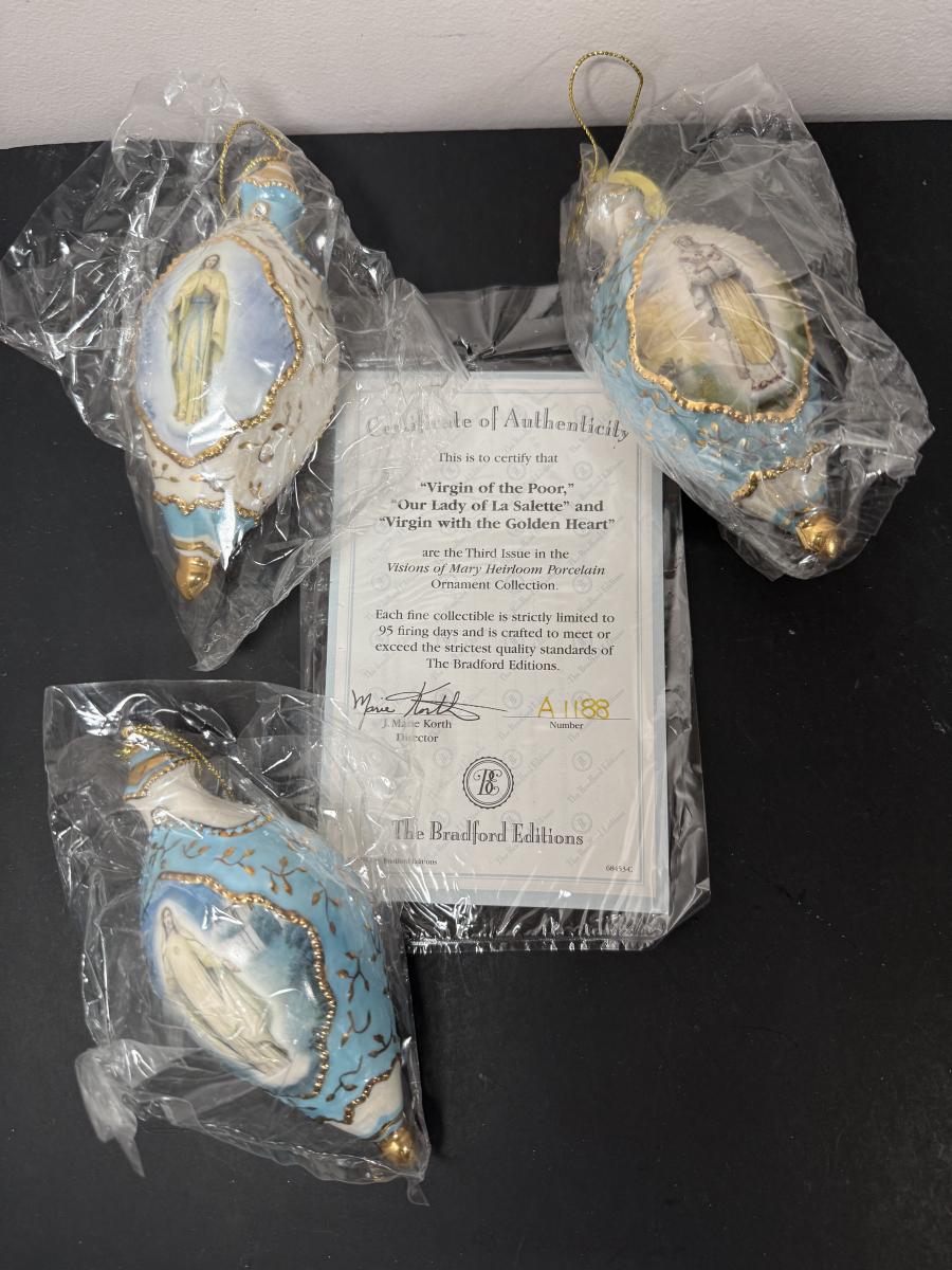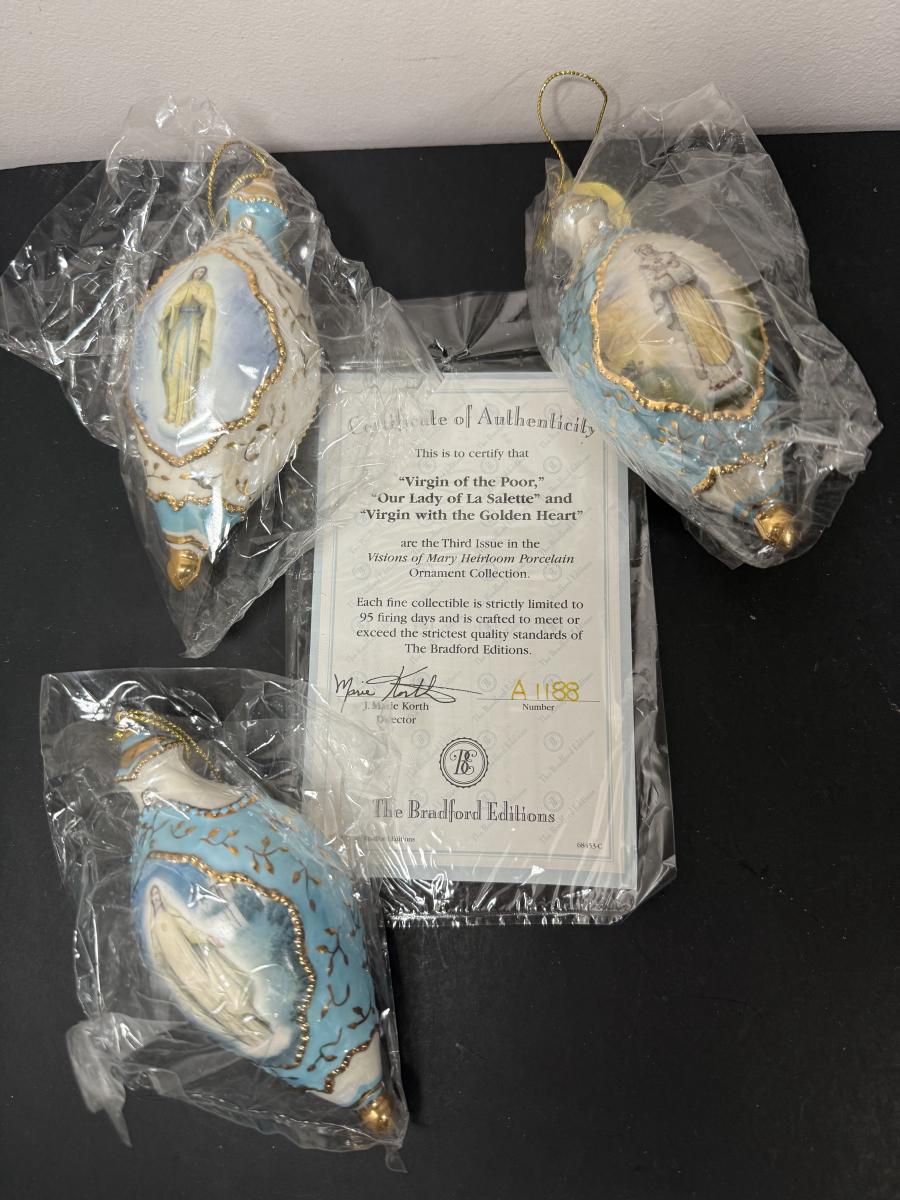 LOT 30G: Bradford Exchange Visions of Mary Heirloom Porcelain Ornament Collection w/ COAs - 3rd & 4th Issues
