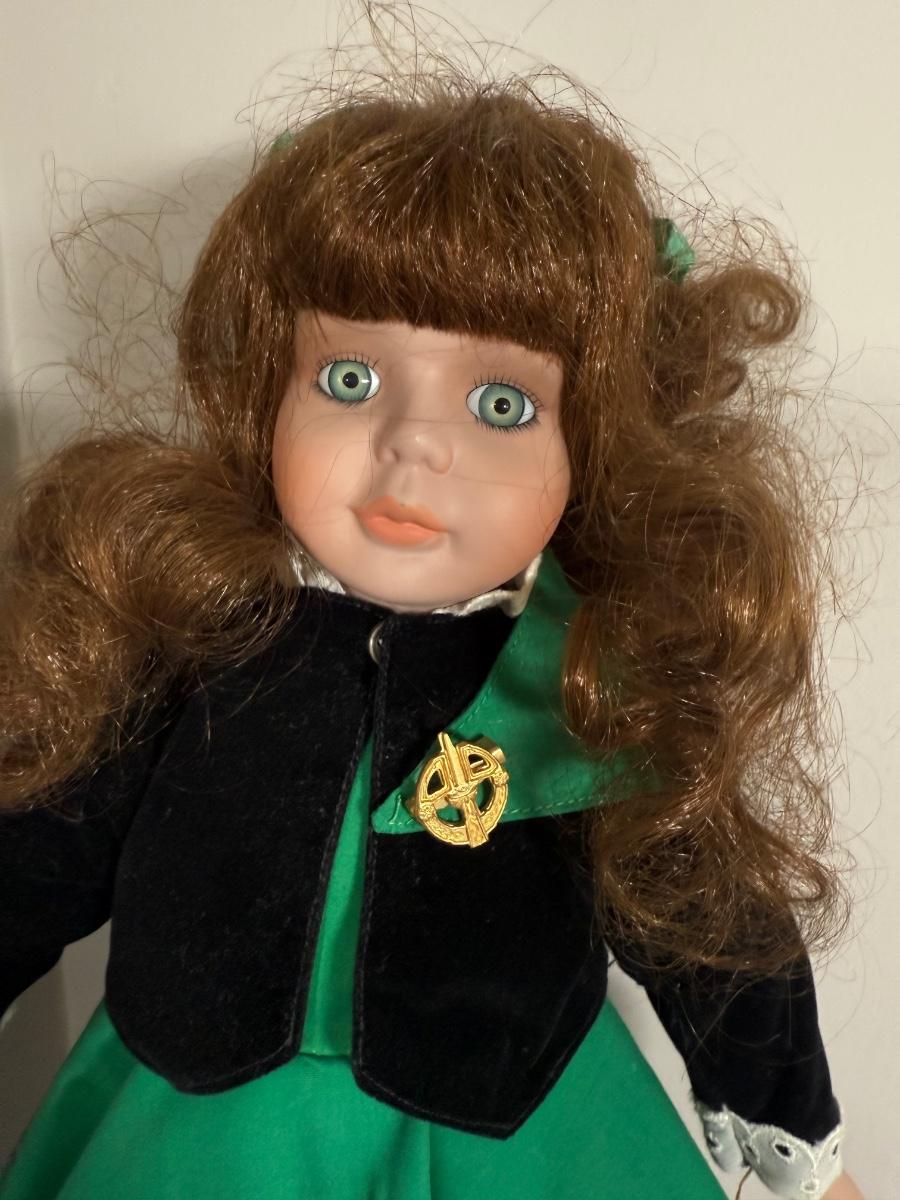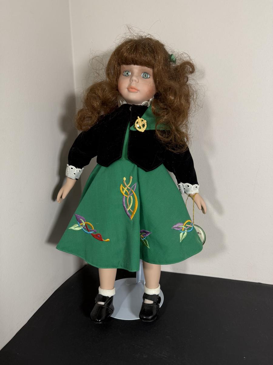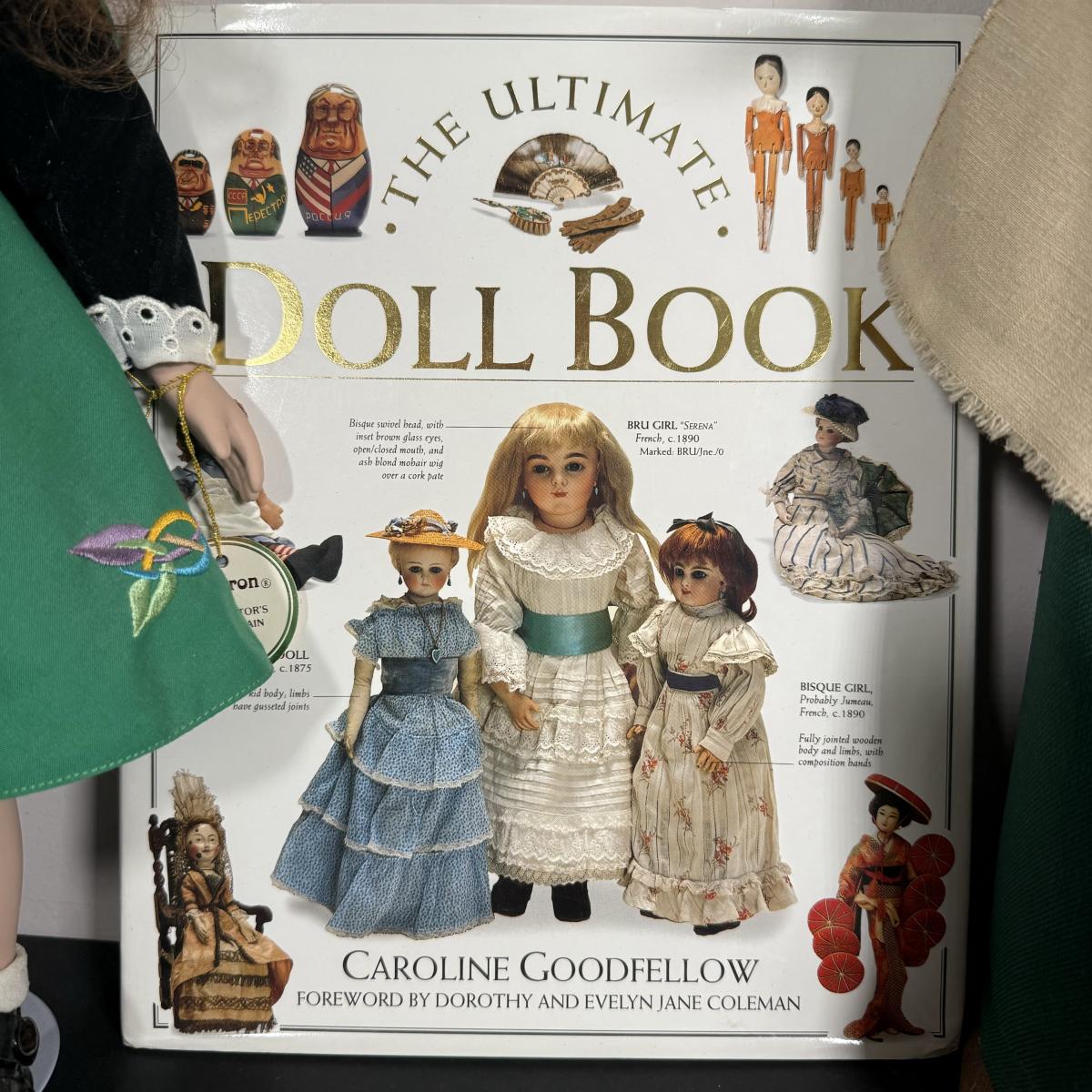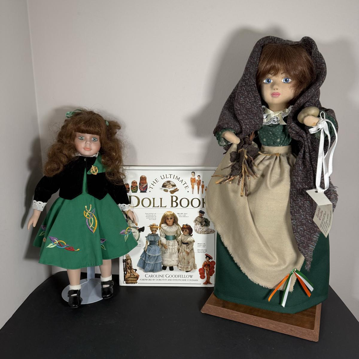 LOT 37G: Alberton London 17" Porcelain Doll, Signed Agnes Textile Crafts 22" Cloth Doll & The Ultimate Doll Book by Caroline Goodfellow