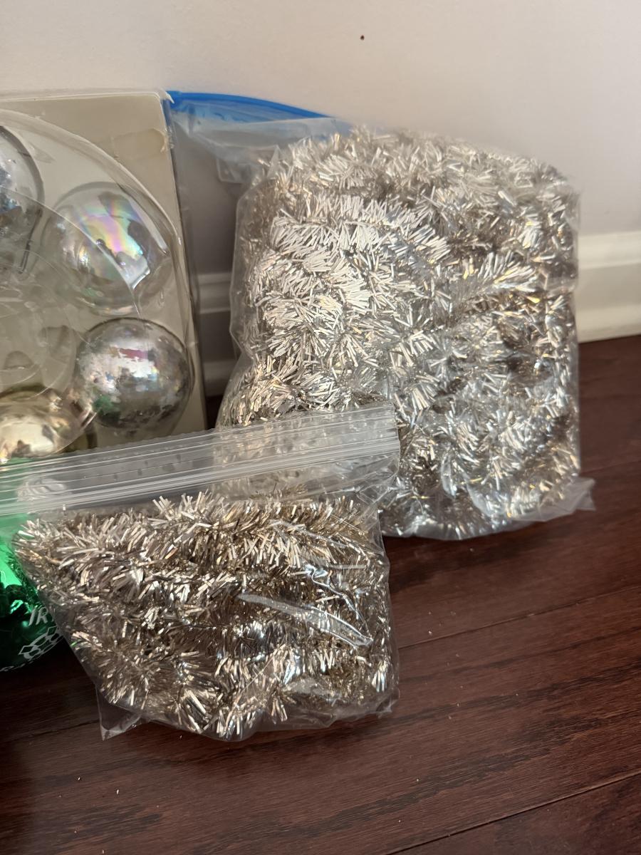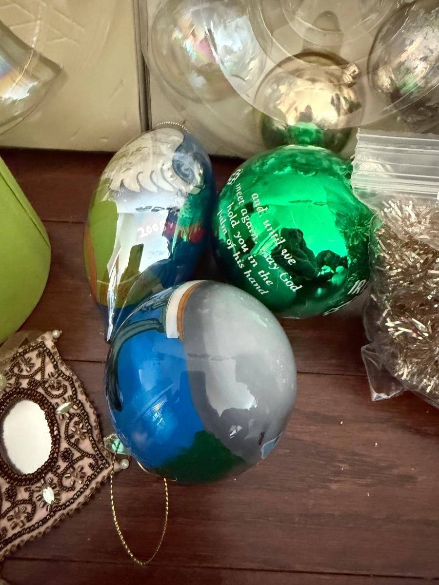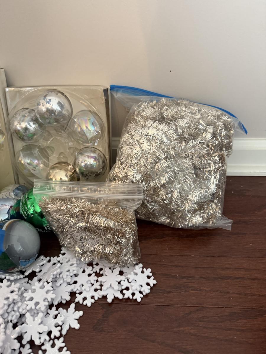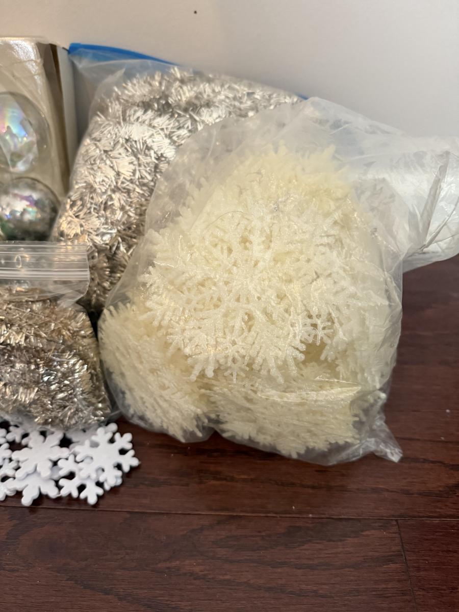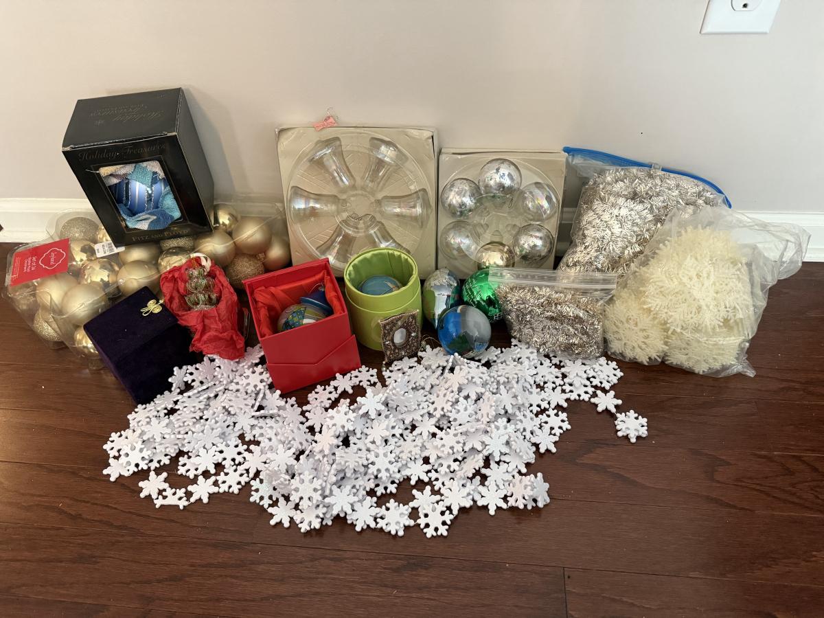 LOT 38G: Collection of Glass Christmas Ornaments & Snowflake Garland