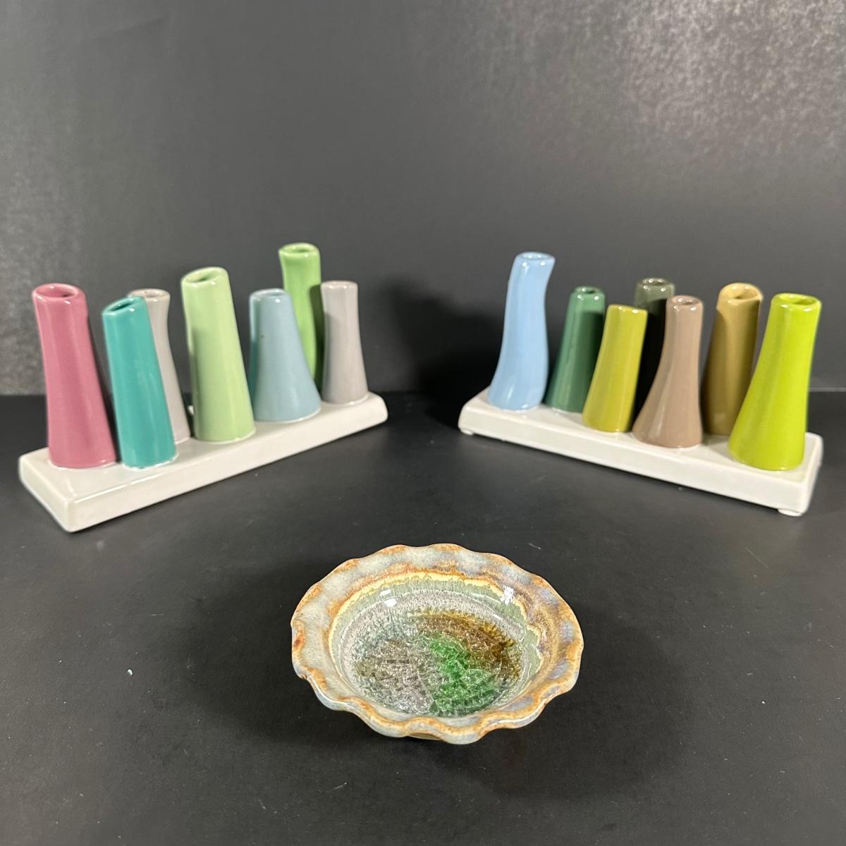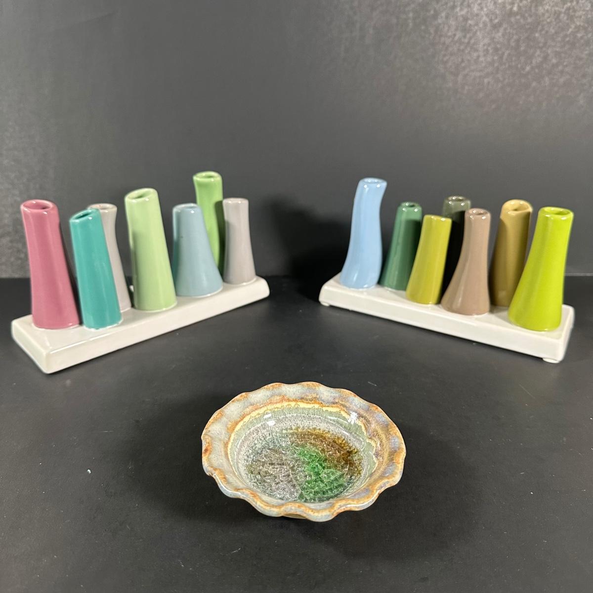 LOT 54: 2 Beautiful Bud Vases w/ Trinket Dish