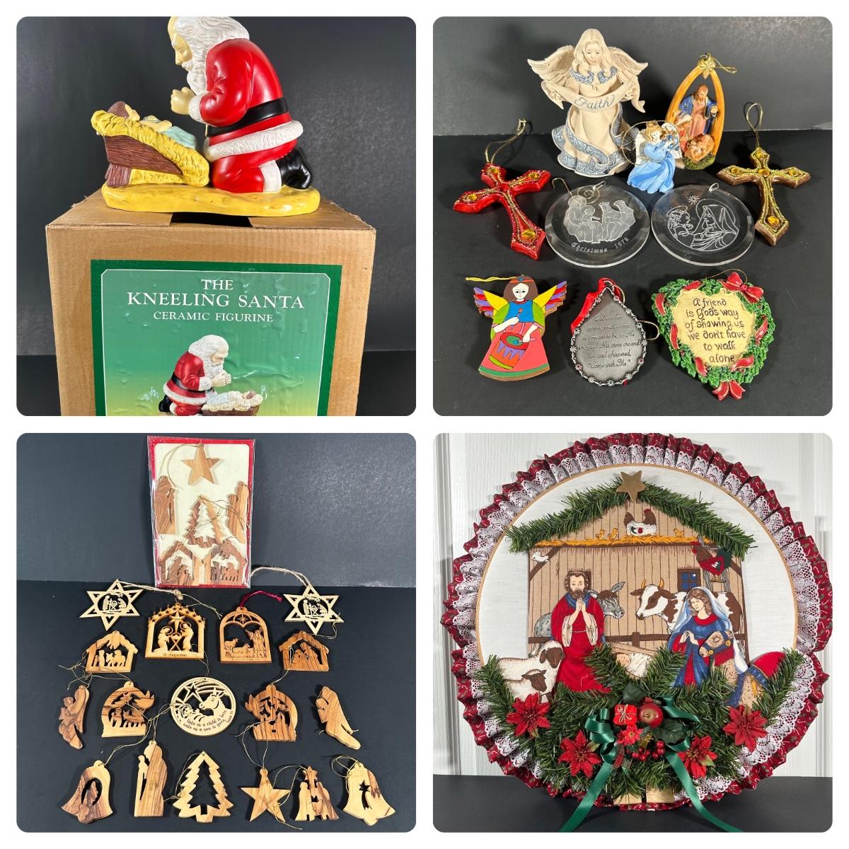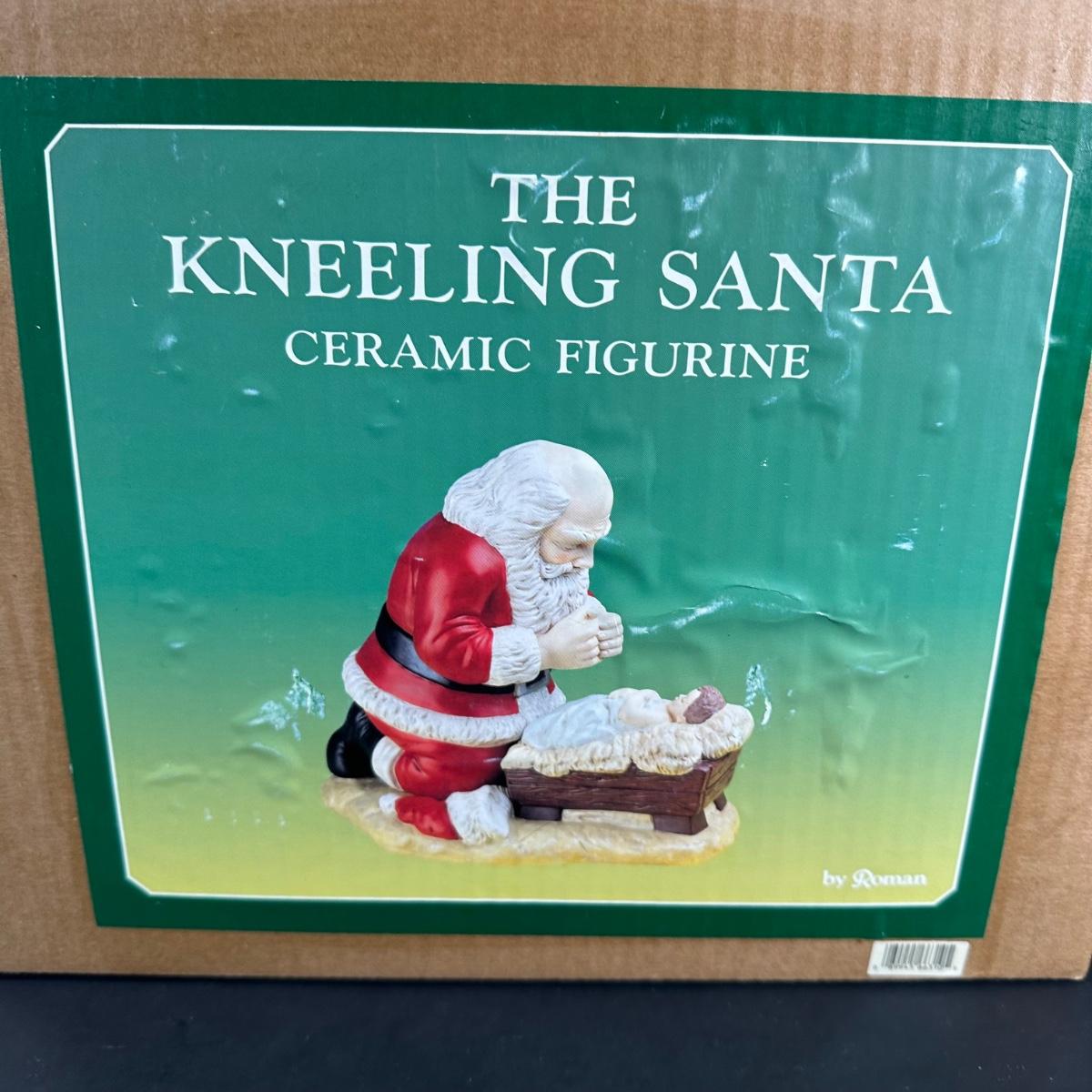 LOT 55: The Kneeling Santa Ceramic Figurine, Ornament Collection & More Decor