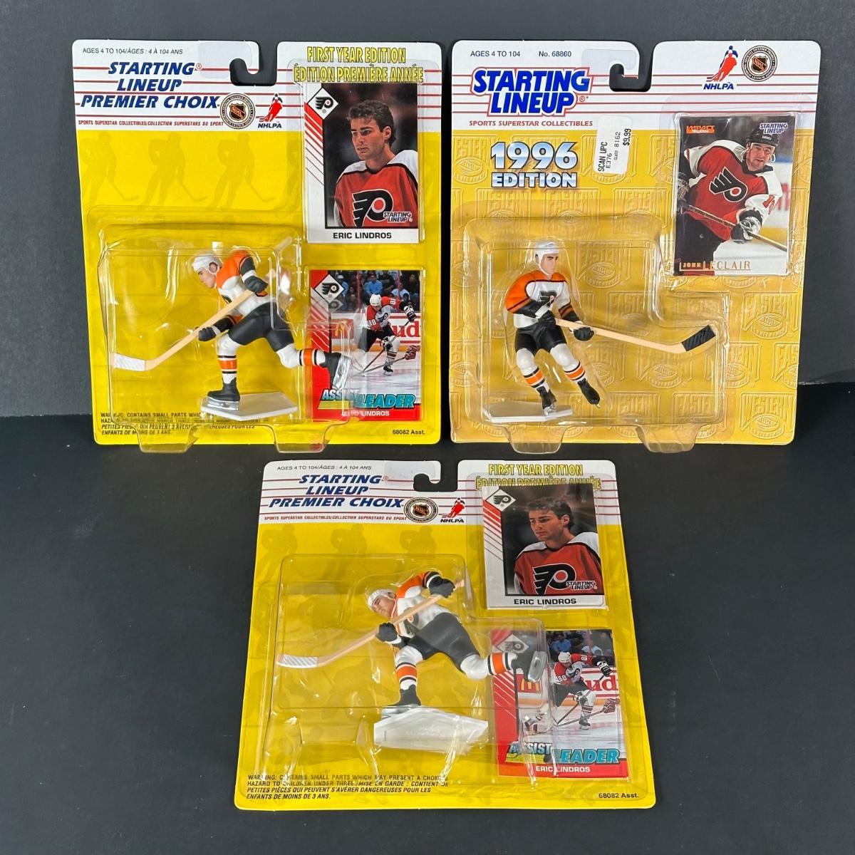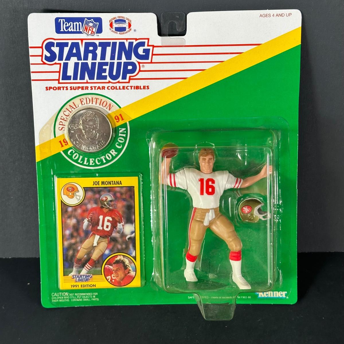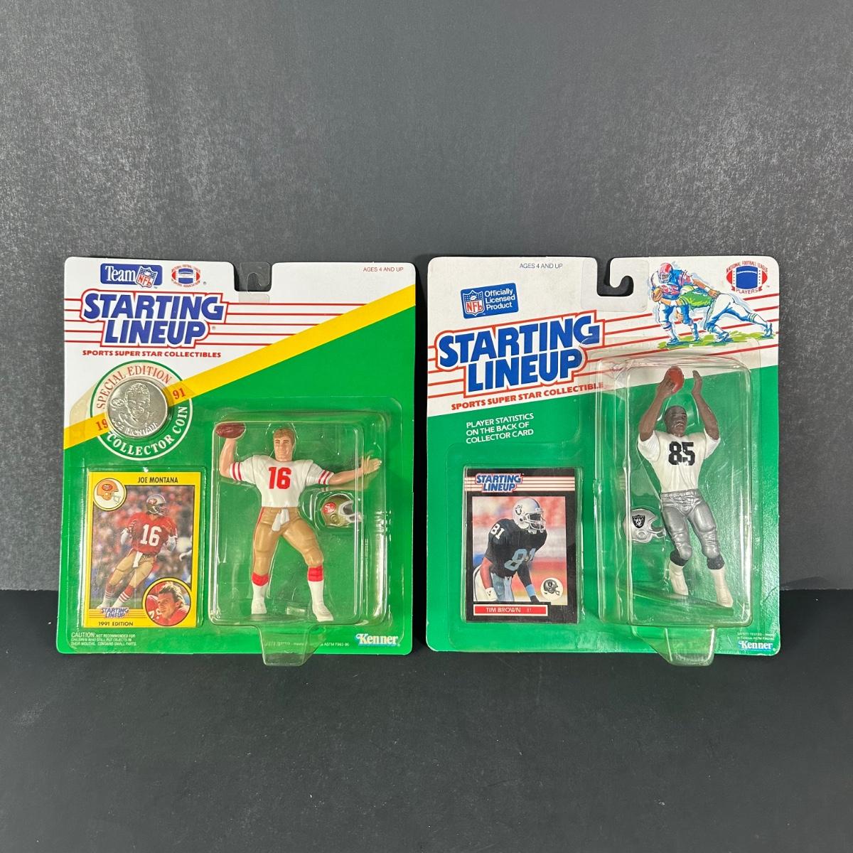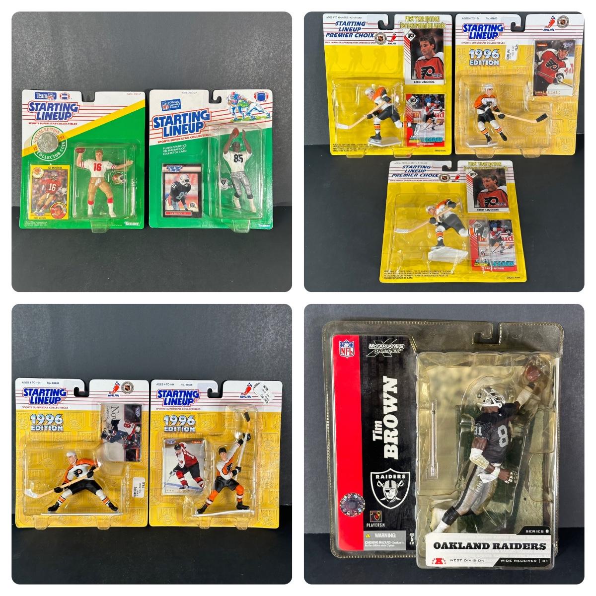 LOT 68: NIP NFL & NHL Starting Lineup Sport Superstar Collectibles - Joe Montana, Tim Brown, Eric Lindros & More