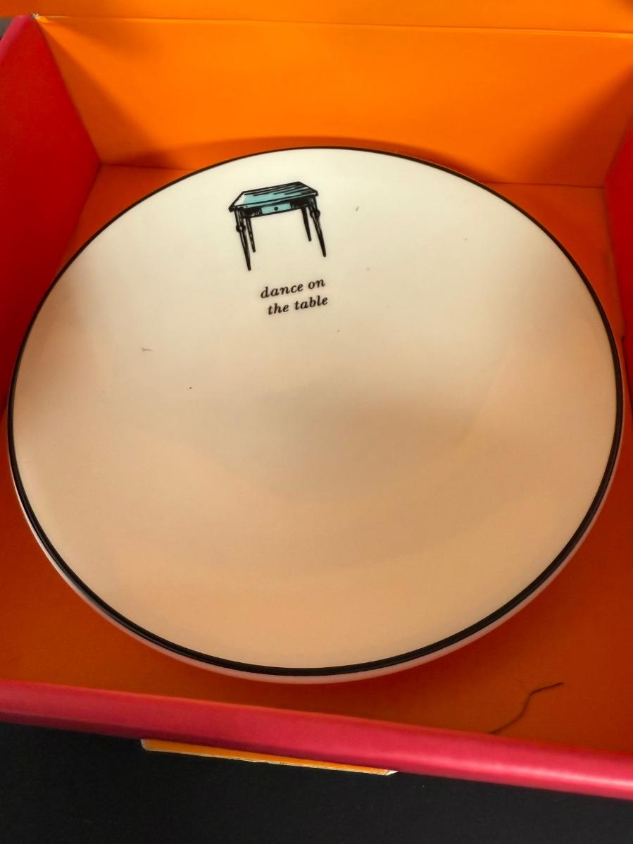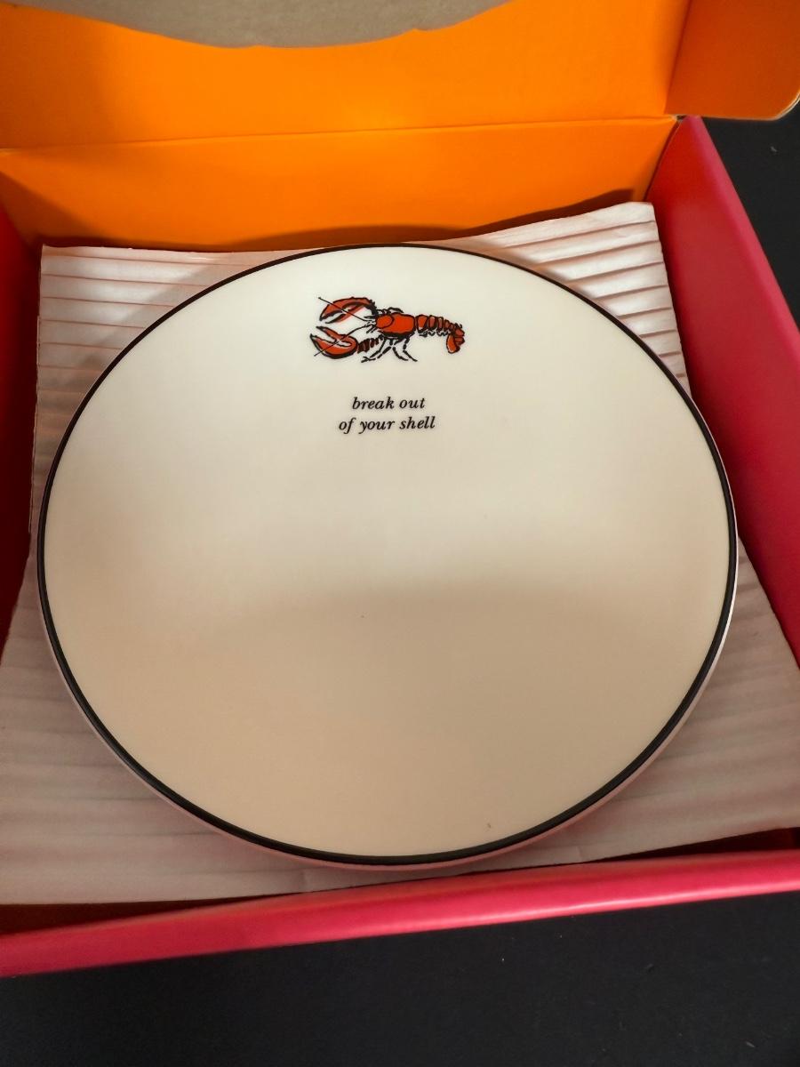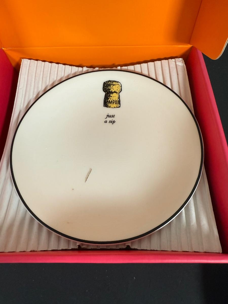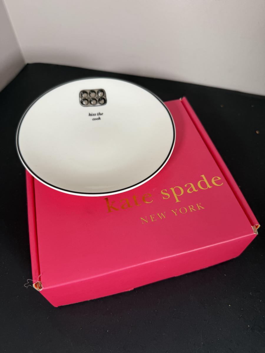LOT 81G: Lenox Collection - 2 Abstract Fruit Glass Pitchers w/ Boxes, Kate Spade Concord Square Cause A Stir Tidbit Plates w/ Box, Vintage Holly Bowl & More